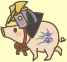 | MIX | 端午の節句にオス子豚の健やかな成長を 願う豚。被っている兜は飾っていたもの を拝借してきたらしい。5月の豚。 |