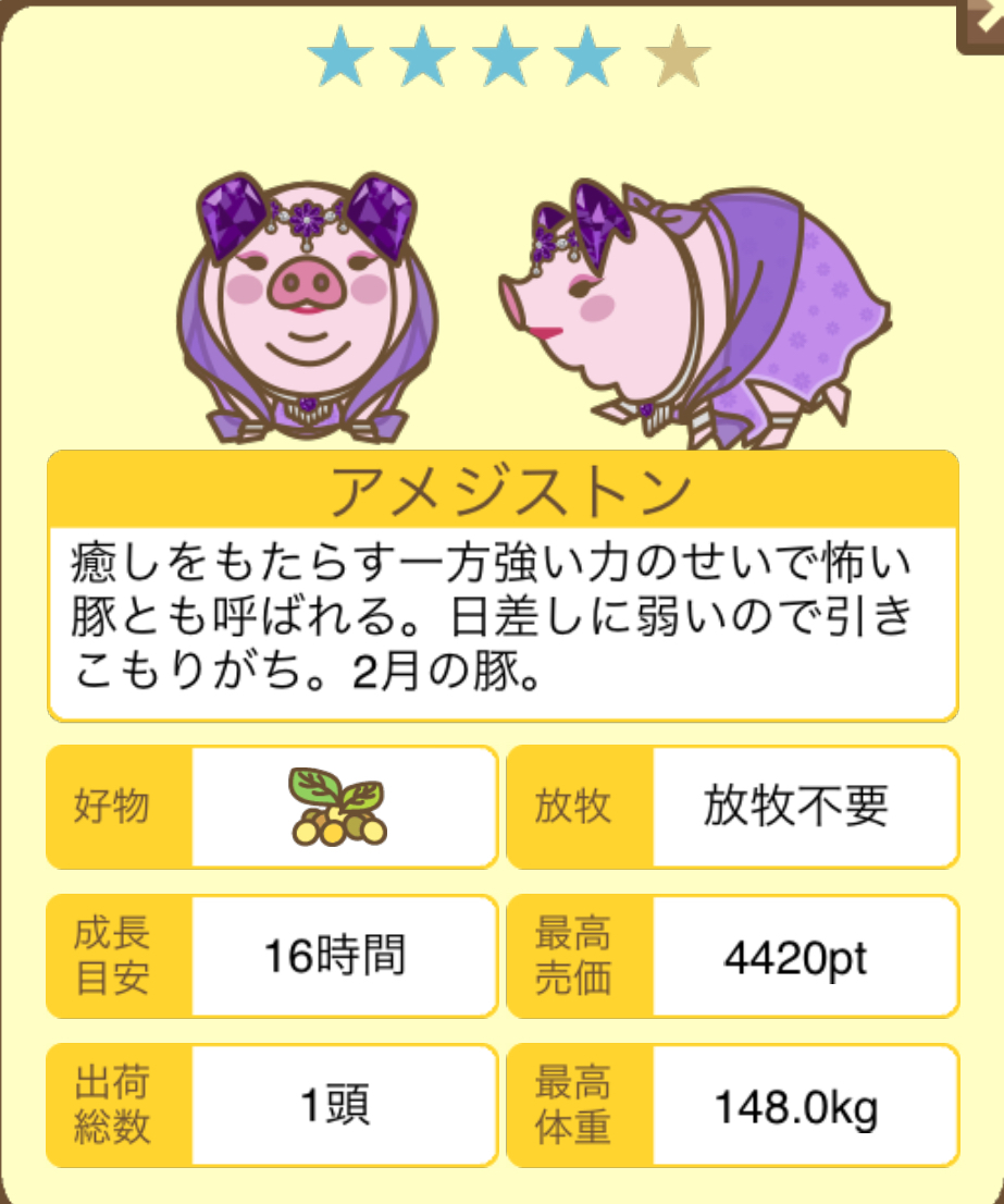 | レア度 | ★4 | 子ぶた色 | ピンク |
