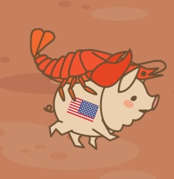 何を血迷ったのか、ロブスターを背中に乗せている 大ヨークシャー種 (アメリカ系)。