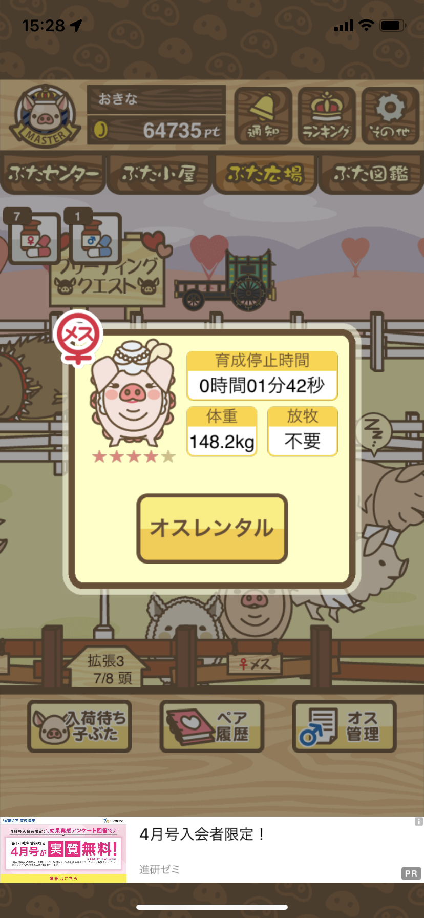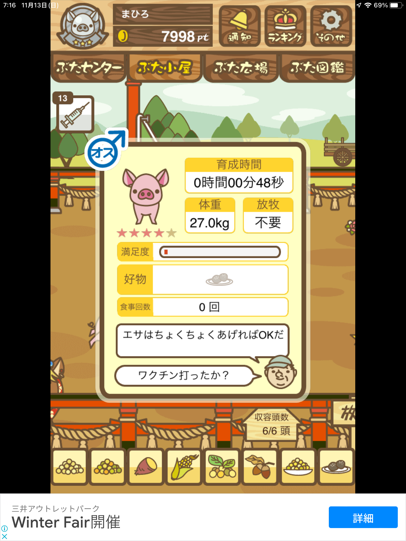 | 3D | 出荷前トラックに乗り込む際に オーナーの足を踏んでしまうがわ ざとではないらしい。「雑穀がな いならトリュフを」発言で一般豚 から反感をかう。 |