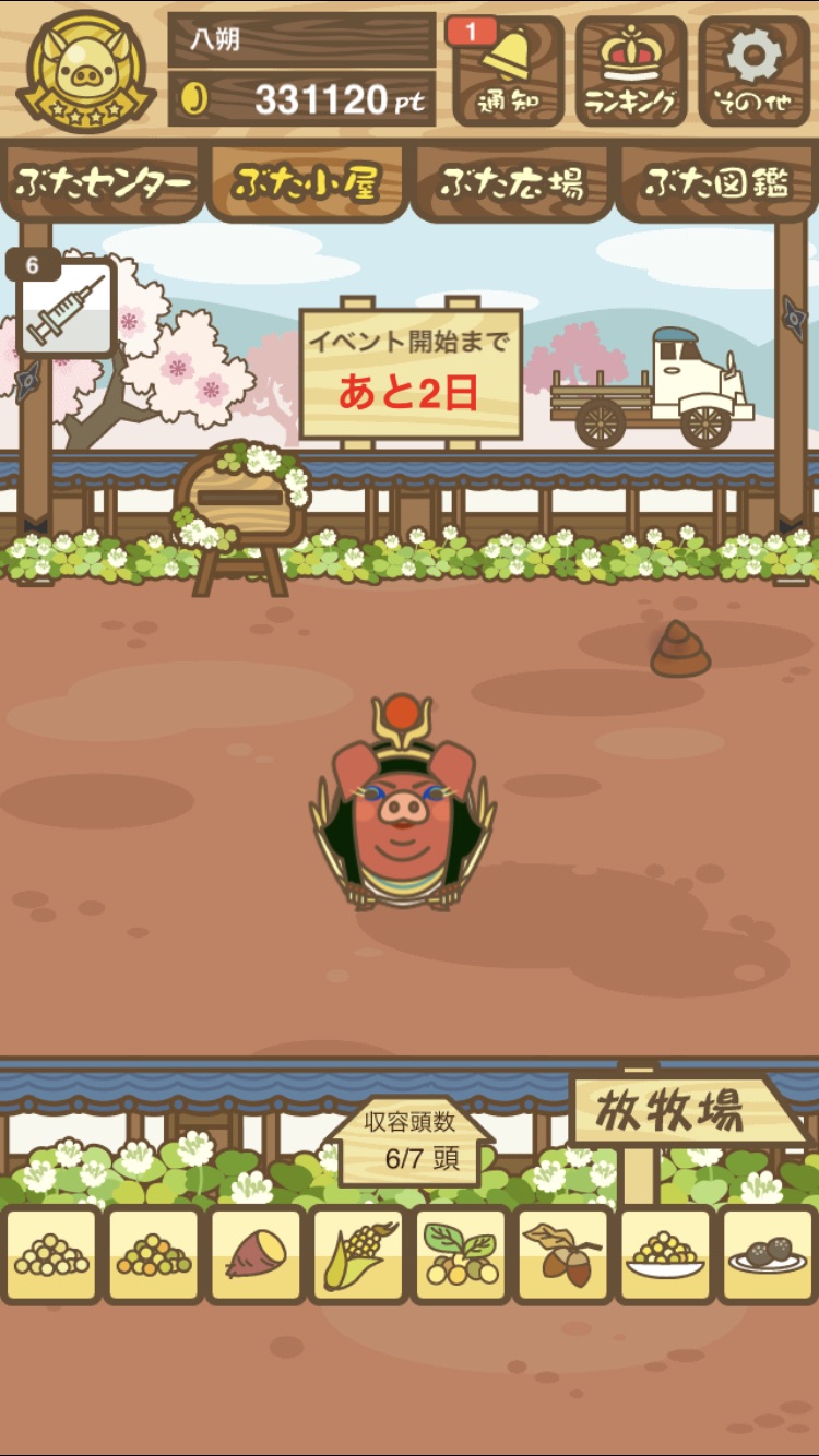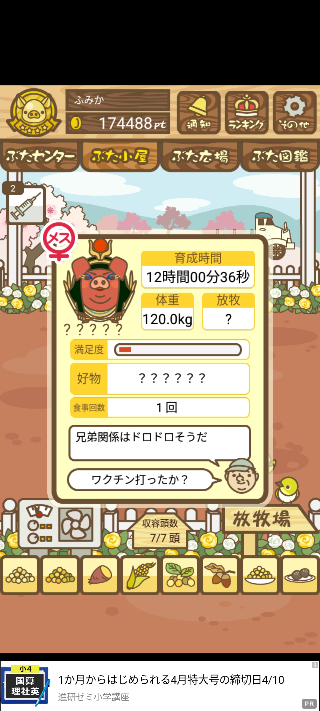 イシブゥは第2子なので、成豚のタイミングでフンが2個落ちている必要がある。
