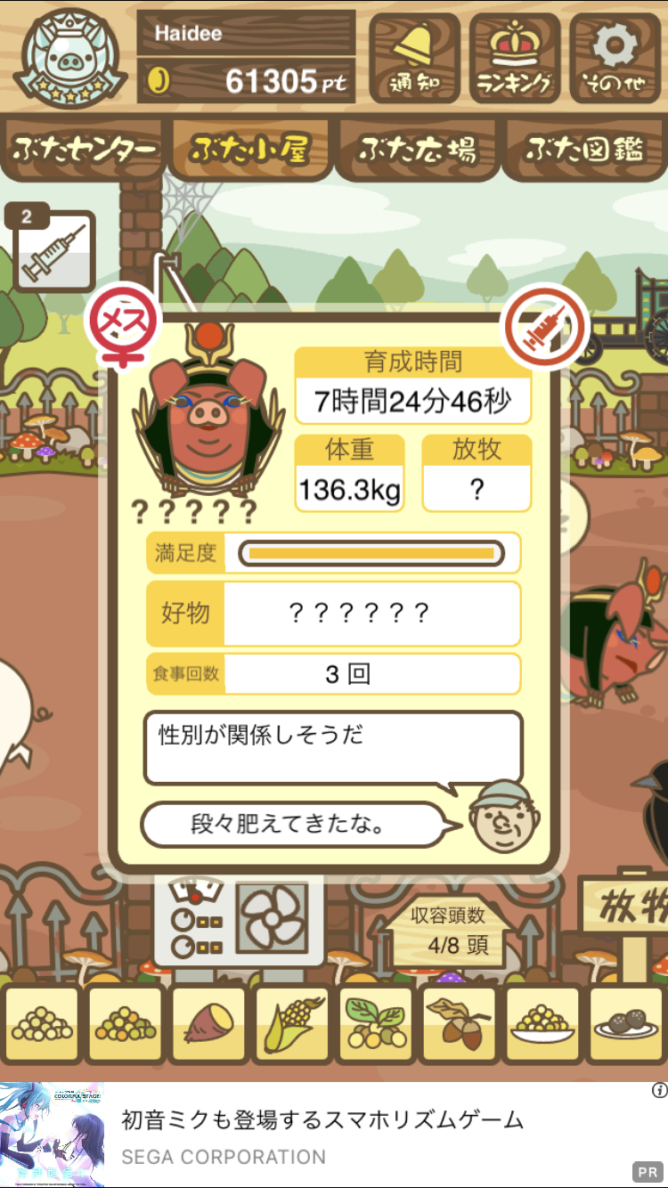 無事に成豚になると、特別なモーションとしてたまに背後に後光が差すようになる。
