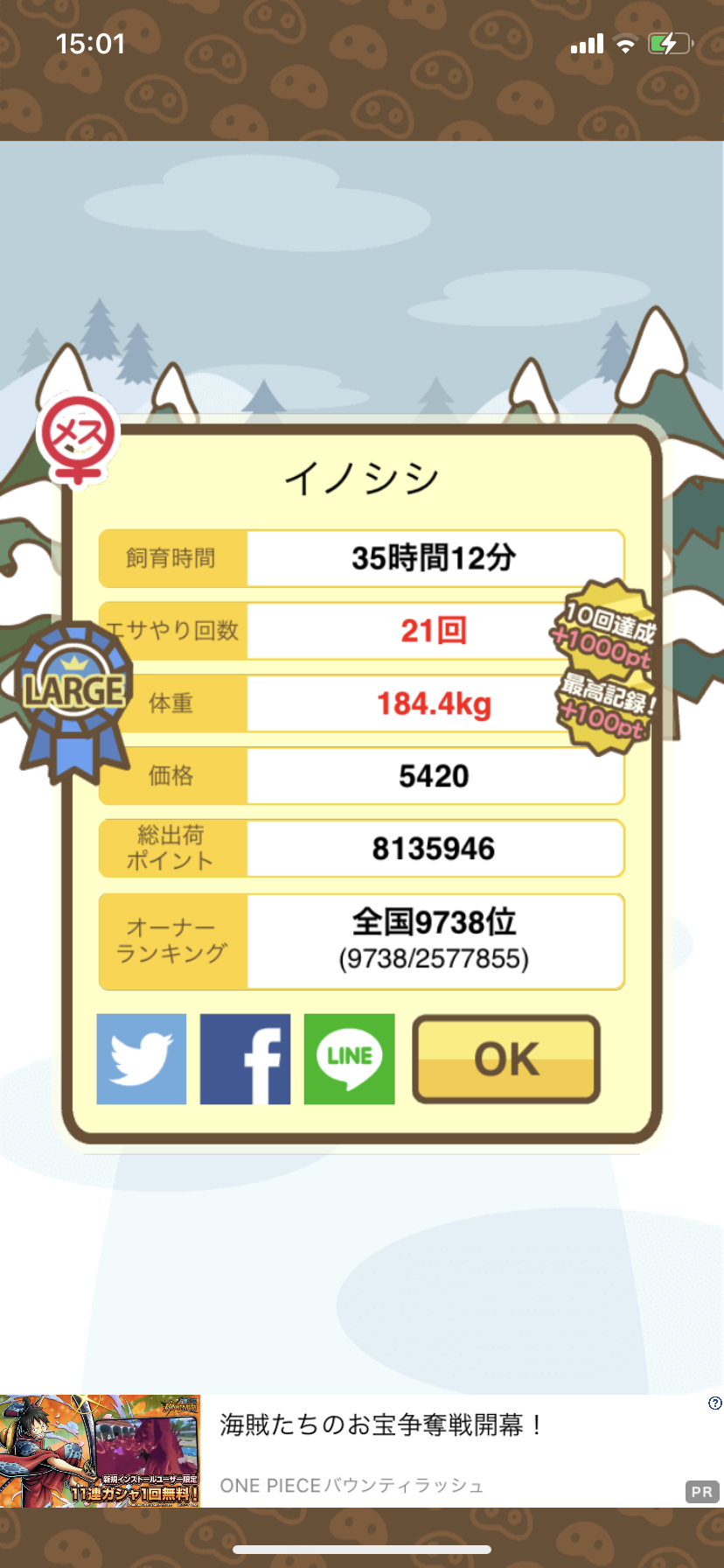 なお、イノシシを狙って入荷したい場合、イベントハントでうり坊を捕獲して育成失敗させる…という方法がある。