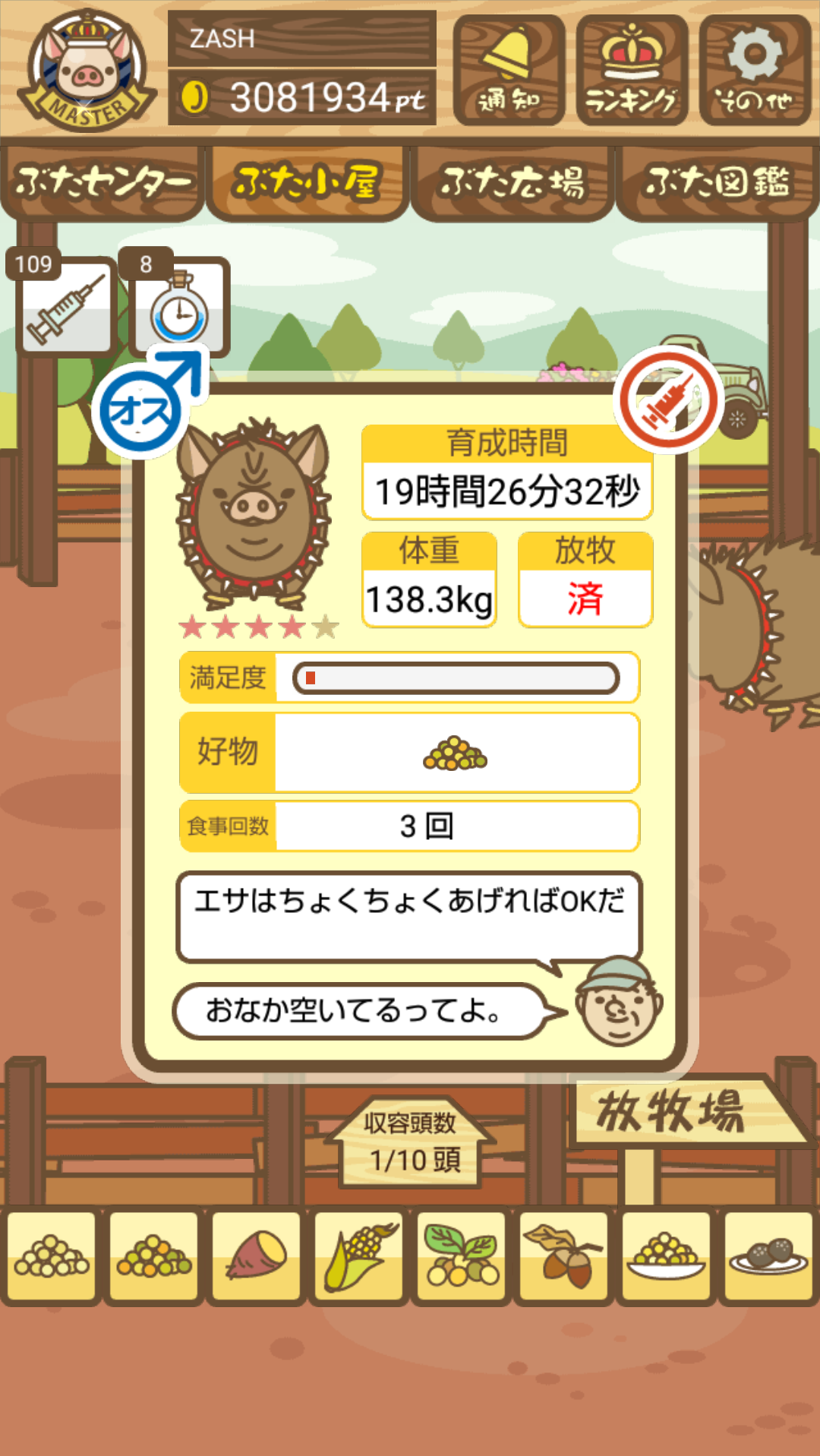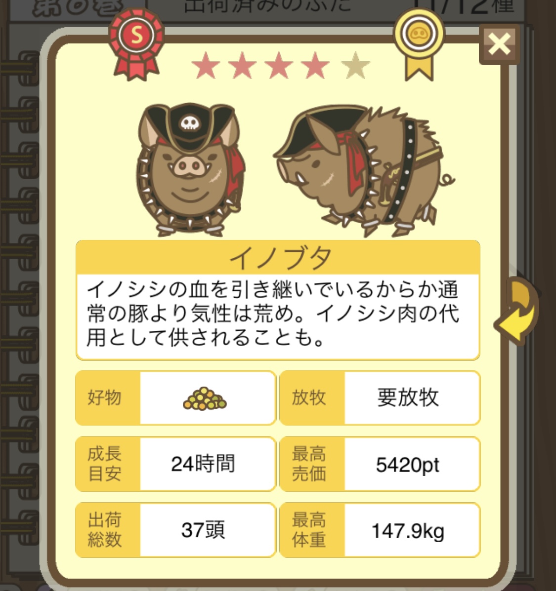放牧し忘れたりして育成に失敗すると イノシシ に変化する。