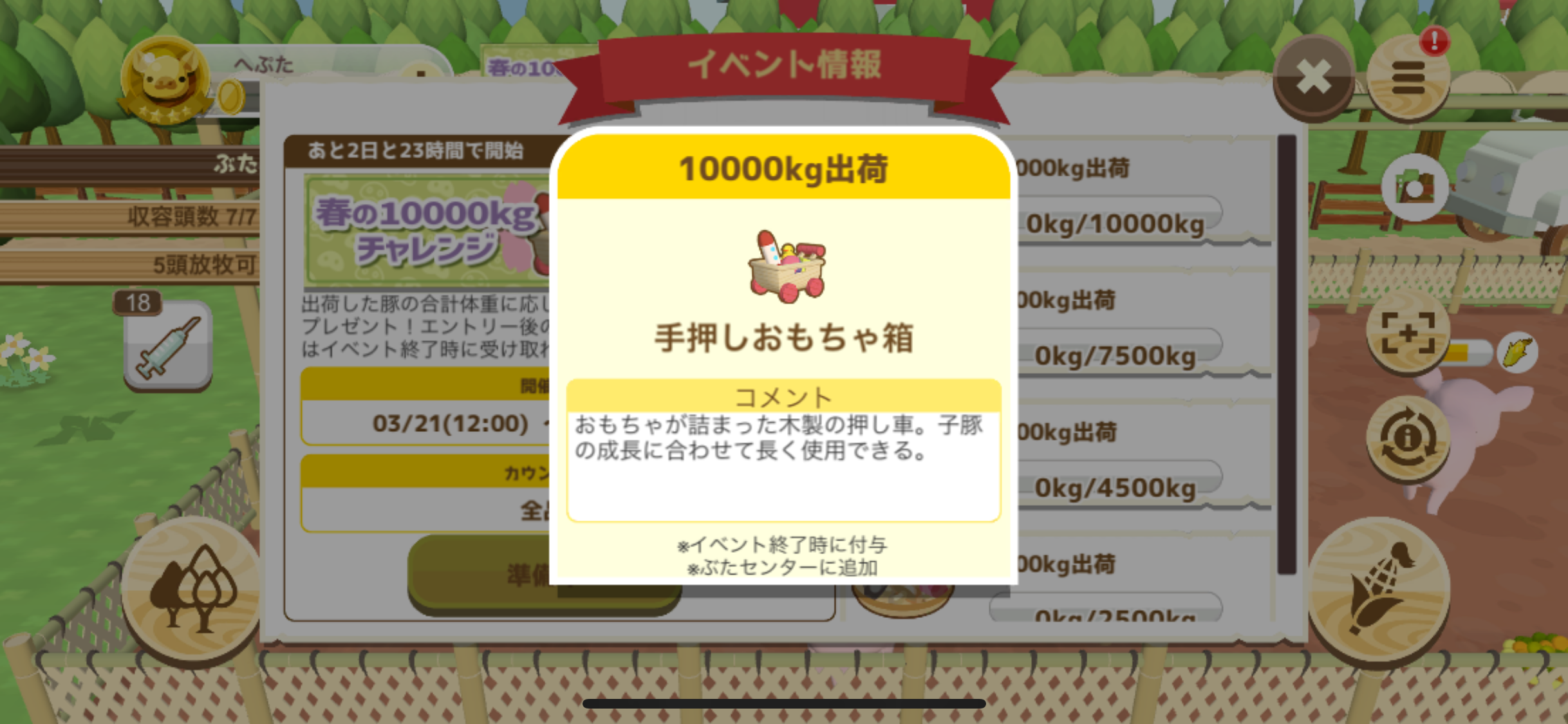 - 18年01月「ぶた小屋をイメチェン! アイテムGETイベント」