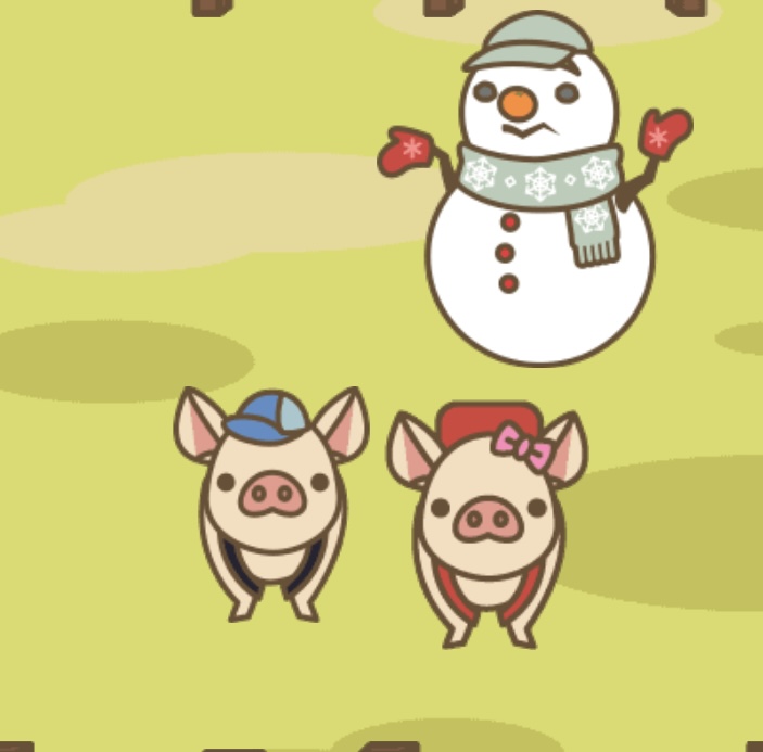 エサをぶたの左側に置くと図鑑の正面向きの見た目になる。