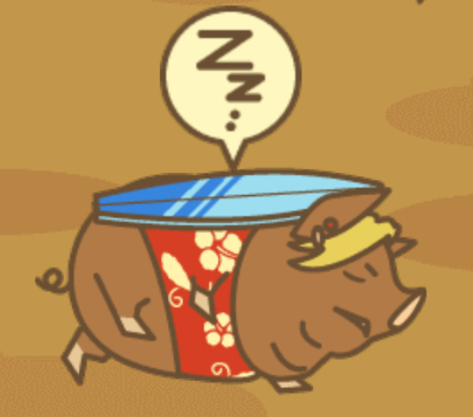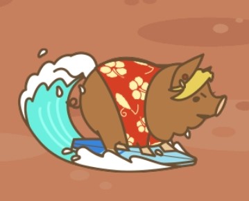 | 3D | 陽気な波乗り豚。いつでも良い波 に乗れるようサーフィンのイメト レをするのが日課。いつかあのト ラックで海に行くのが夢だと語っ ていた。 |