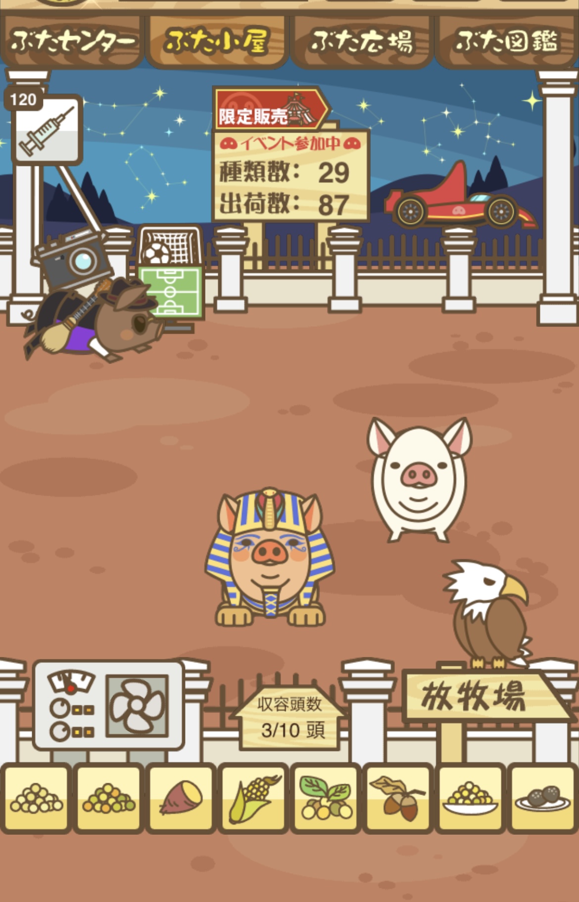 ぶた小屋の下にある「収容頭数」はぶた小屋の中と放牧場の合計の数なので、間違えないように注意。
