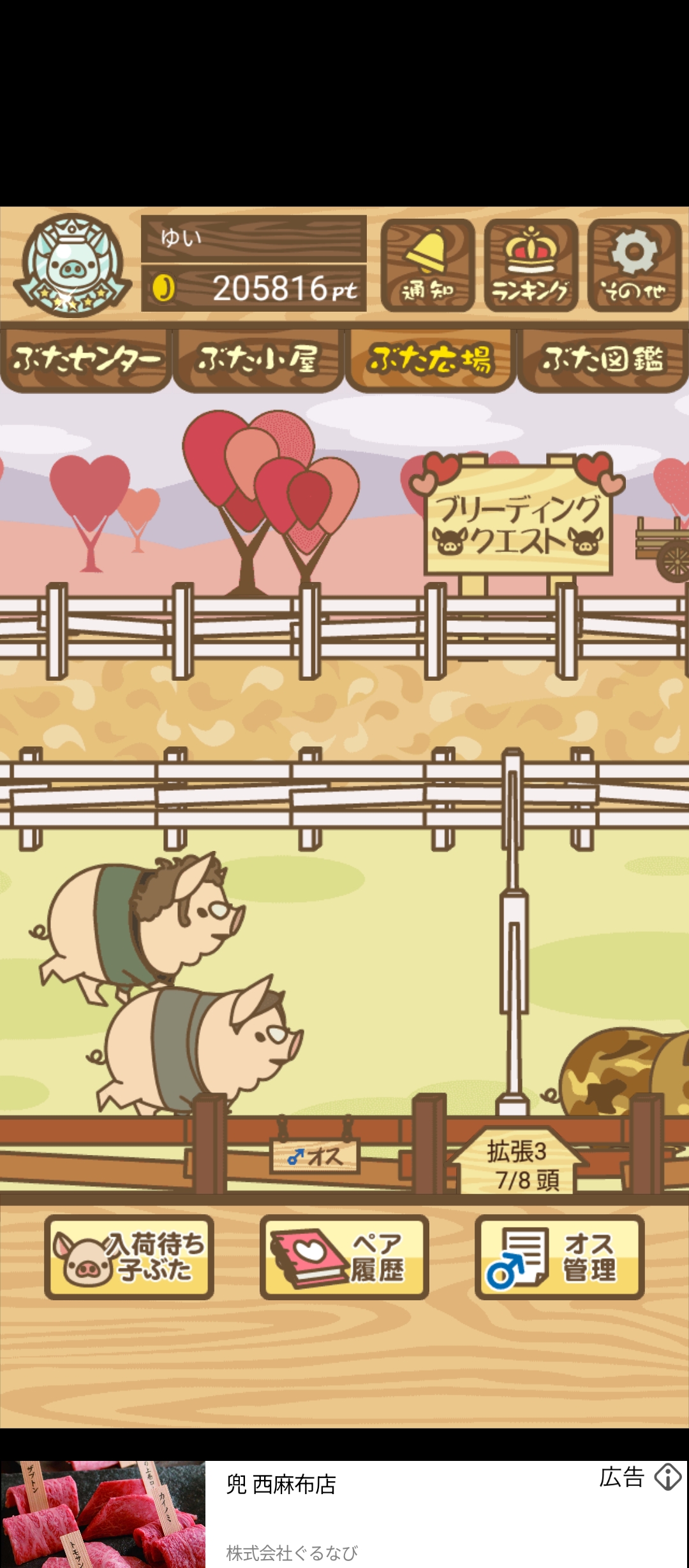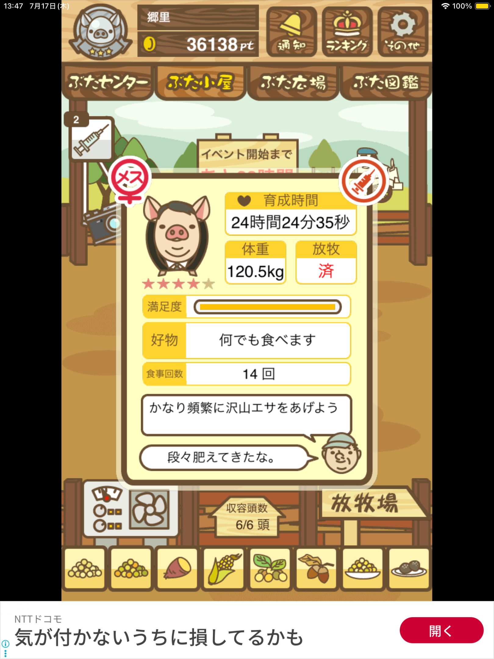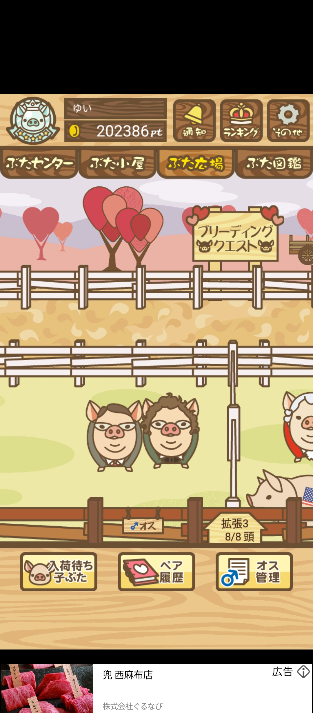最低体重条件があり、成豚の際に体重が一定値を下回っていると 社畜豚 にランクダウンしてしまう。