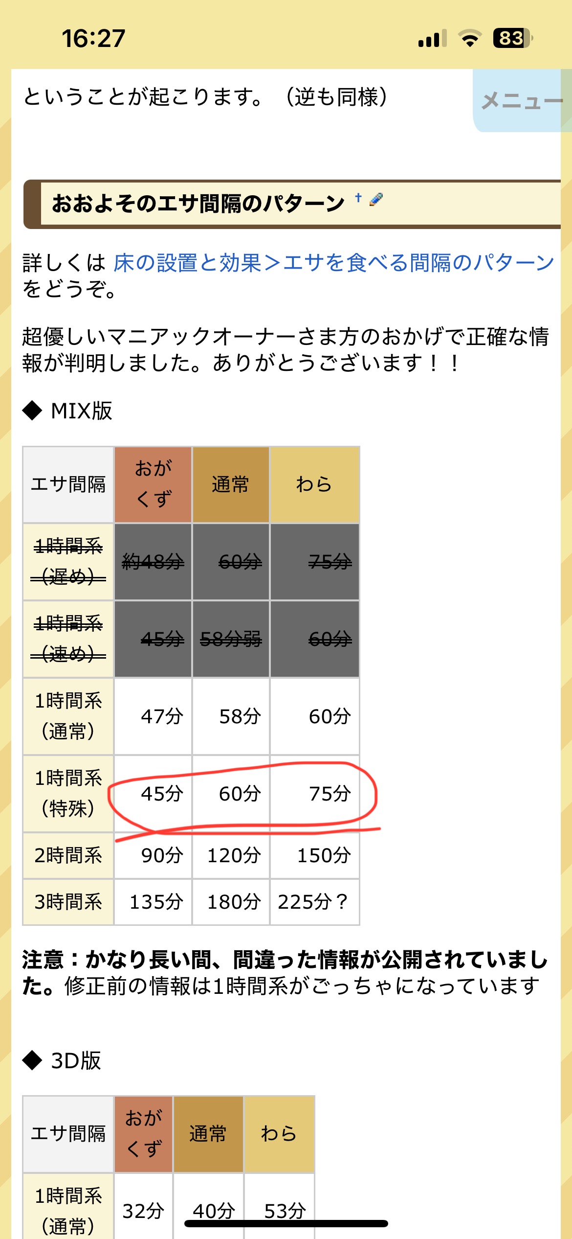 | エサ間隔 | 1時間系(特殊) |