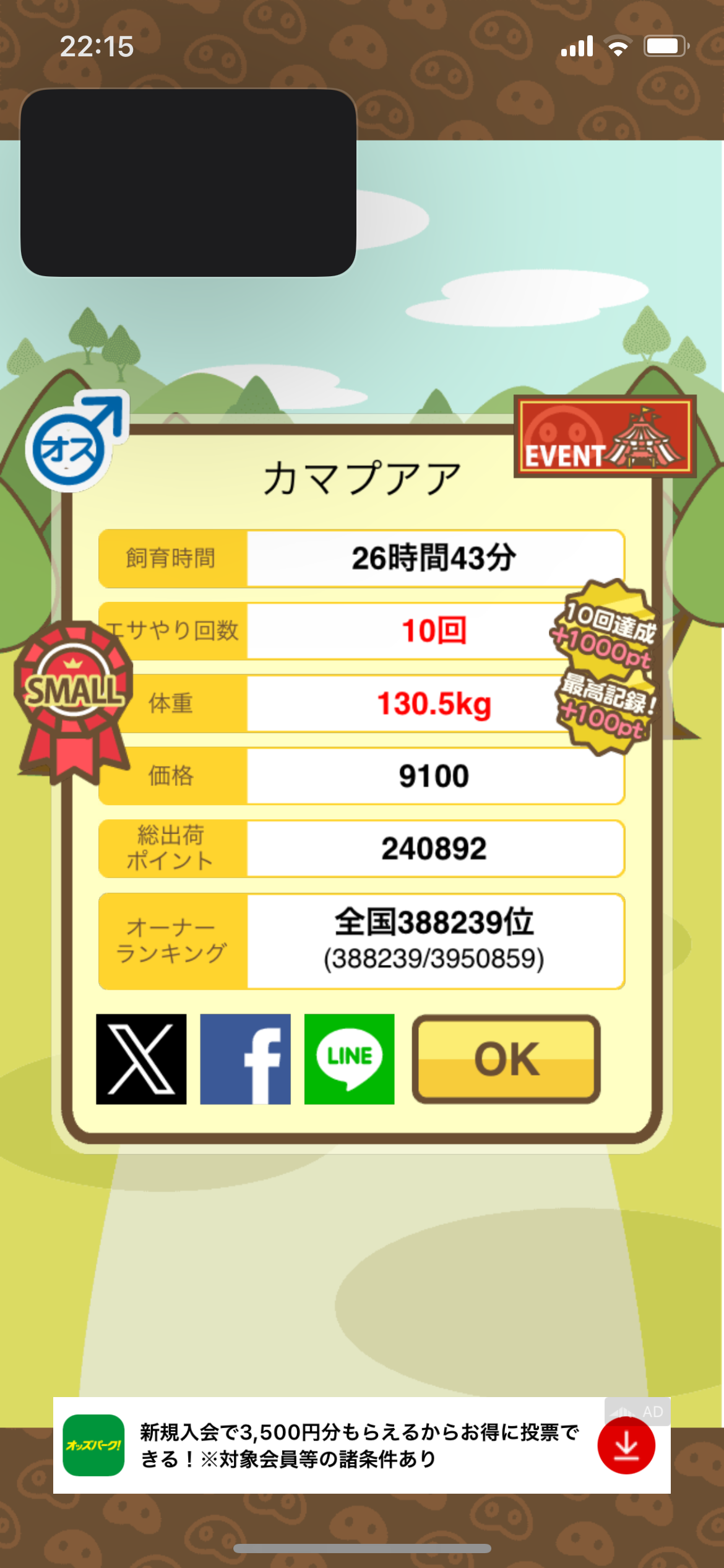 ⇒21年7月追記:育成ヒントでエサ回数が確認できるようになった。前よりも簡単に!