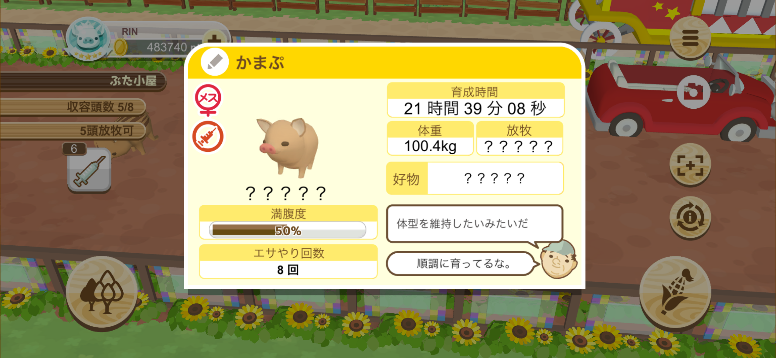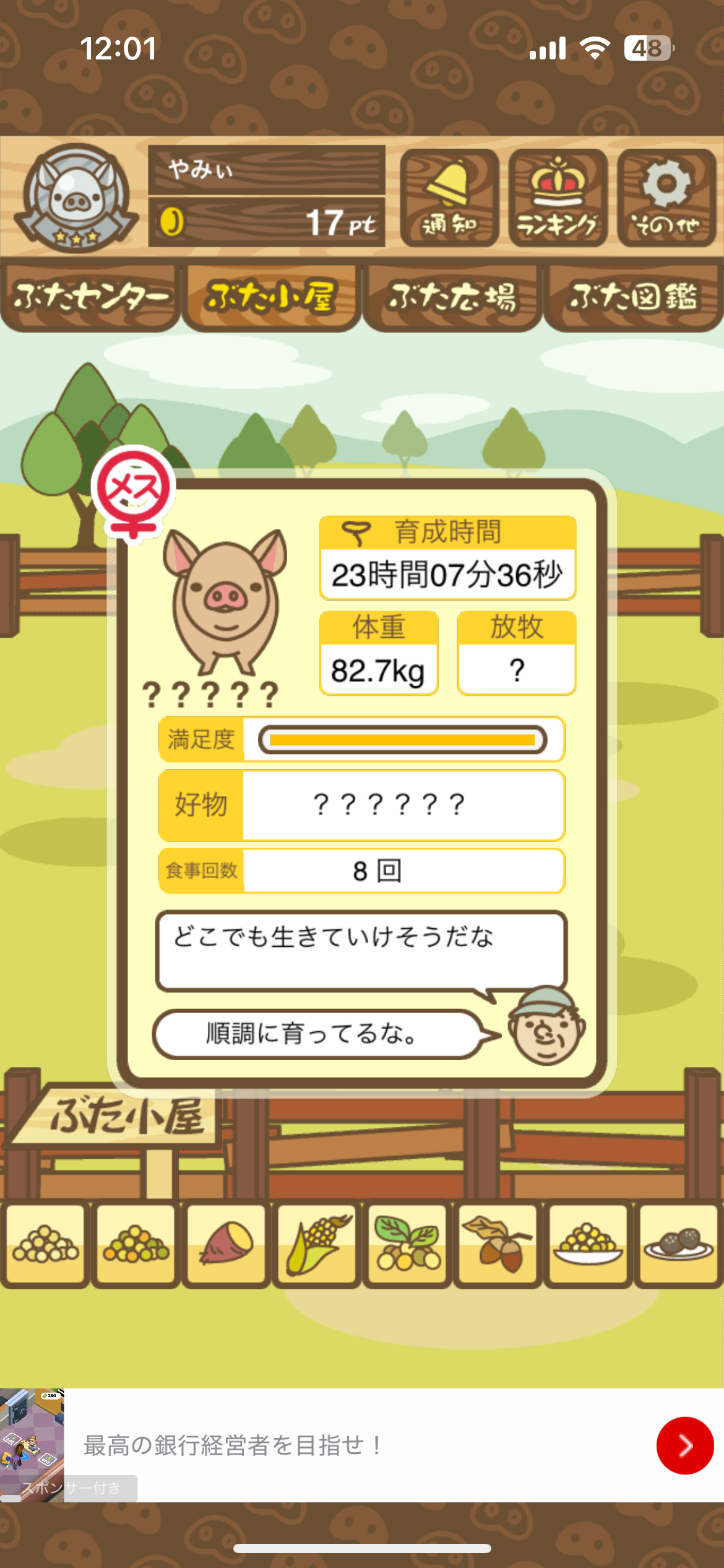 該当の「豚の巻」を交換済なら、特定の育成条件を満たすことで成長先が 別のぶた に変化する。