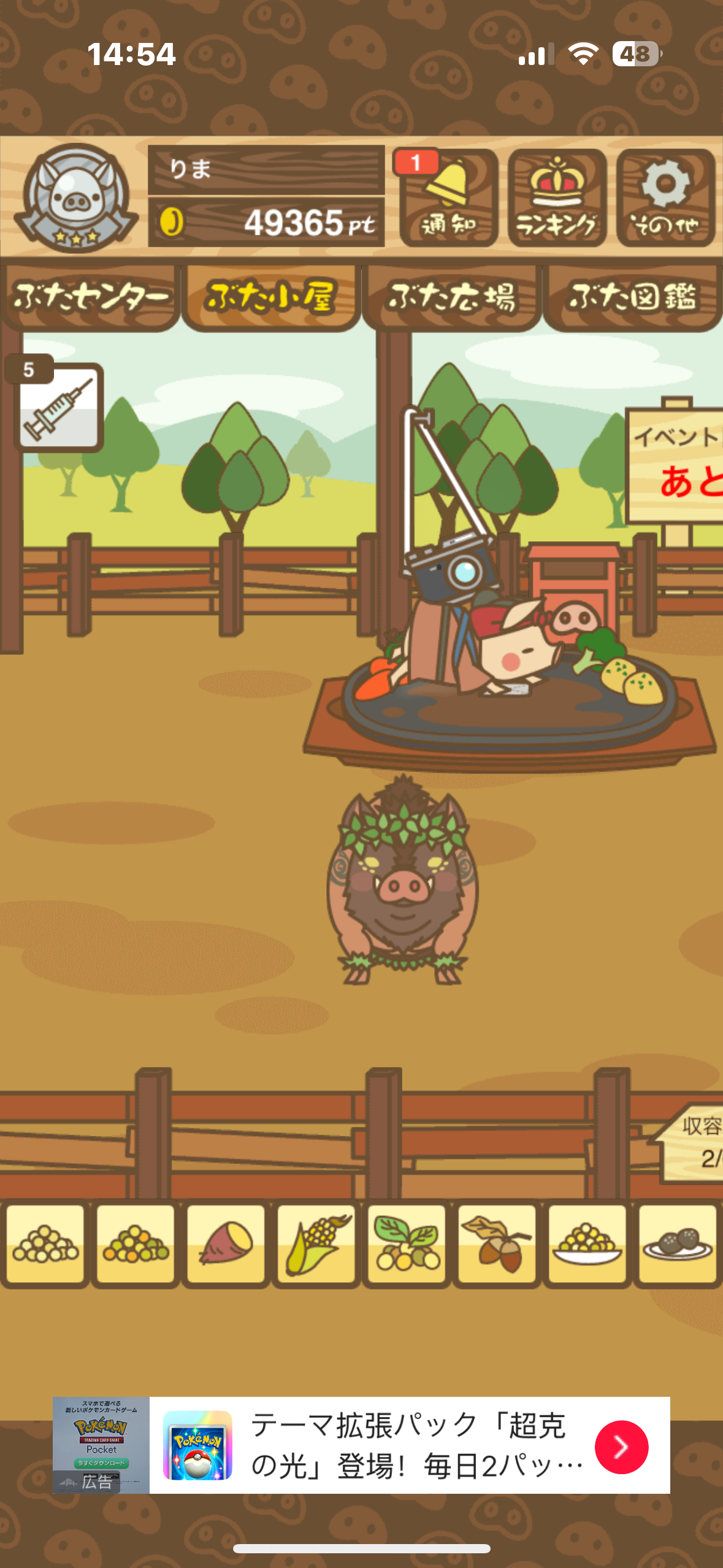 ちなみに、いもを8回食べさせたあとは赤ゲージが連続して心配になってくるが、