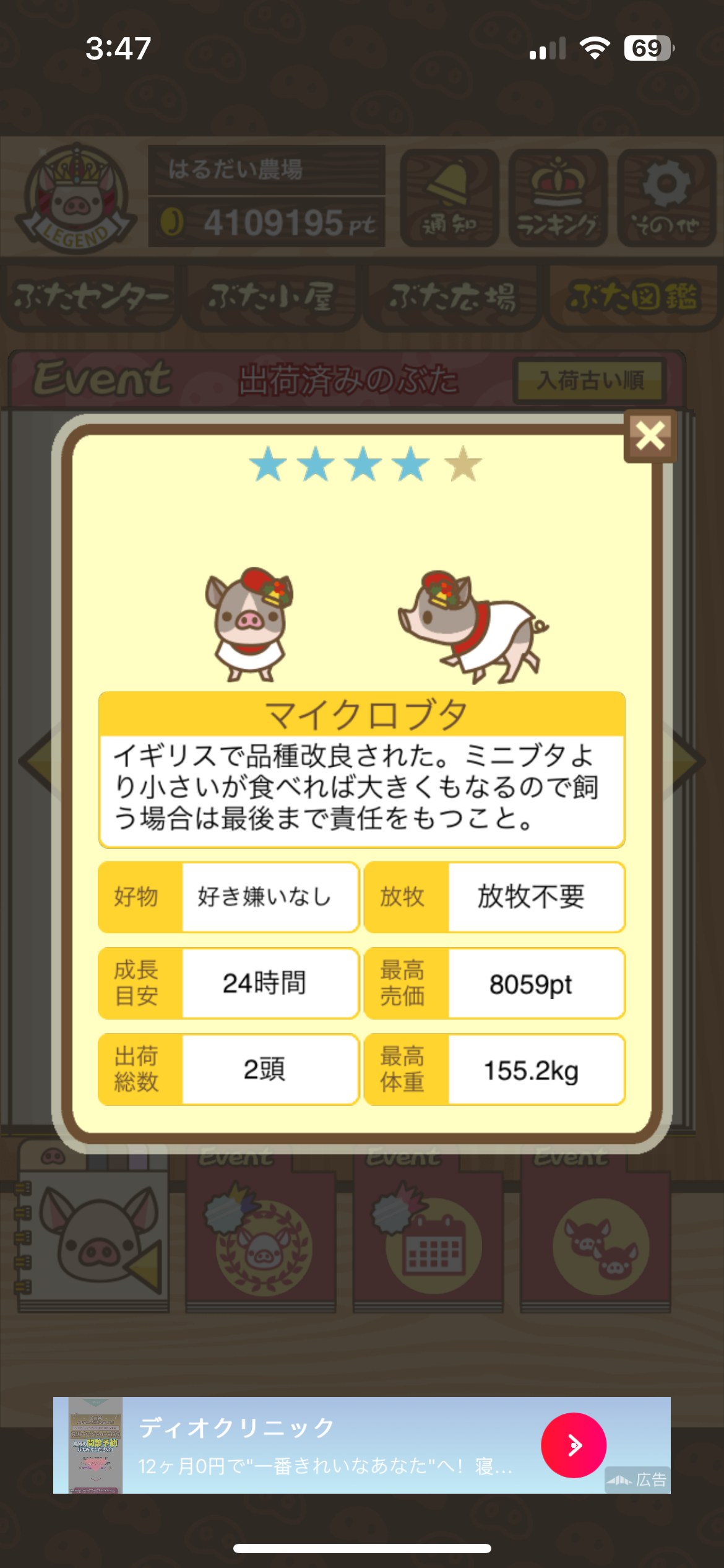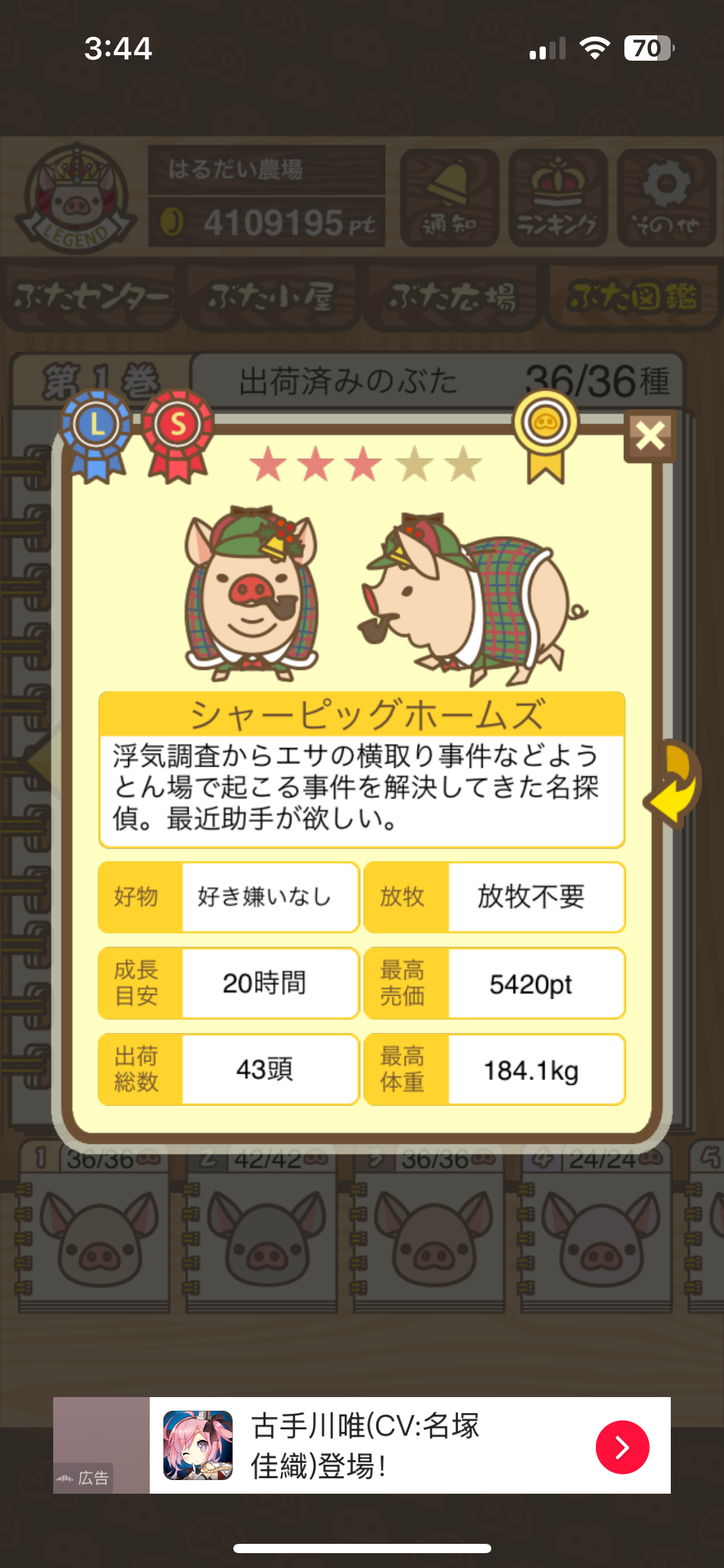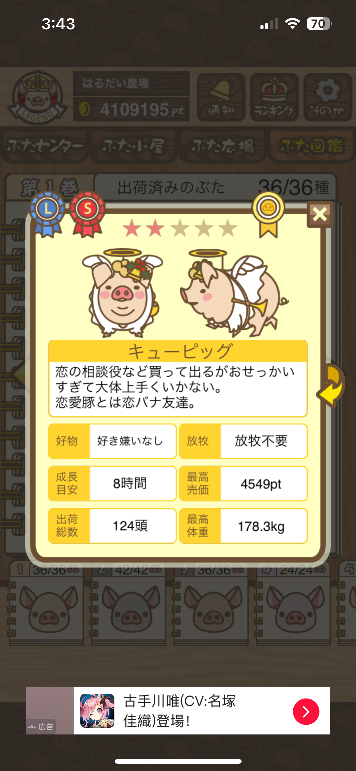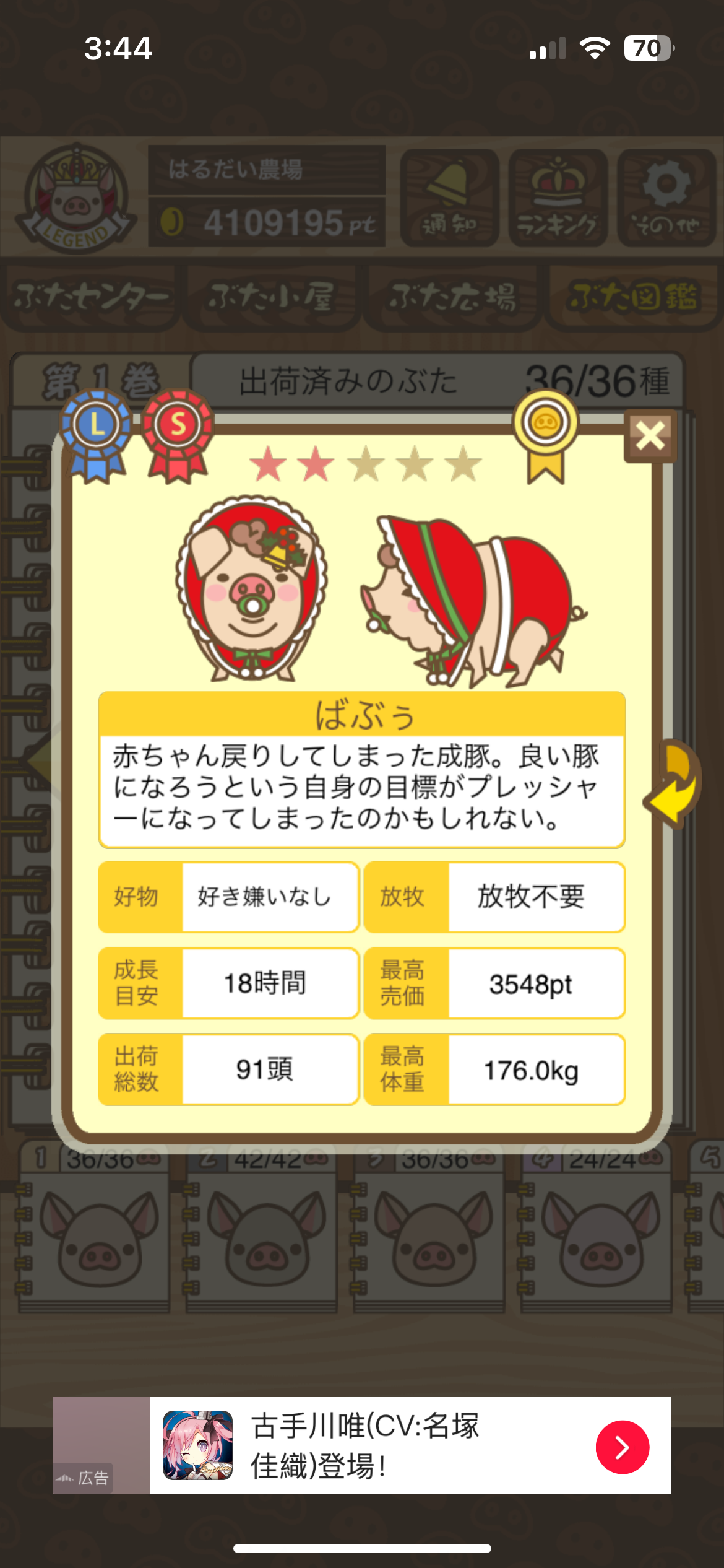一定頭数を出荷するタイプの 季節イベント でコスプレぶたが2頭分のカウントになることも。