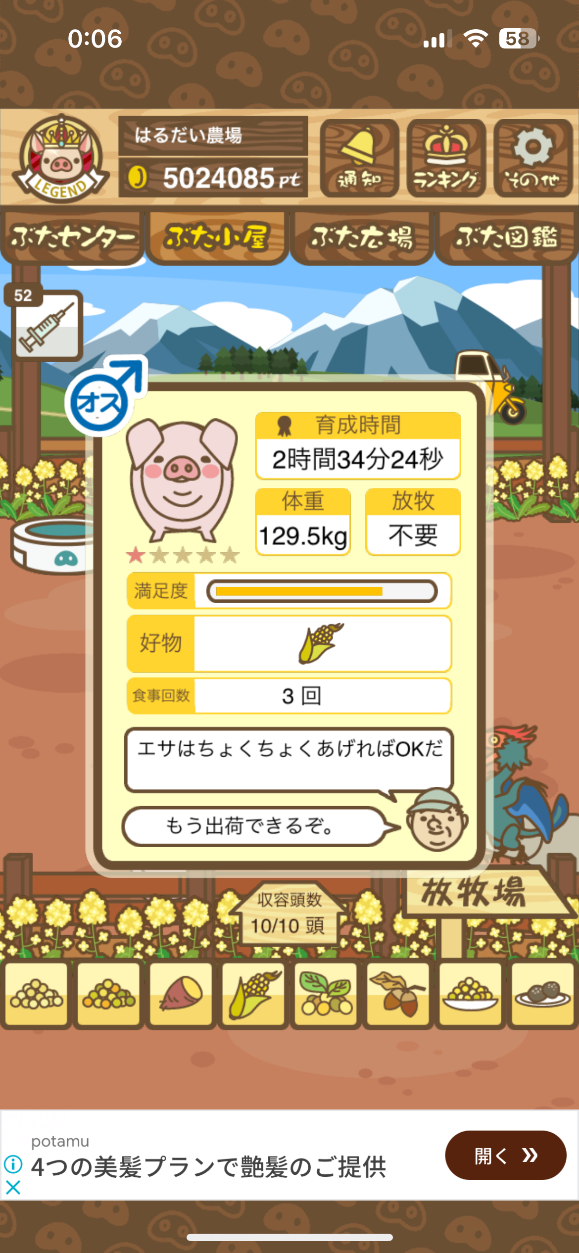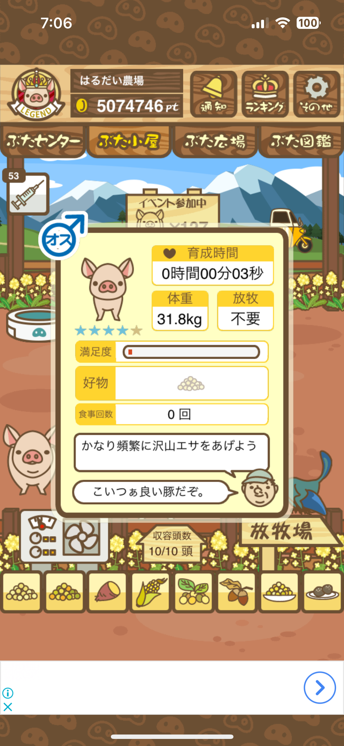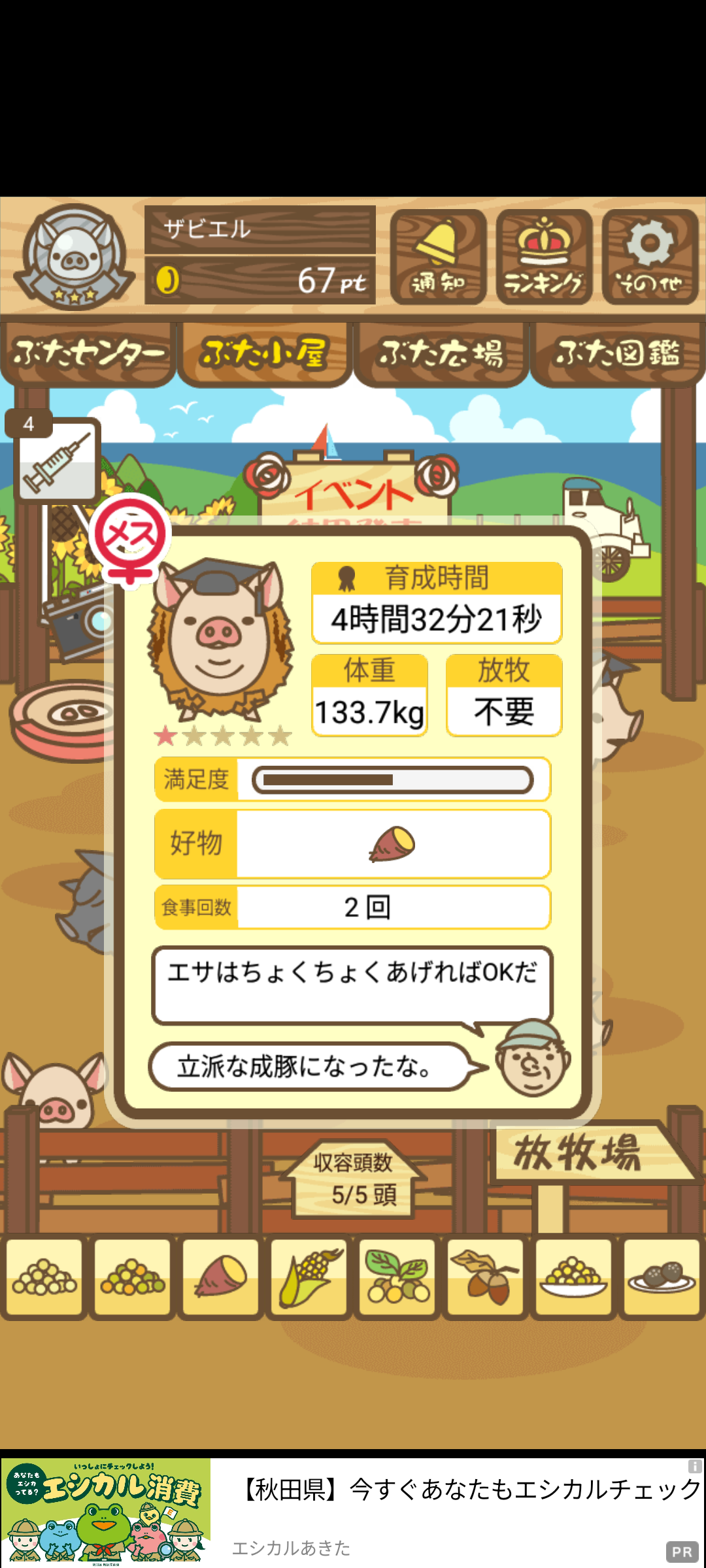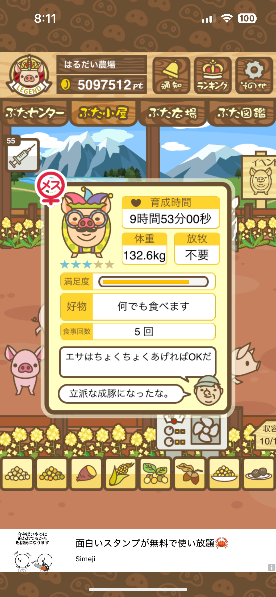育たなくても困らない豚さんですので…