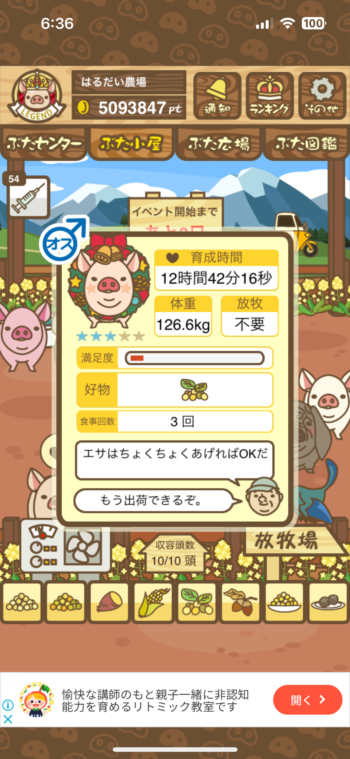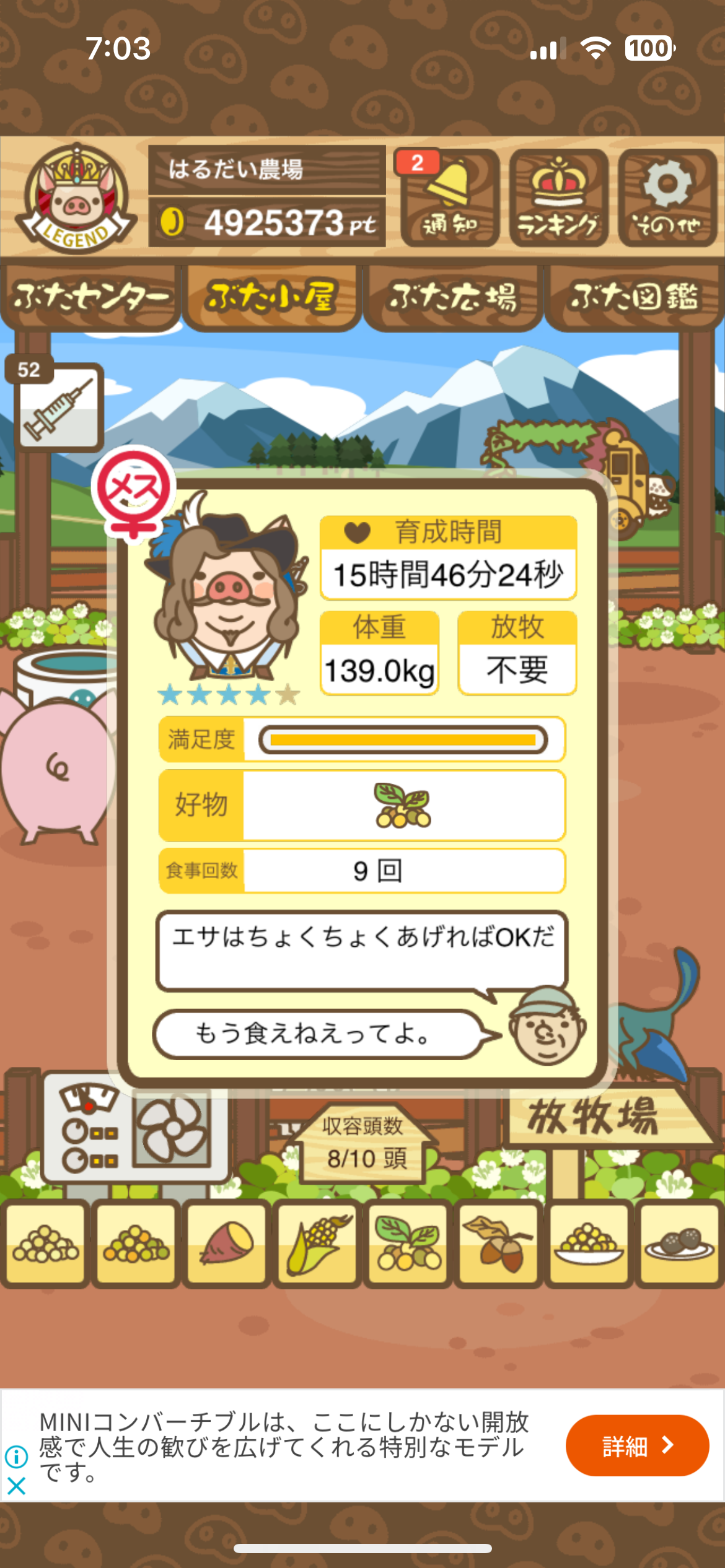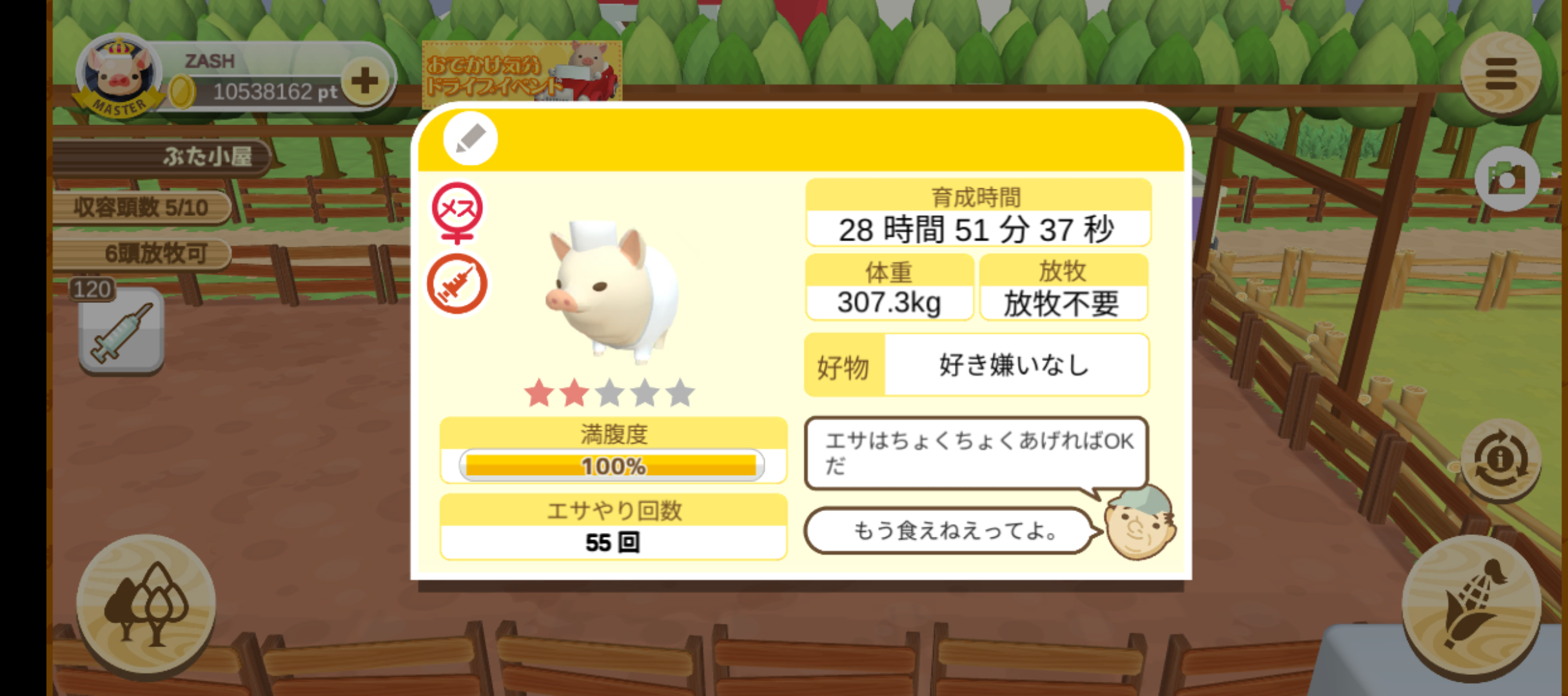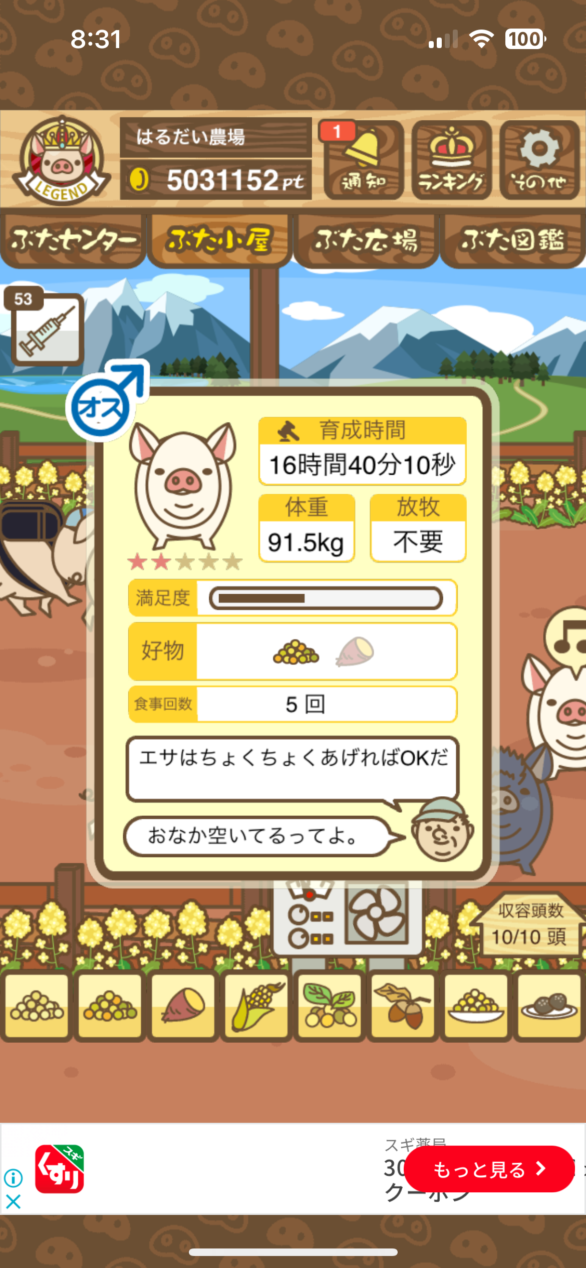 育たなくても困らない豚さんですので…