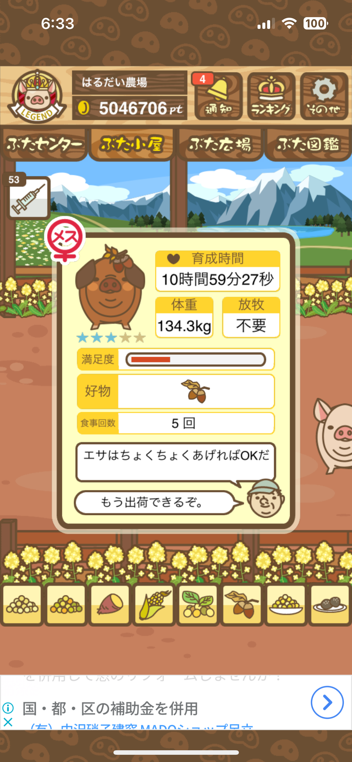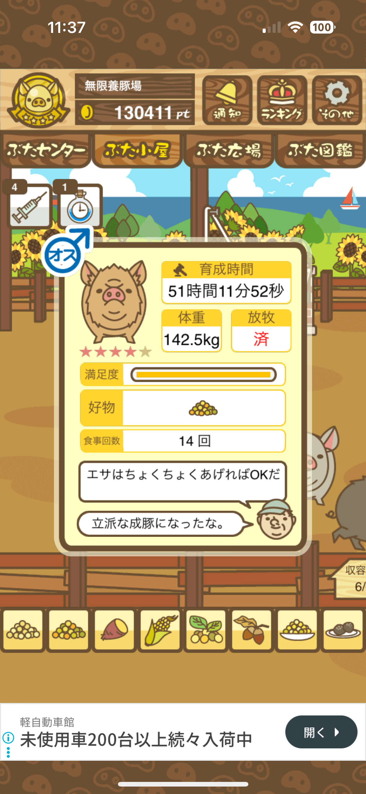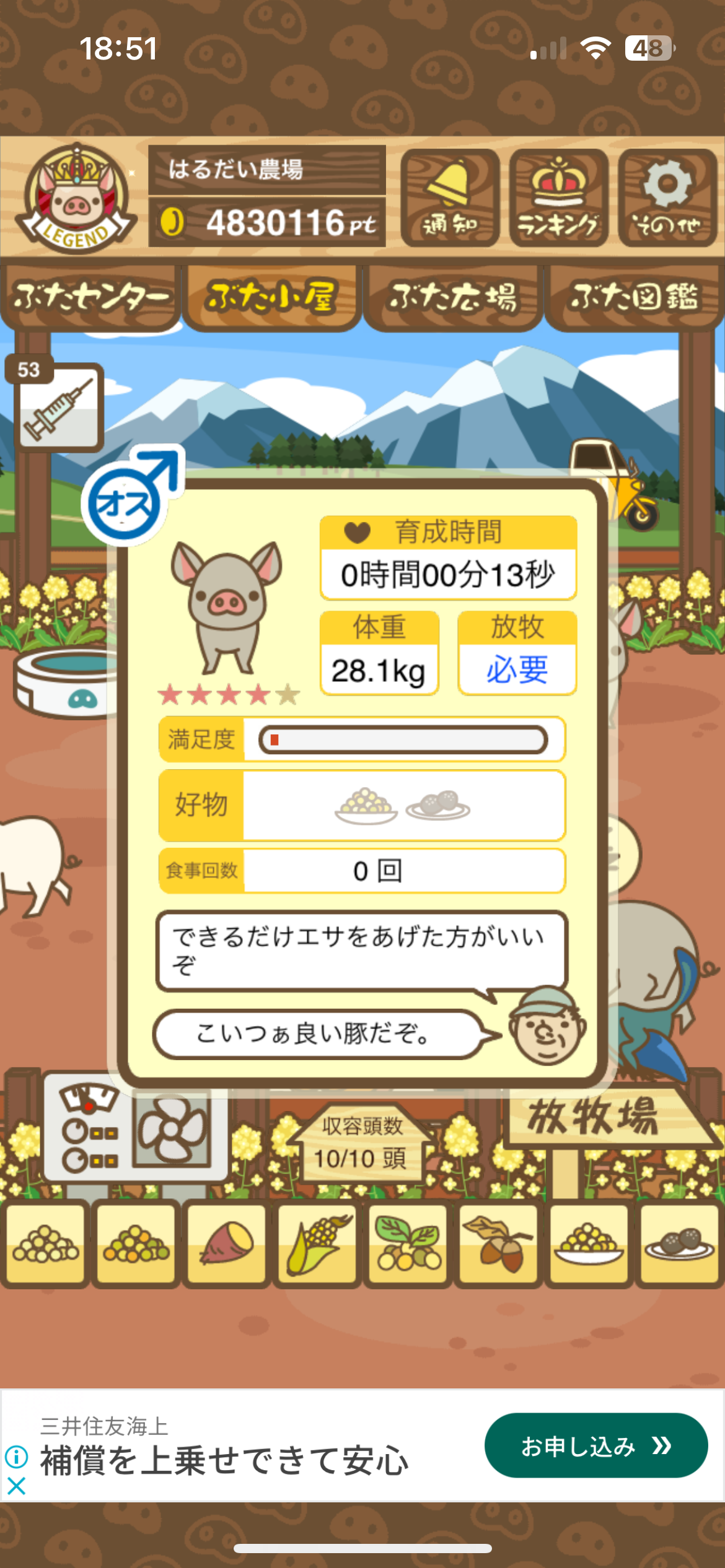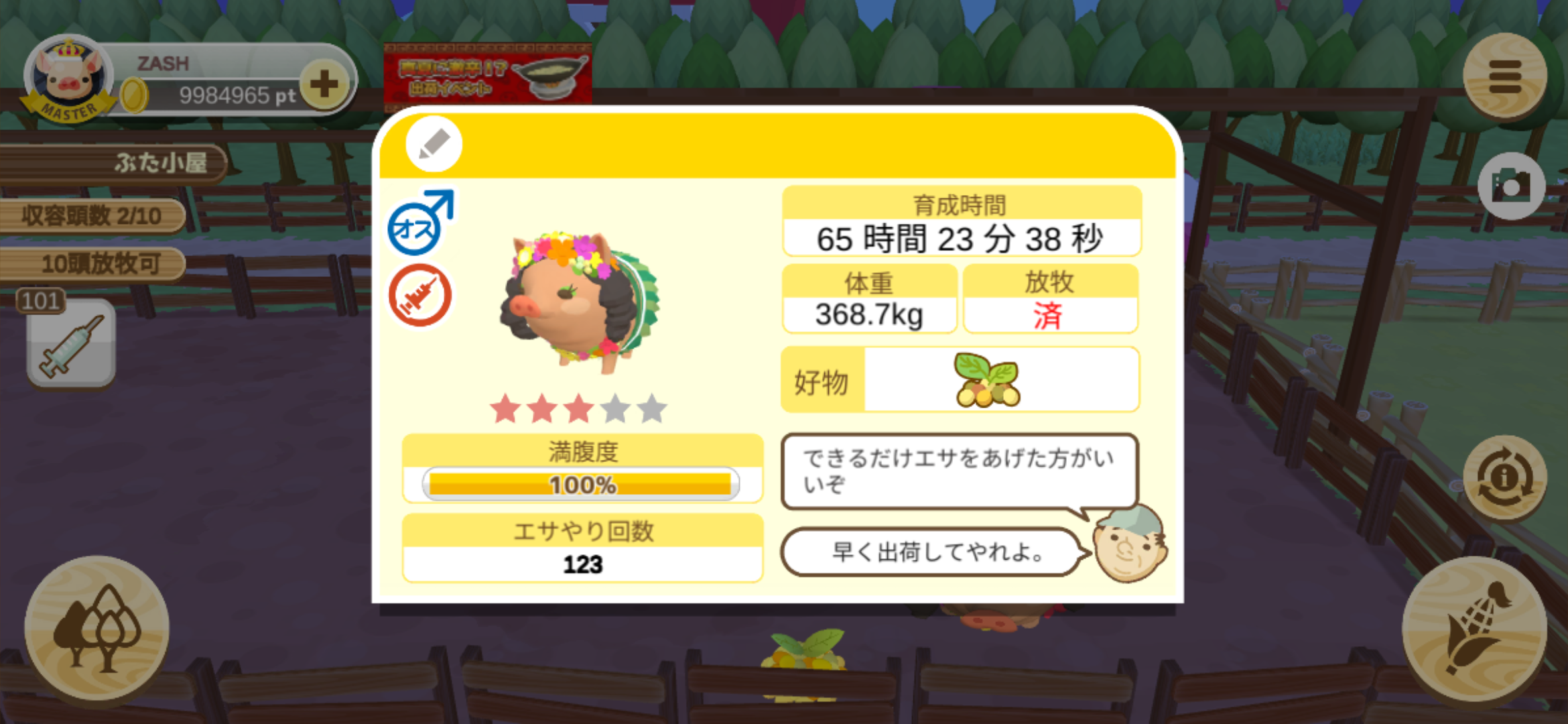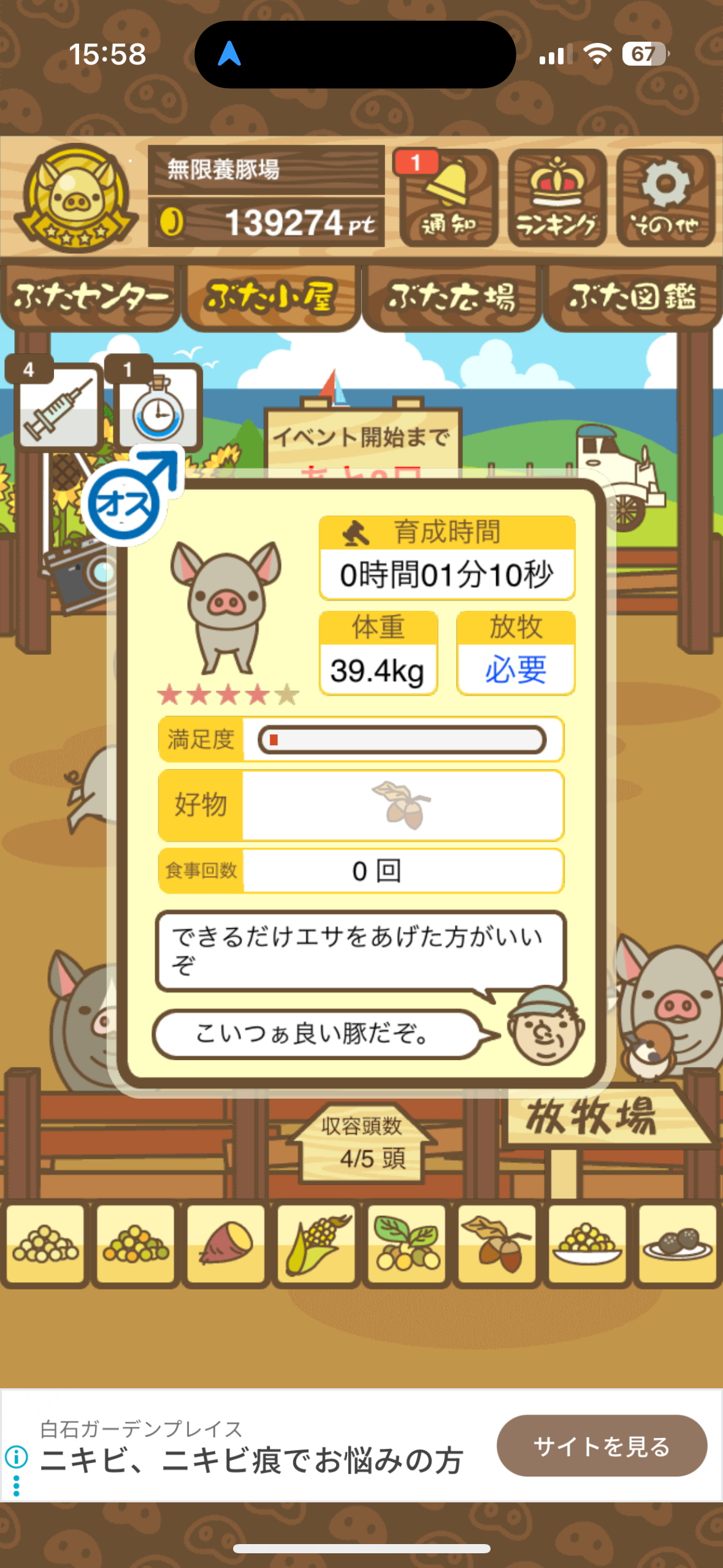 育たなくても困らない豚さんですので…