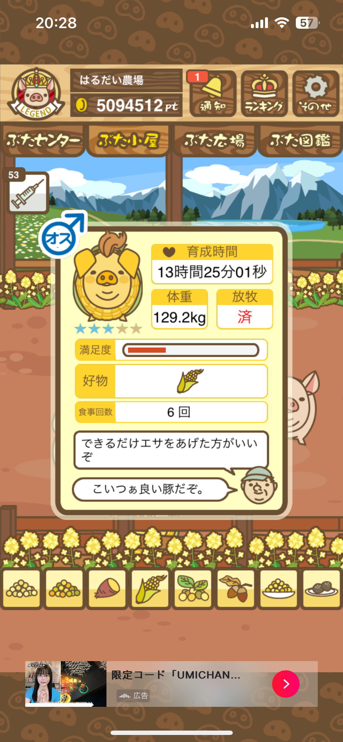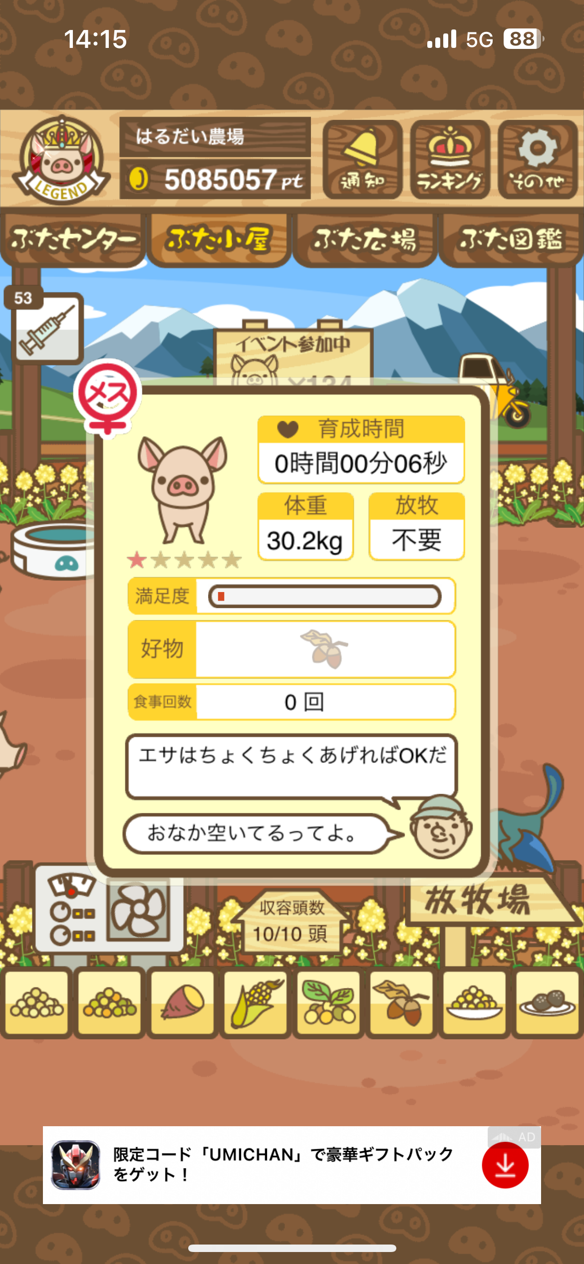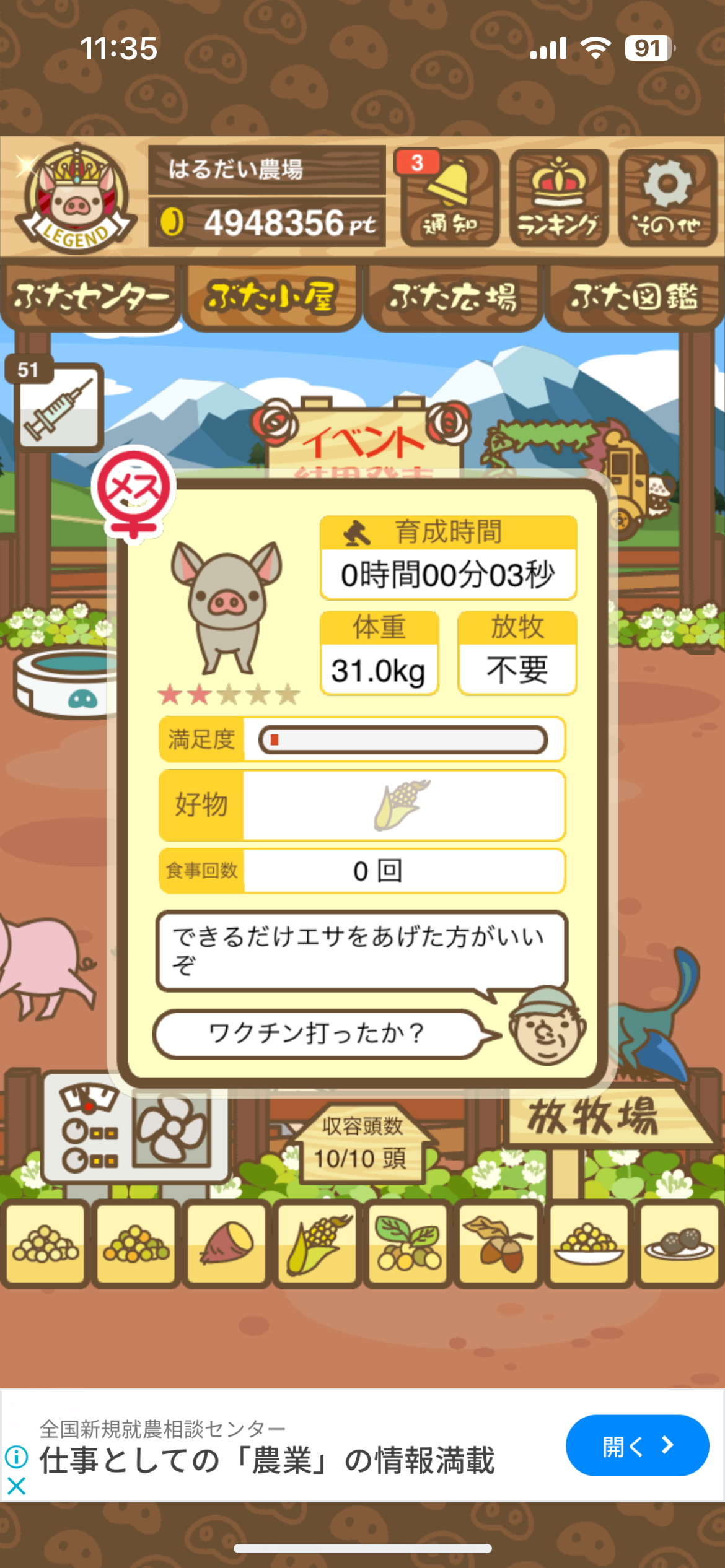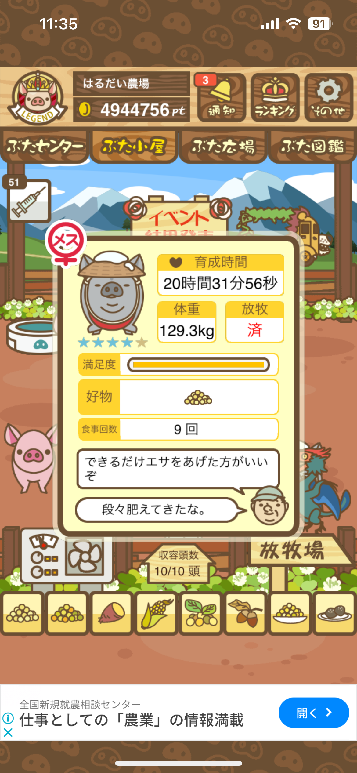 育たなくても困らない豚さんですので…