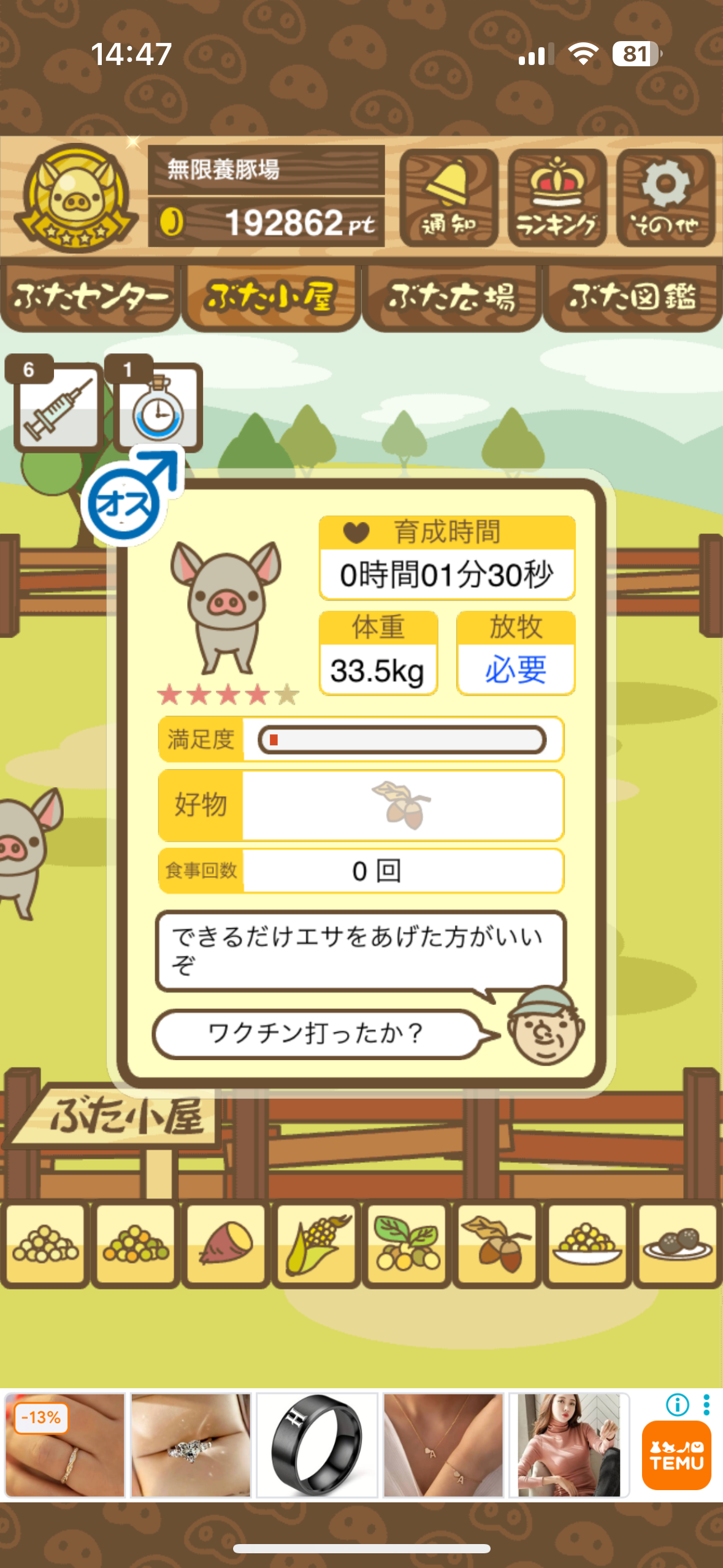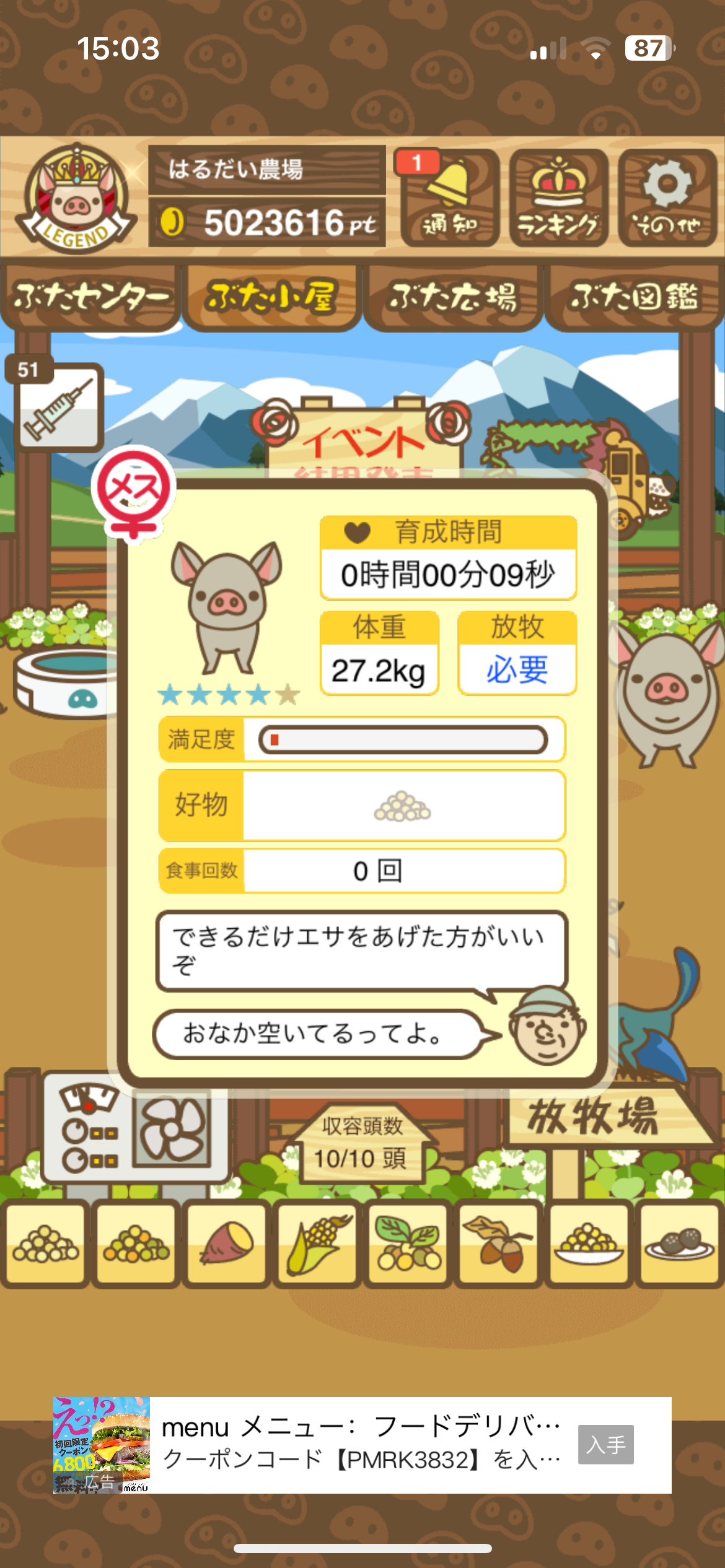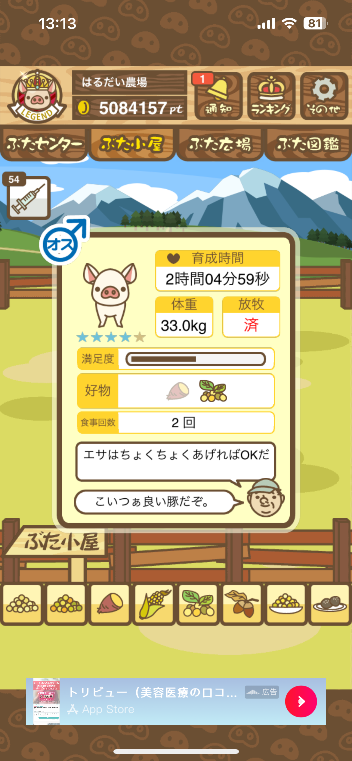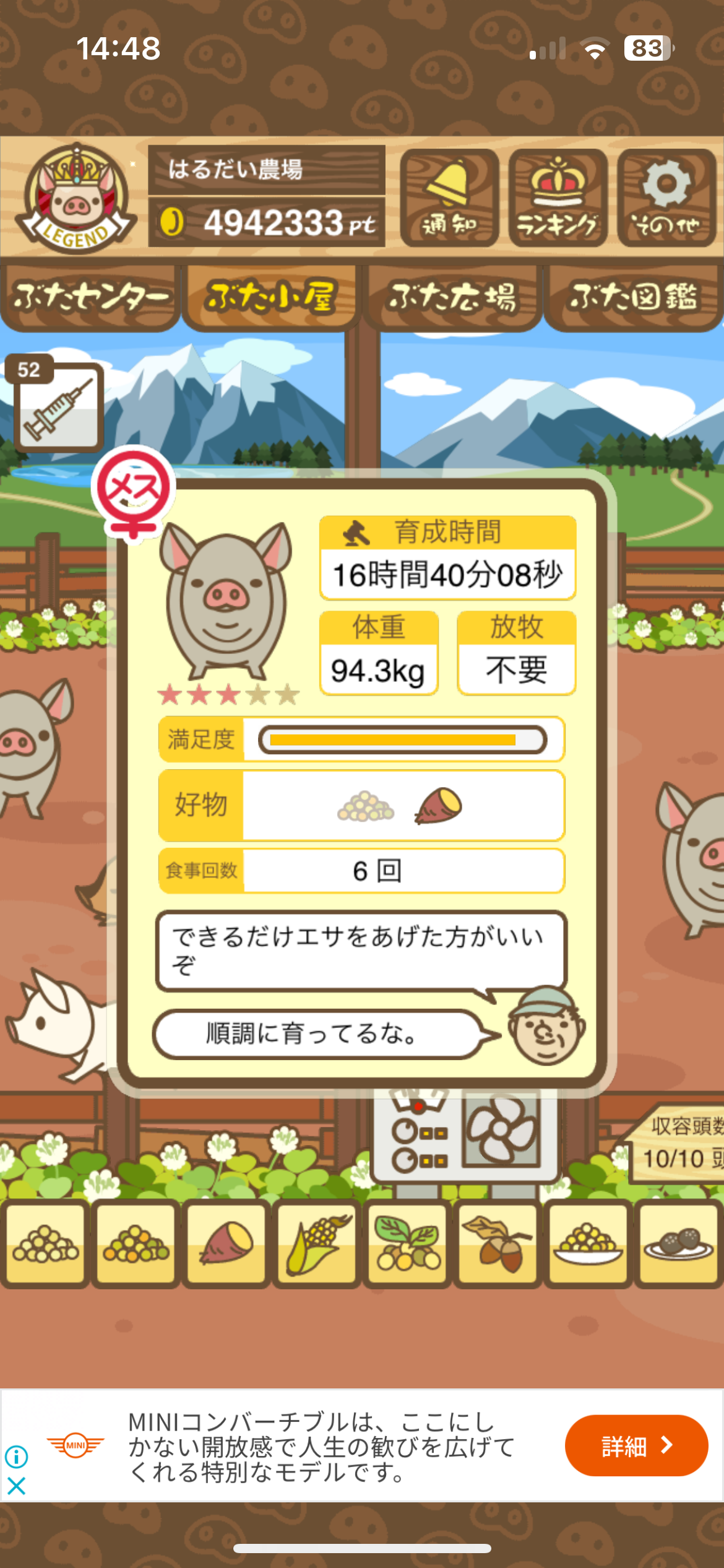 育たなくても困らない豚さんですので…