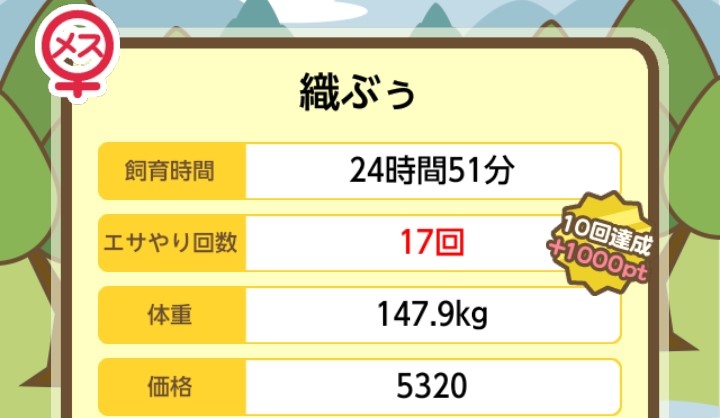 エサ回数の変化:0回 ⇒ 51回