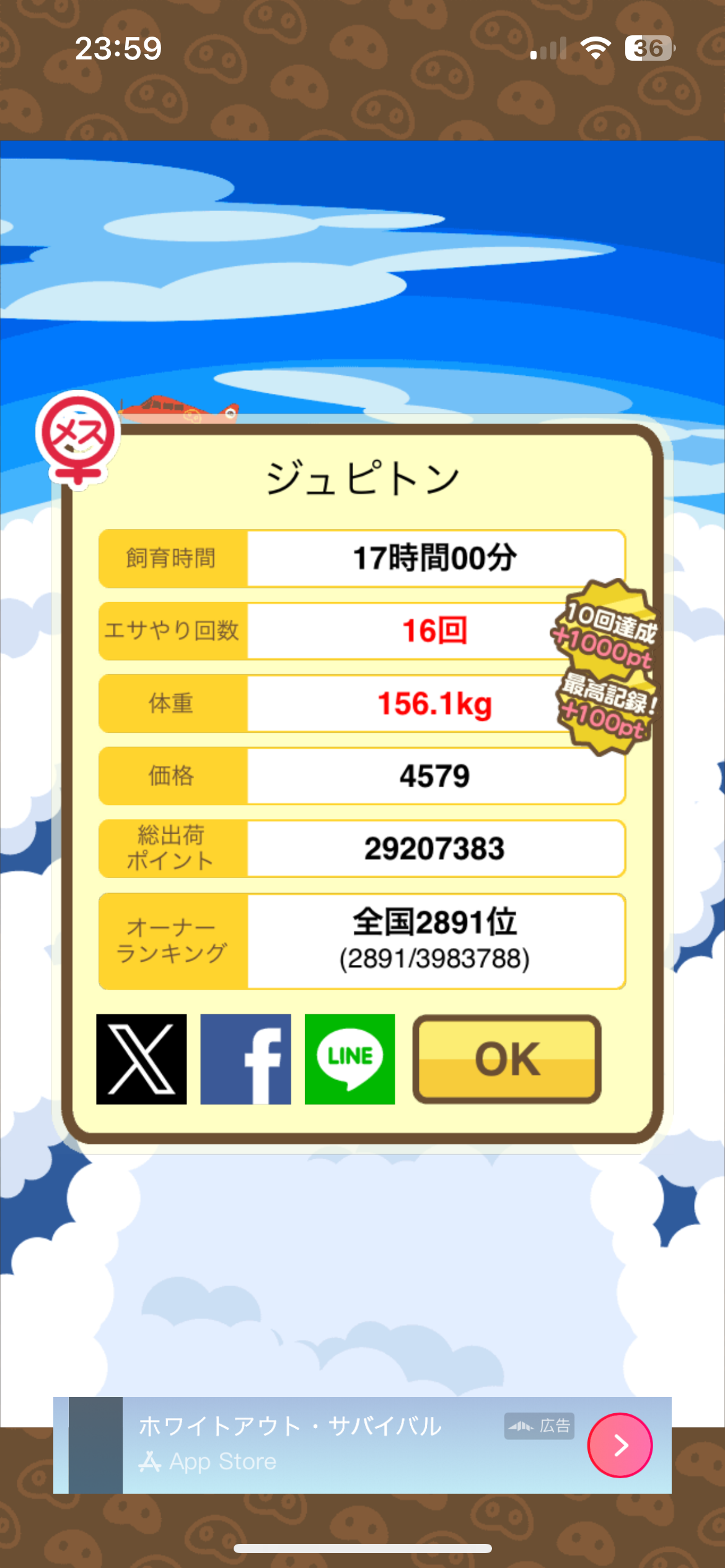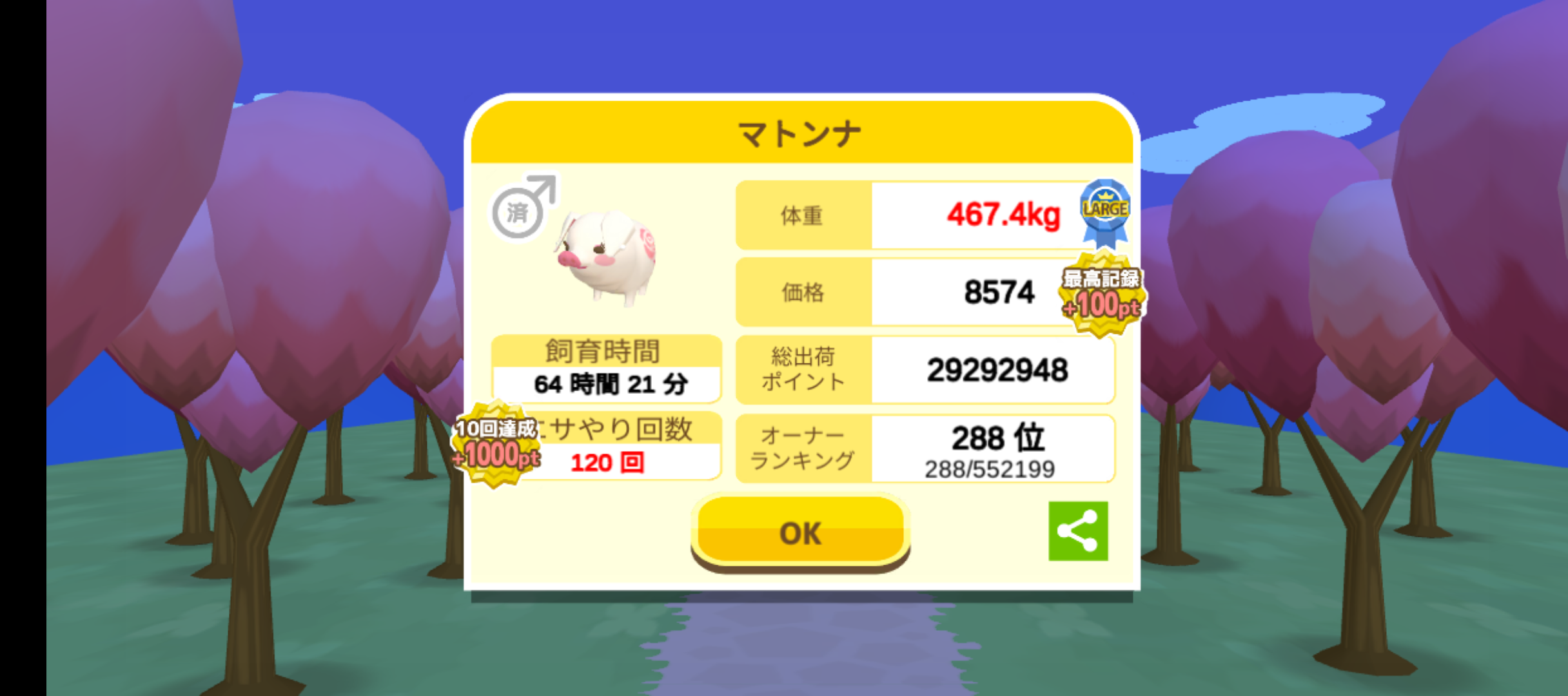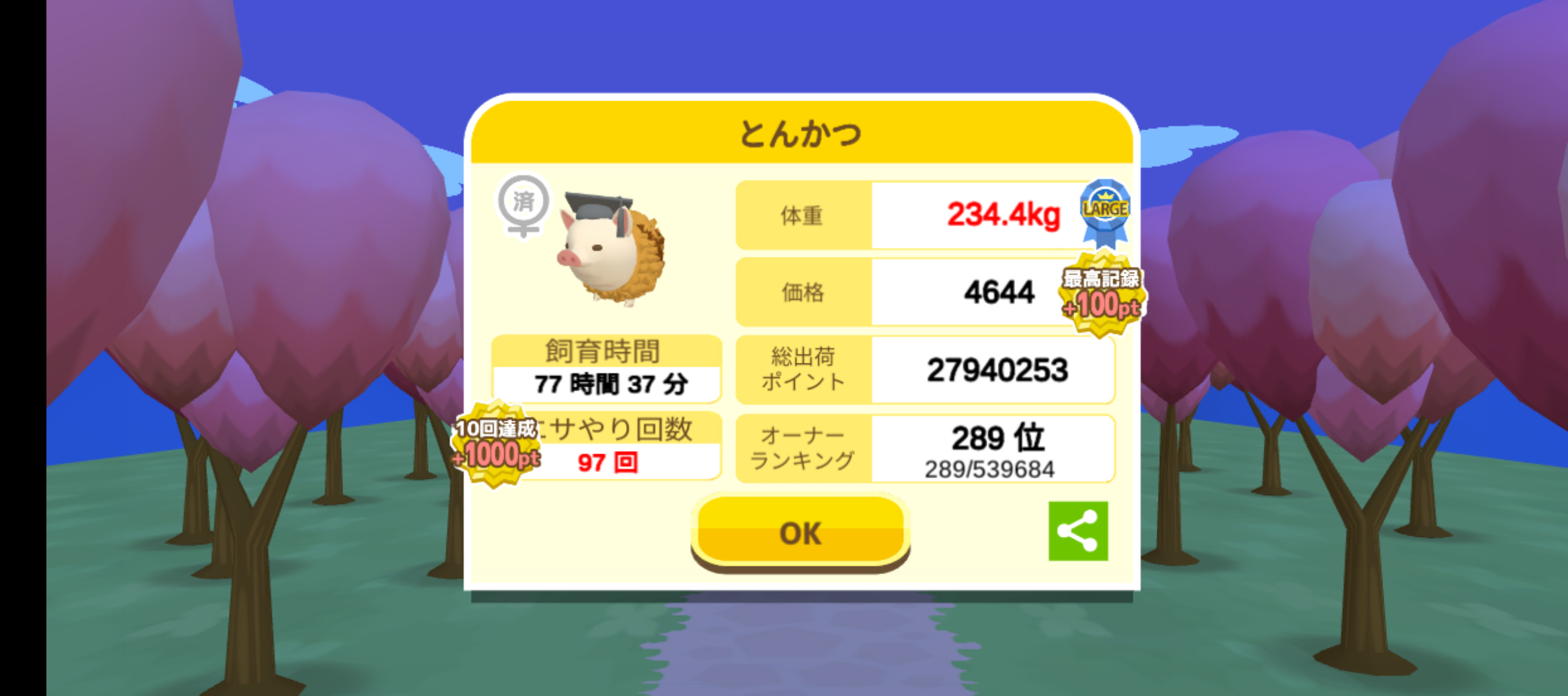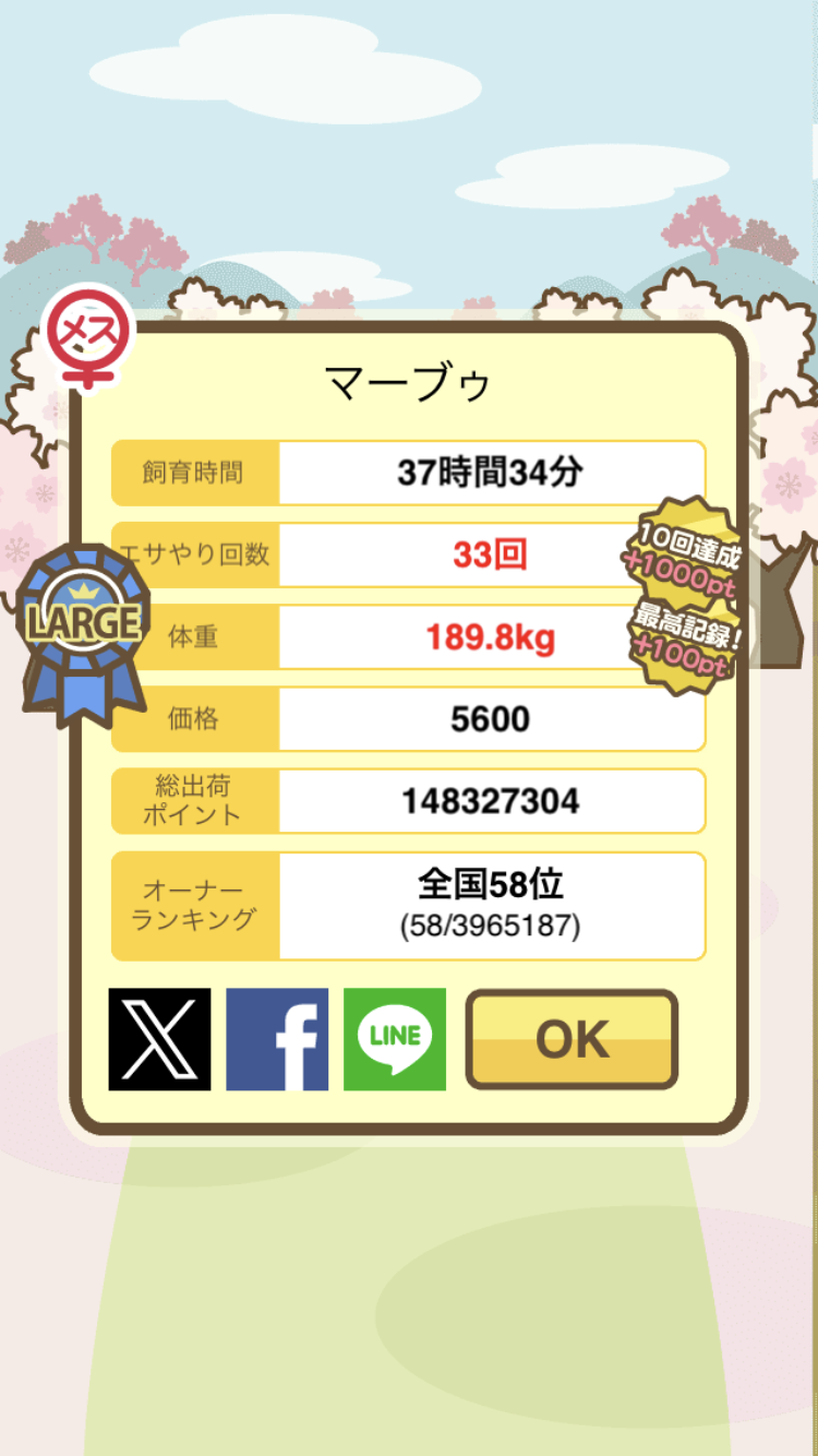 体重の変化:47.9kg ⇒ 288.7kg