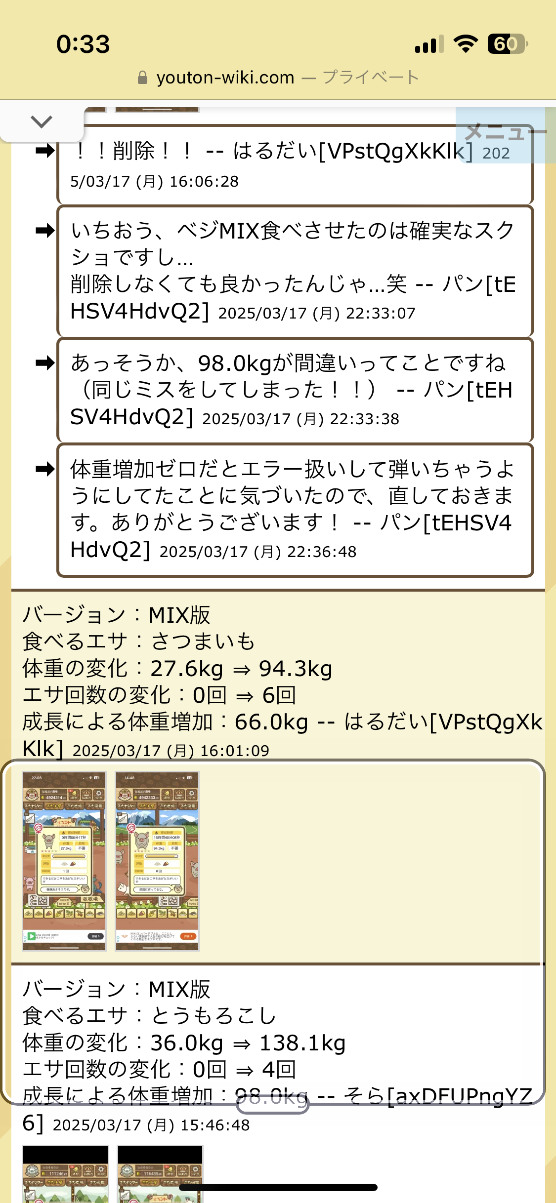 成長による体重増加:98.0kg -- はるだい[VPstQgXkKlk] 2025/03/16 (日) 15:44:09