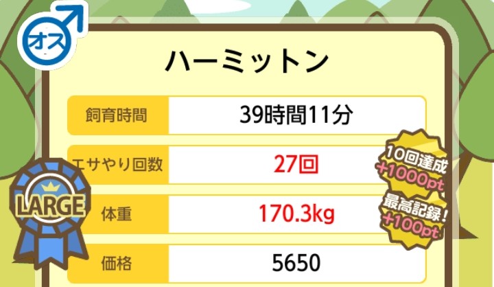 体重の変化:27.2kg ⇒ 165.2kg