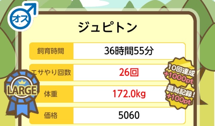 体重の変化:26.0kg ⇒ 164.4kg