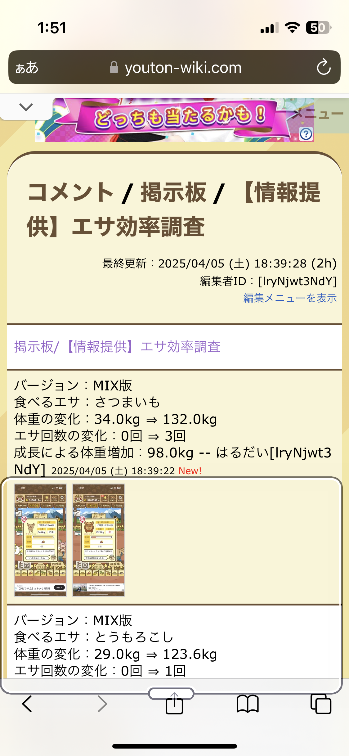 皆さんいつもご報告ありがとうございます!! -- パン[tEHSV4HdvQ2] 2025/09/21 (日) 20:45:37