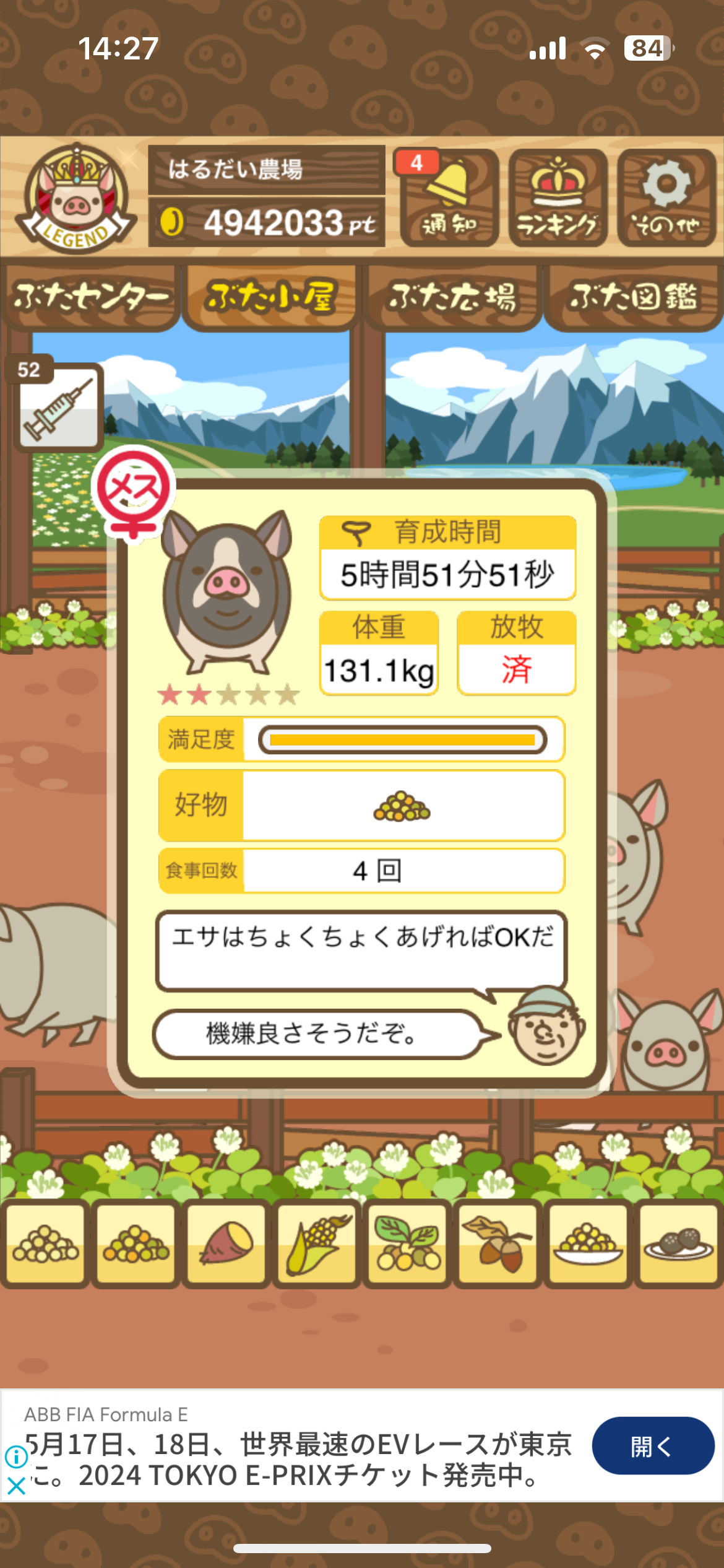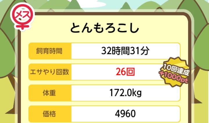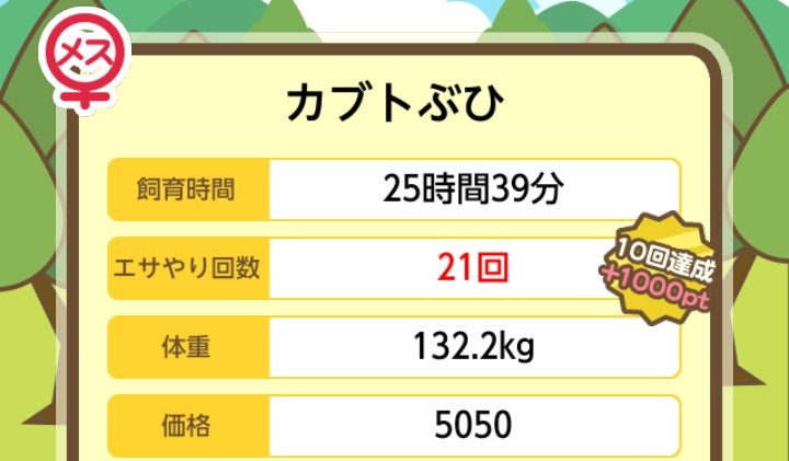 エサ回数の変化:0回 ⇒ 52回