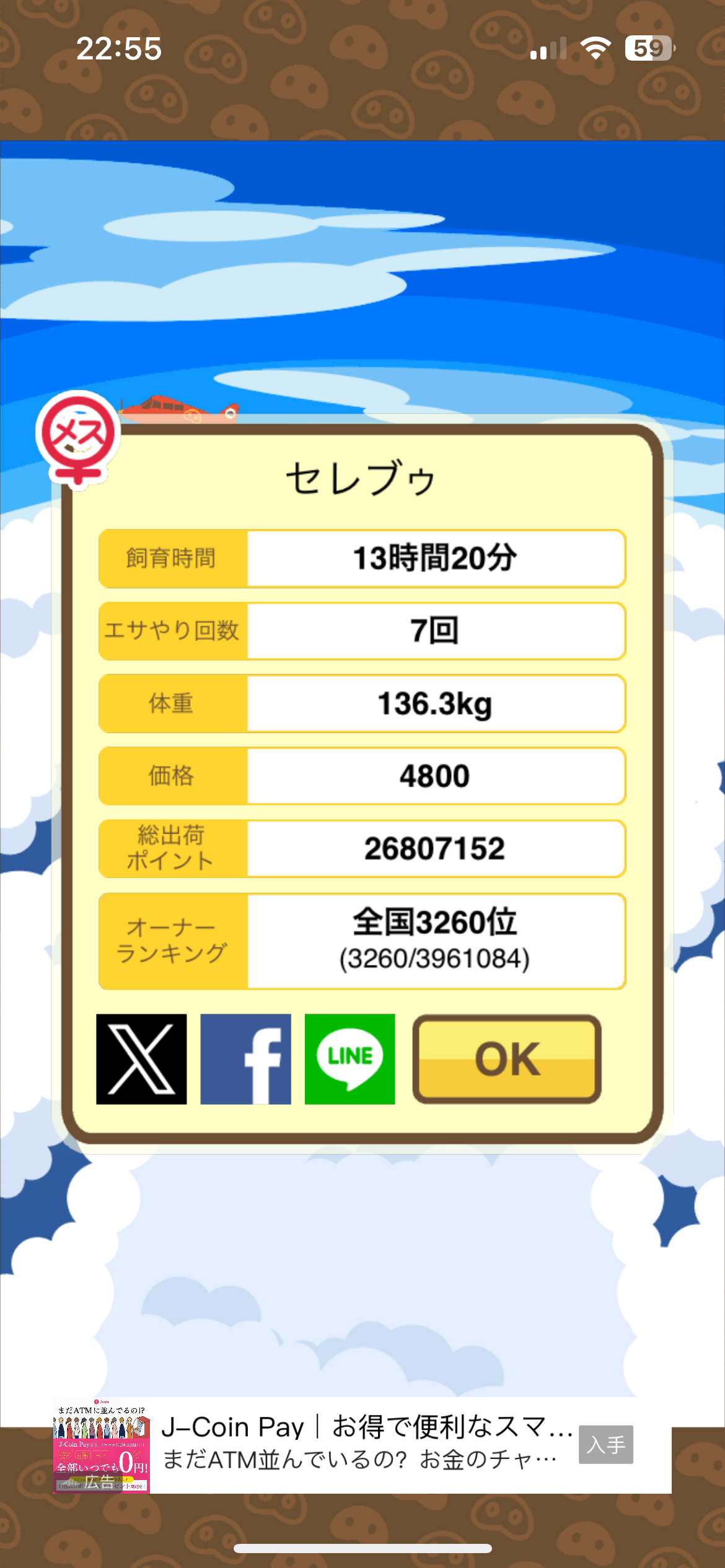 エサ回数の変化:0回 ⇒ 55回