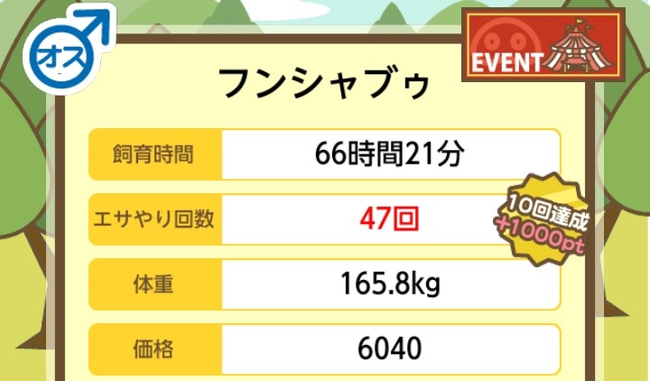 エサ回数の変化:0回 ⇒ 47回