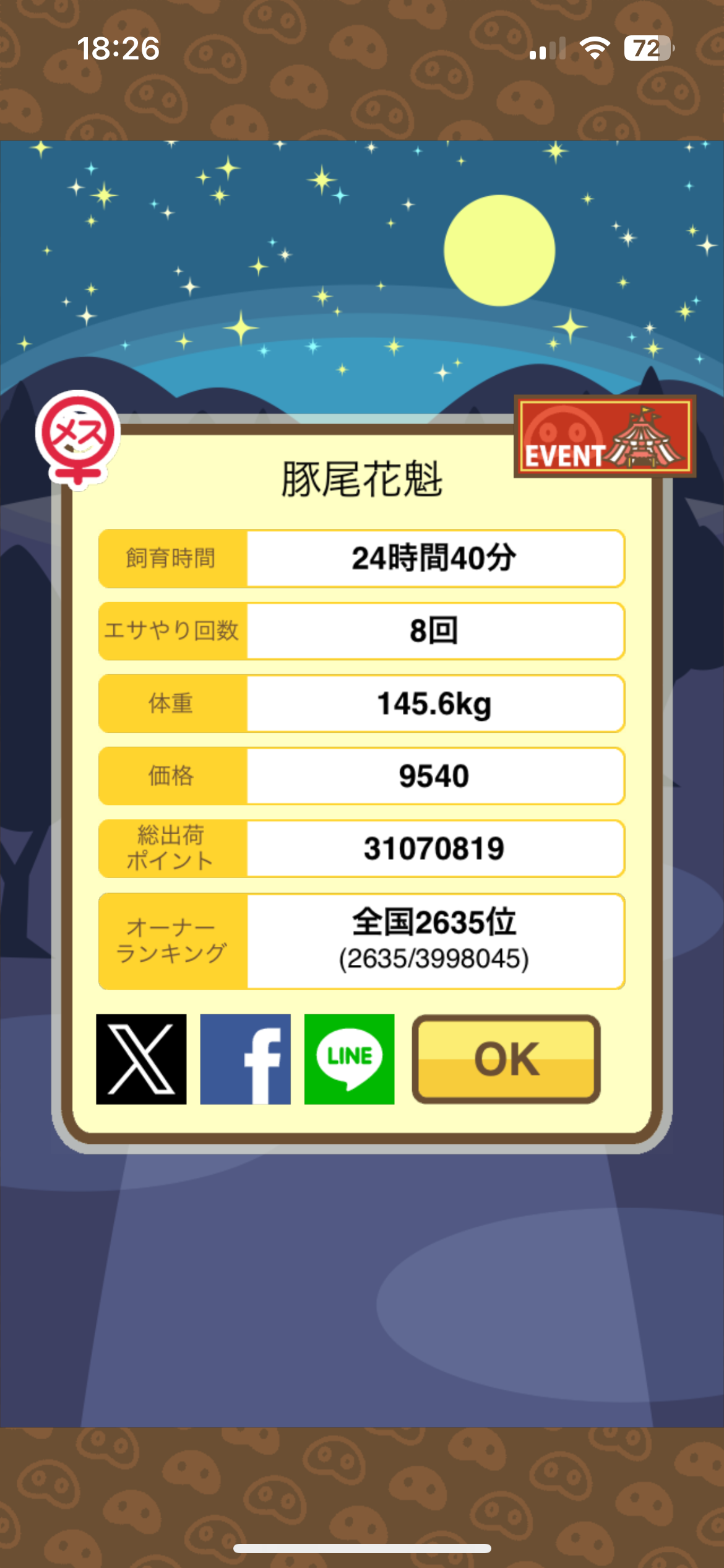 エサ回数の変化:0回 ⇒ 18回