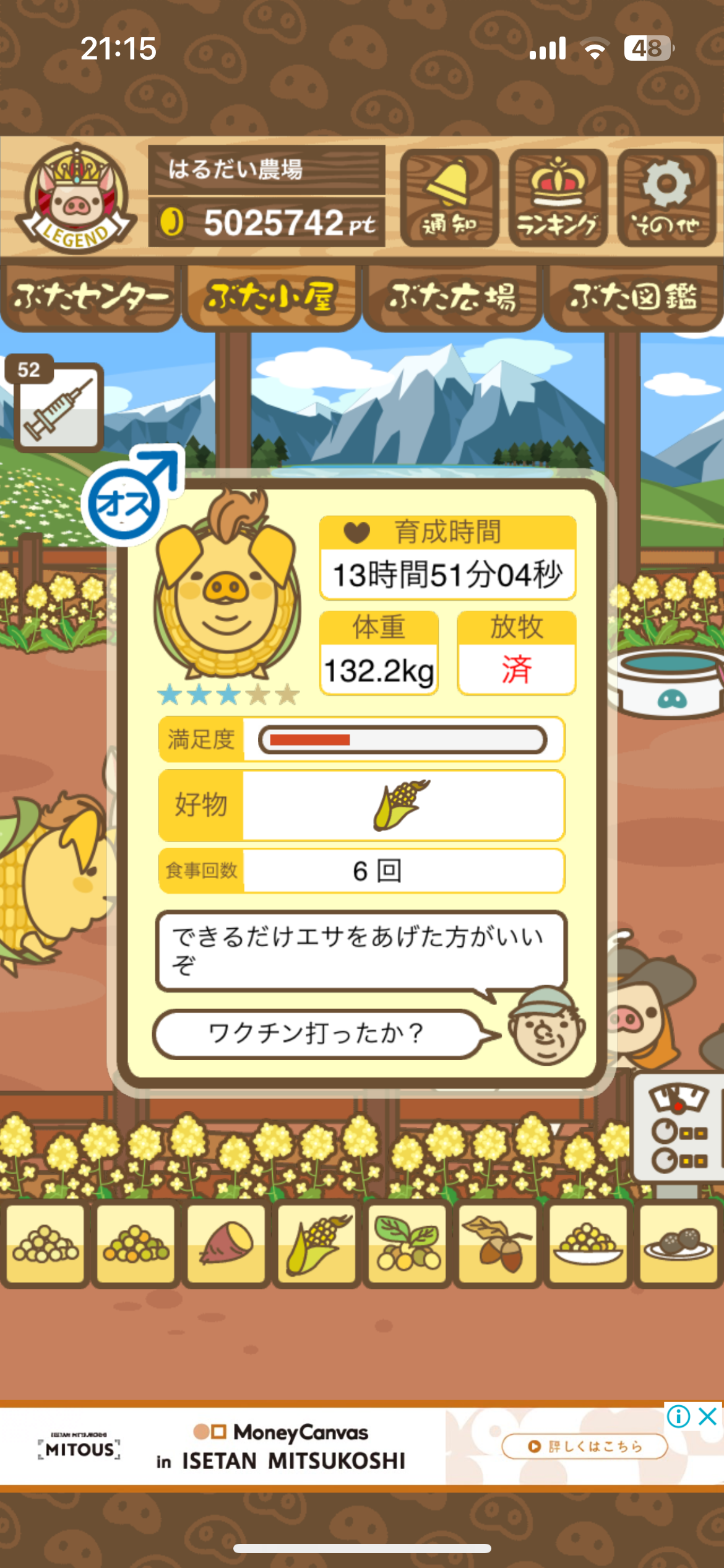 食べるエサ:とうもろこし