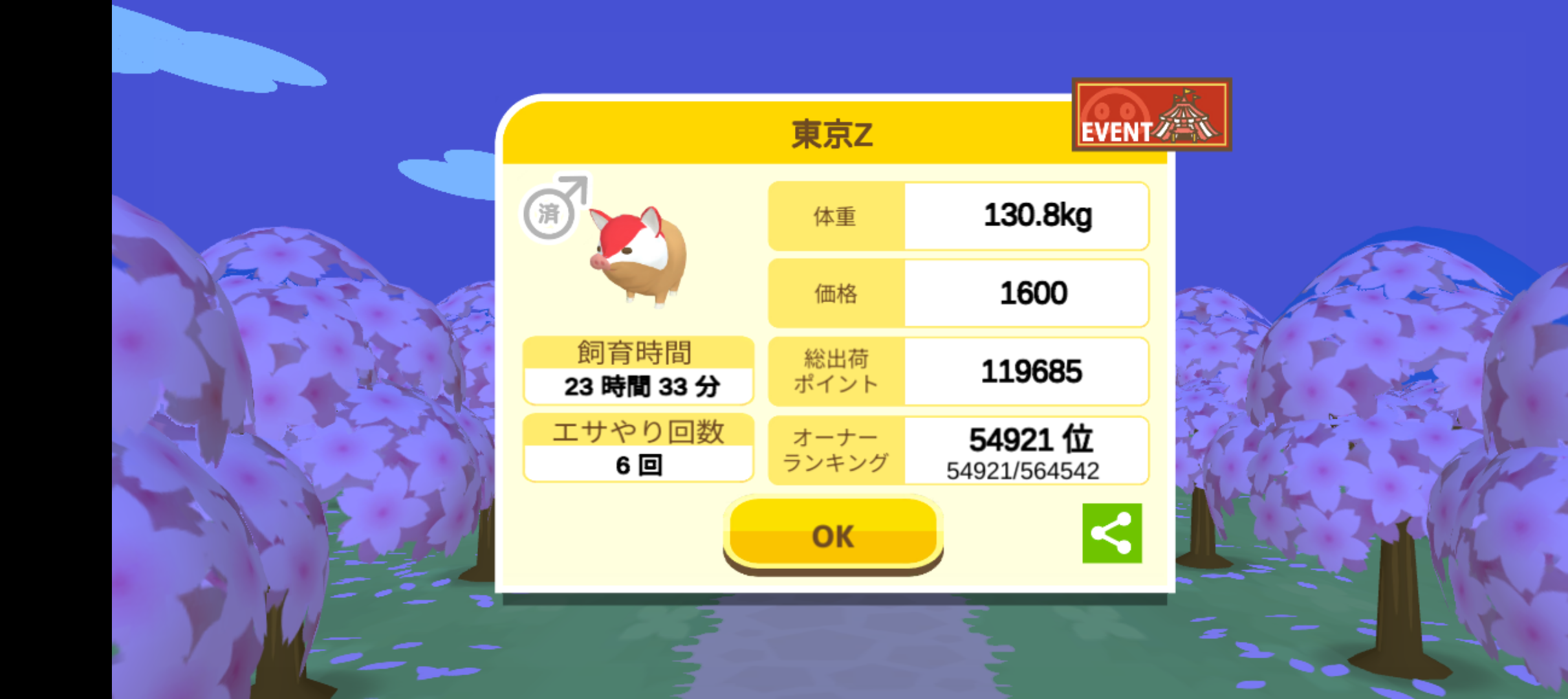 エサ回数の変化:0回 ⇒ 33回