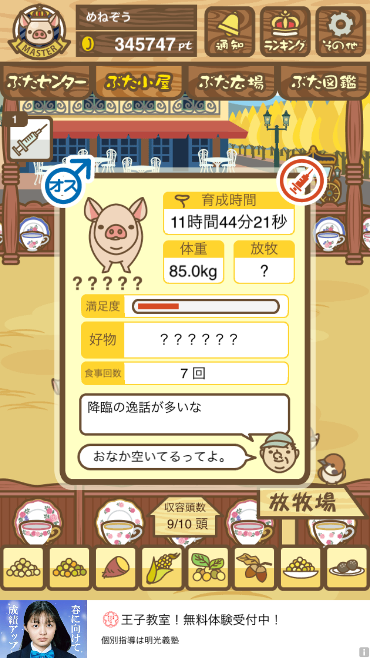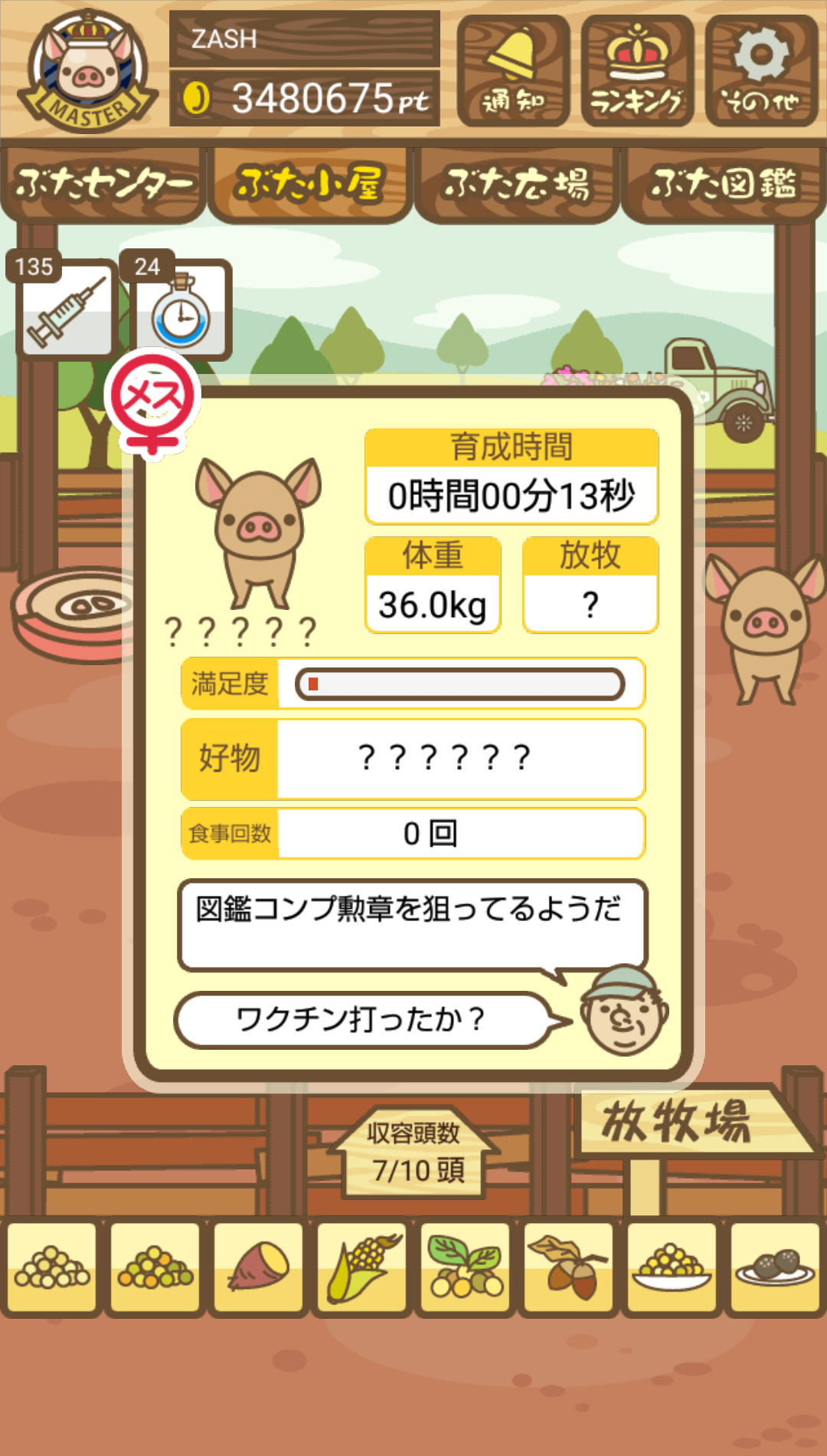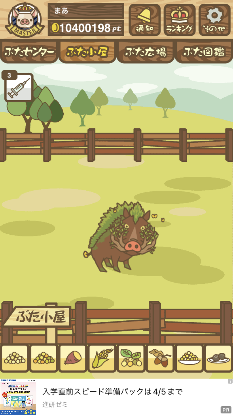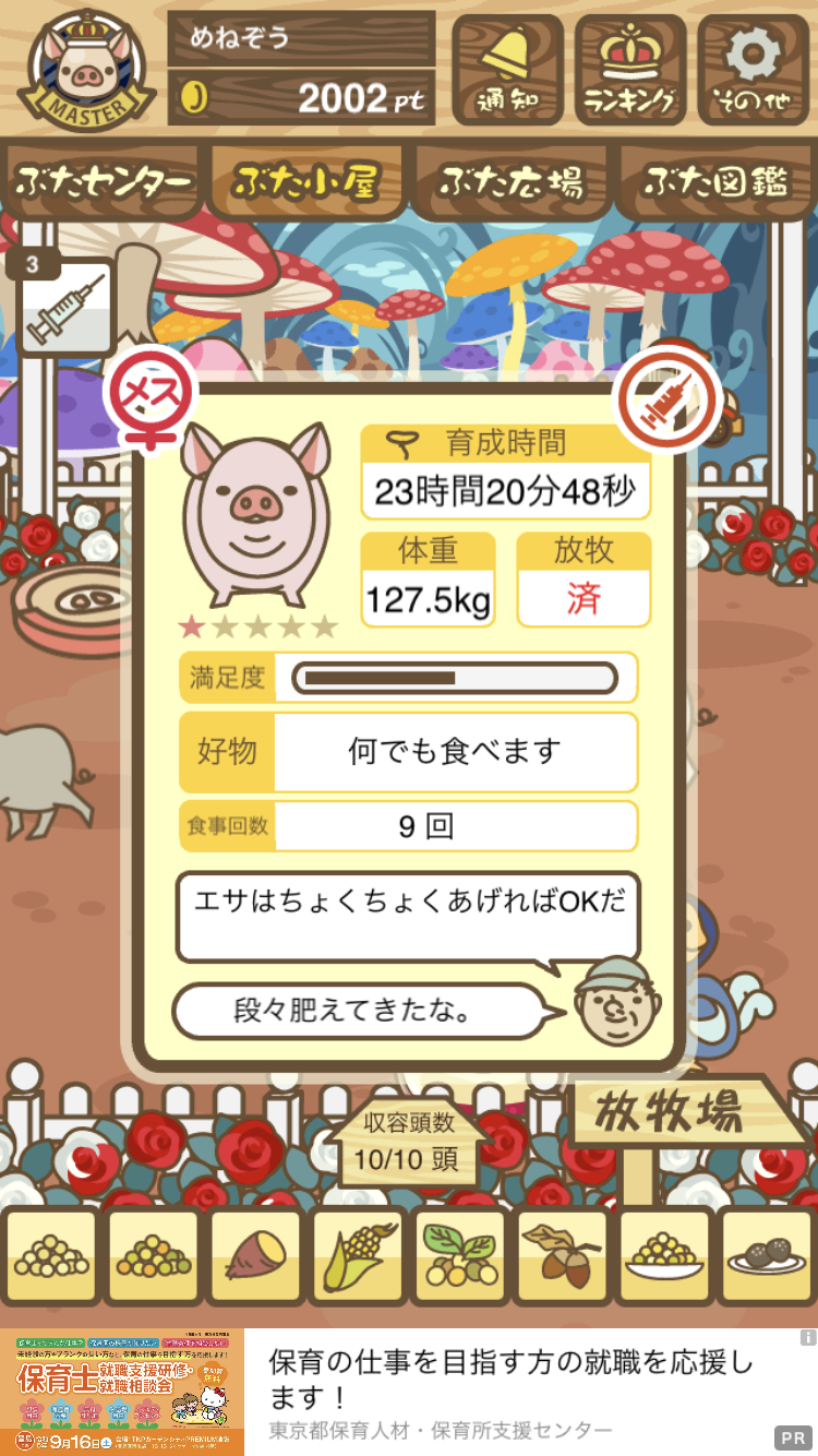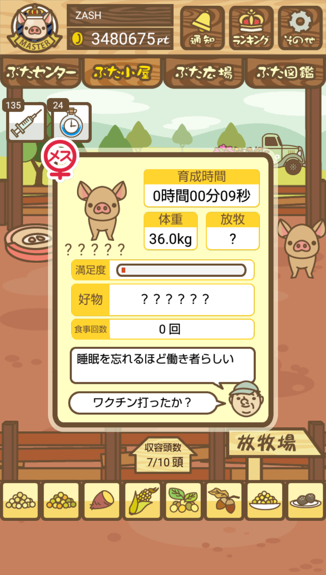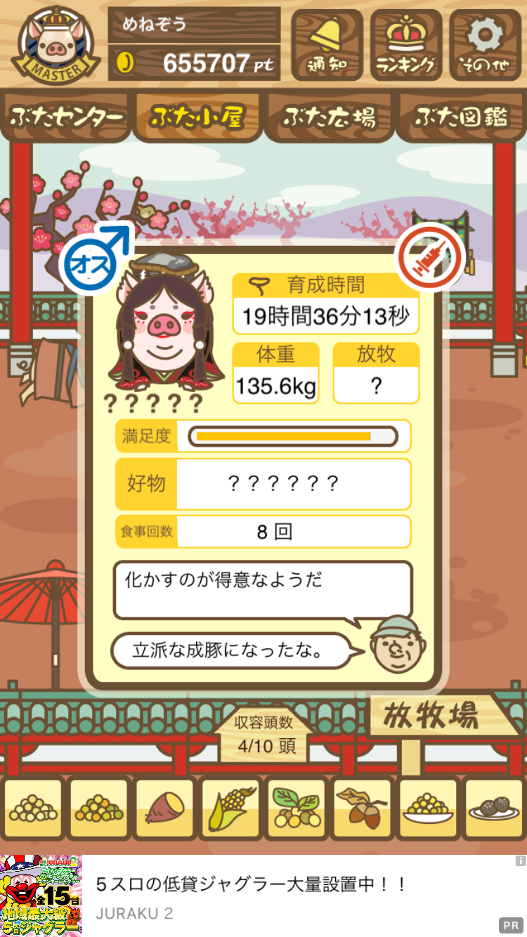- また、エイブゥ....エサ雑穀16回、エサやりの度に放牧場行き来、16回エサやり後他の豚を放牧場へ....下の成功例の通り育成したつもりですが、何がダメだったんでしょう?掃除豚も排除しないといけないのでしょうか?