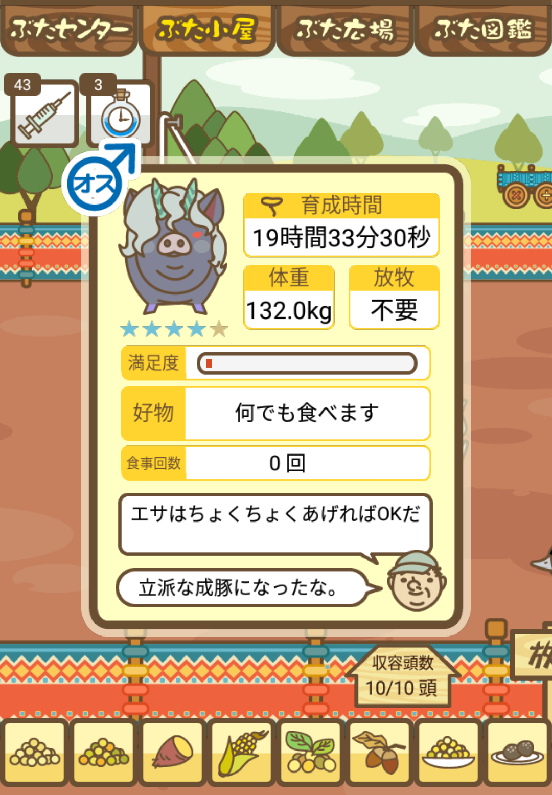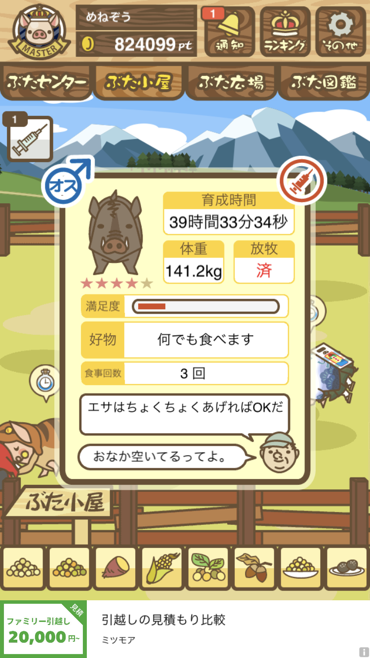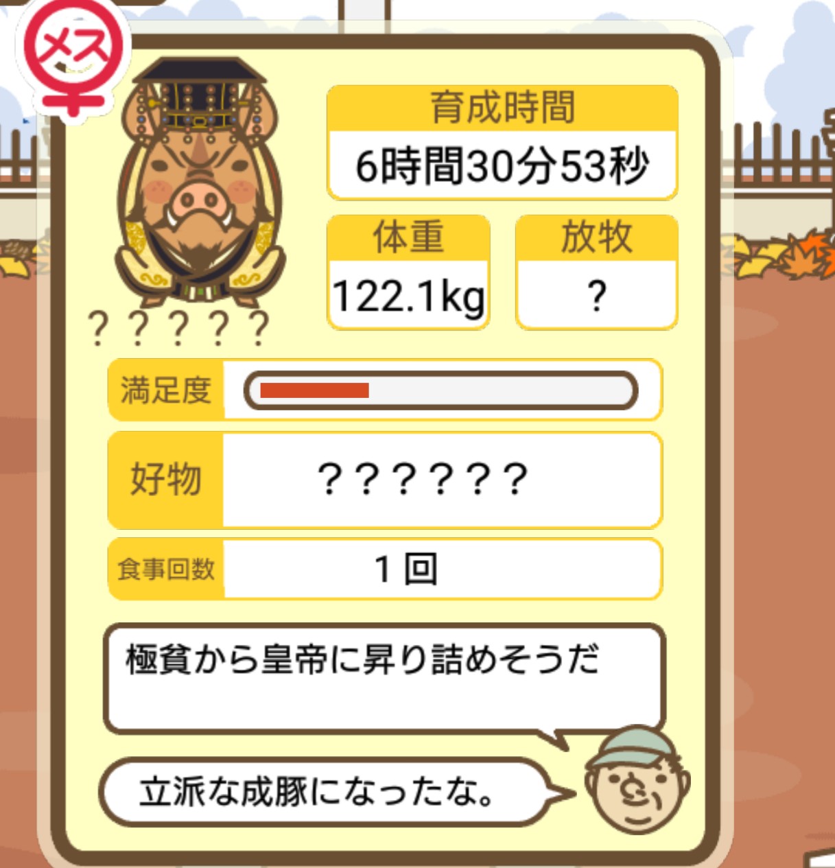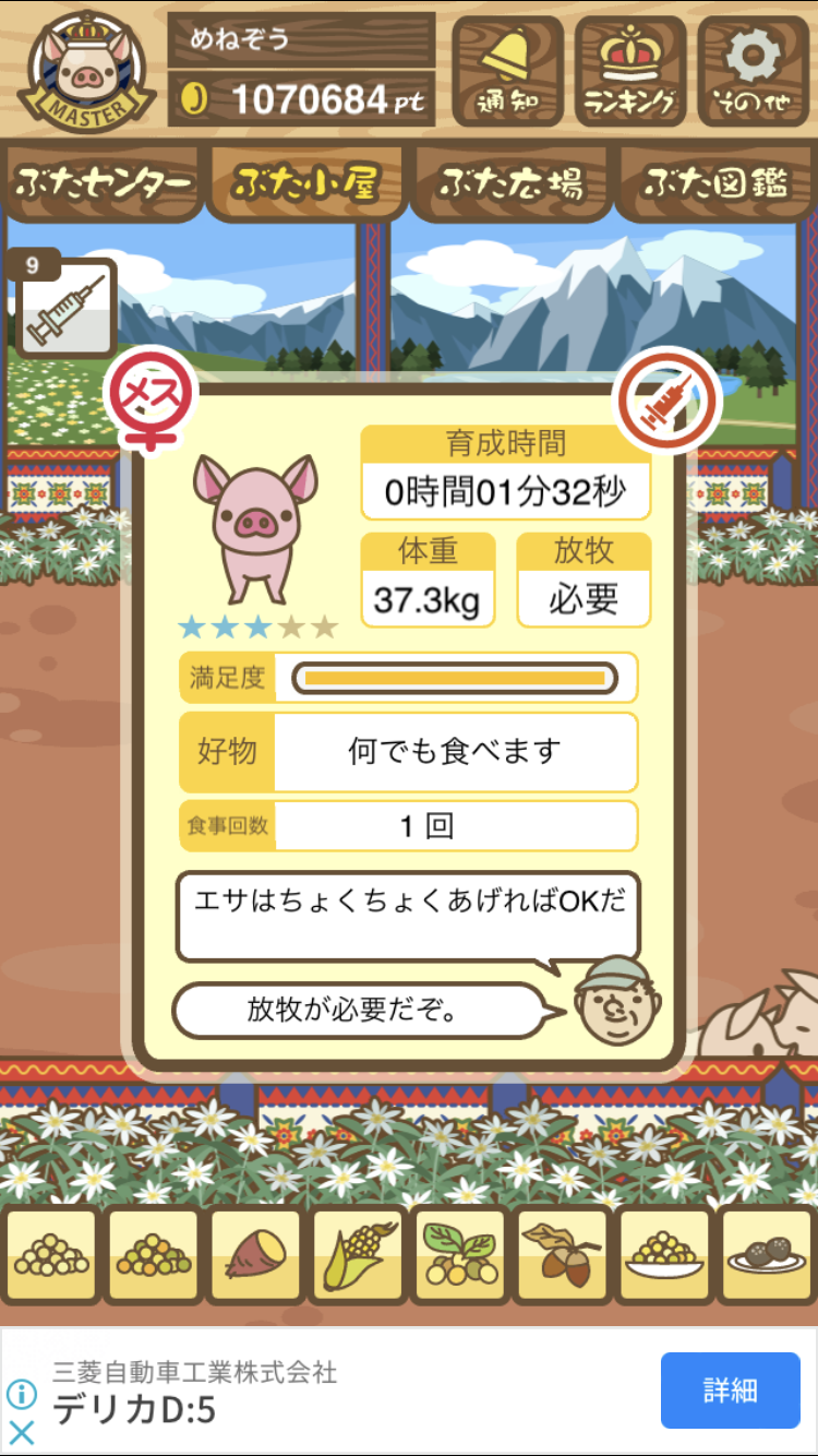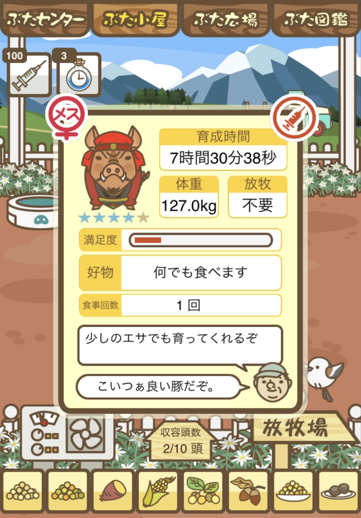 - また、エイブゥ....エサ雑穀16回、エサやりの度に放牧場行き来、16回エサやり後他の豚を放牧場へ....下の成功例の通り育成したつもりですが、何がダメだったんでしょう?掃除豚も排除しないといけないのでしょうか?