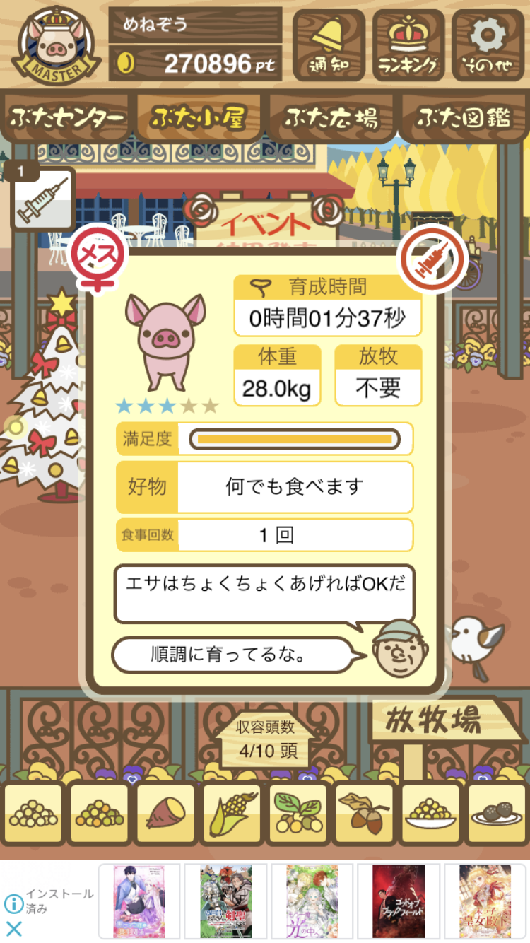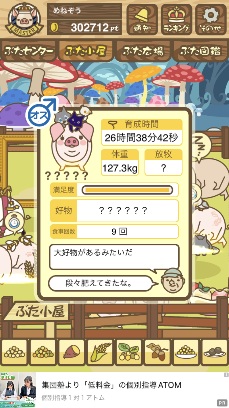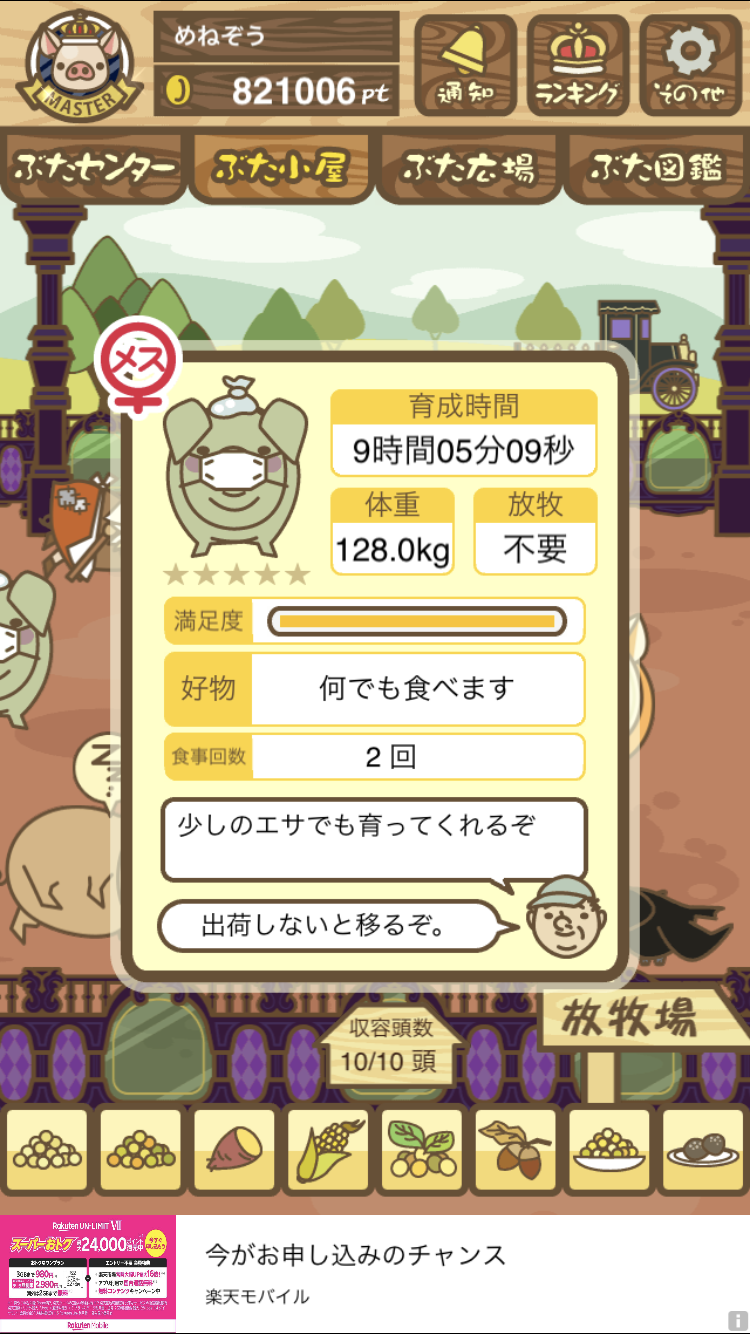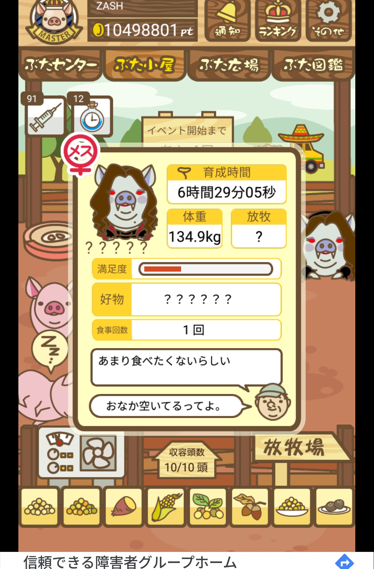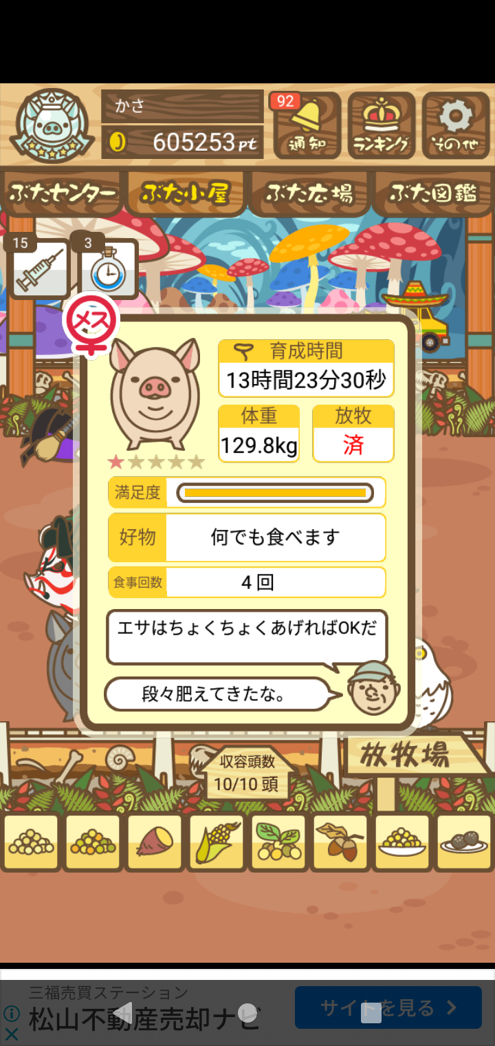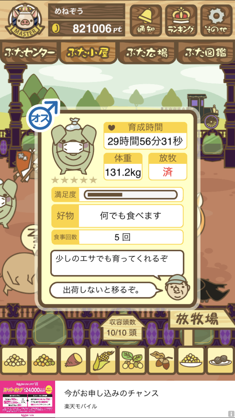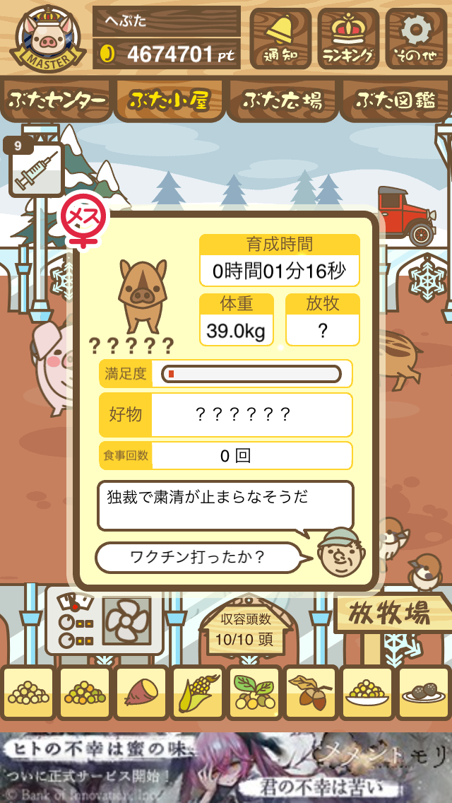 - また、エイブゥ....エサ雑穀16回、エサやりの度に放牧場行き来、16回エサやり後他の豚を放牧場へ....下の成功例の通り育成したつもりですが、何がダメだったんでしょう?掃除豚も排除しないといけないのでしょうか?
