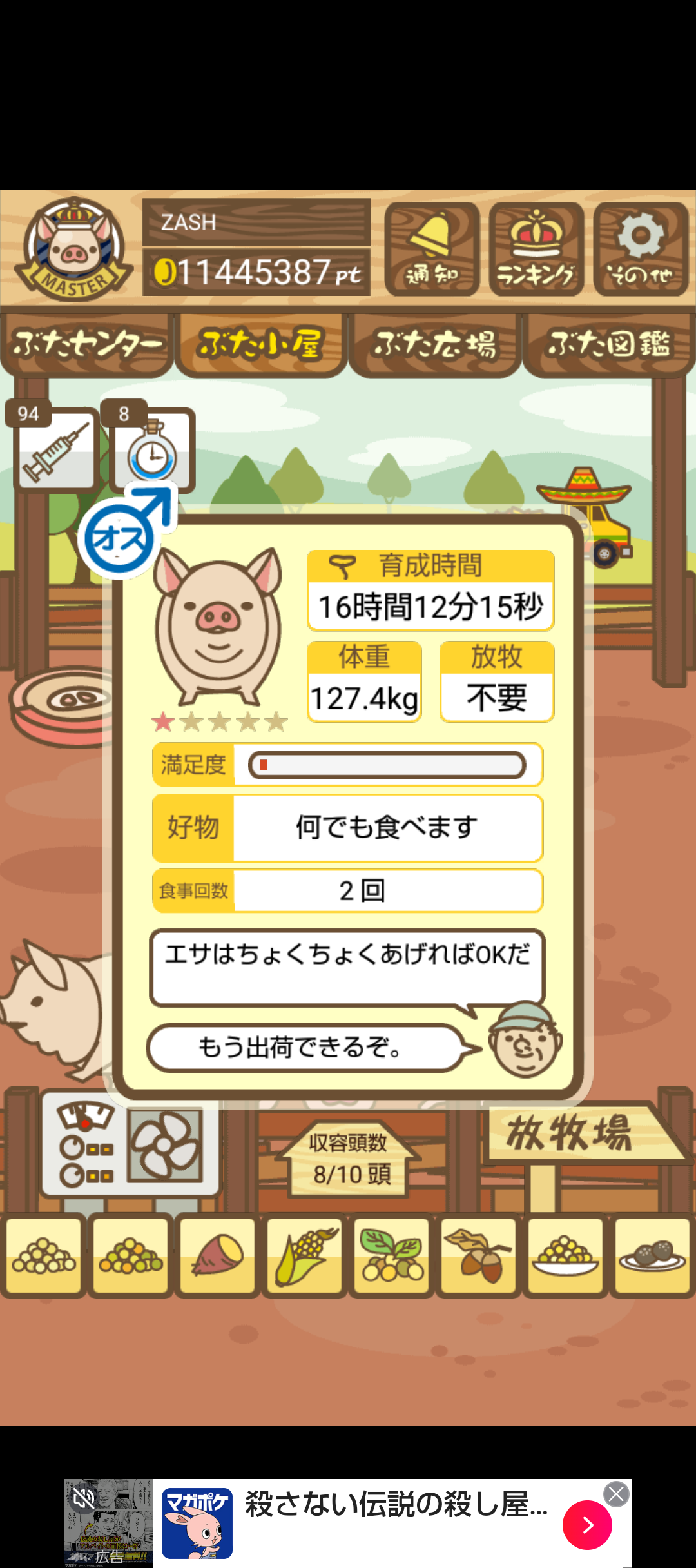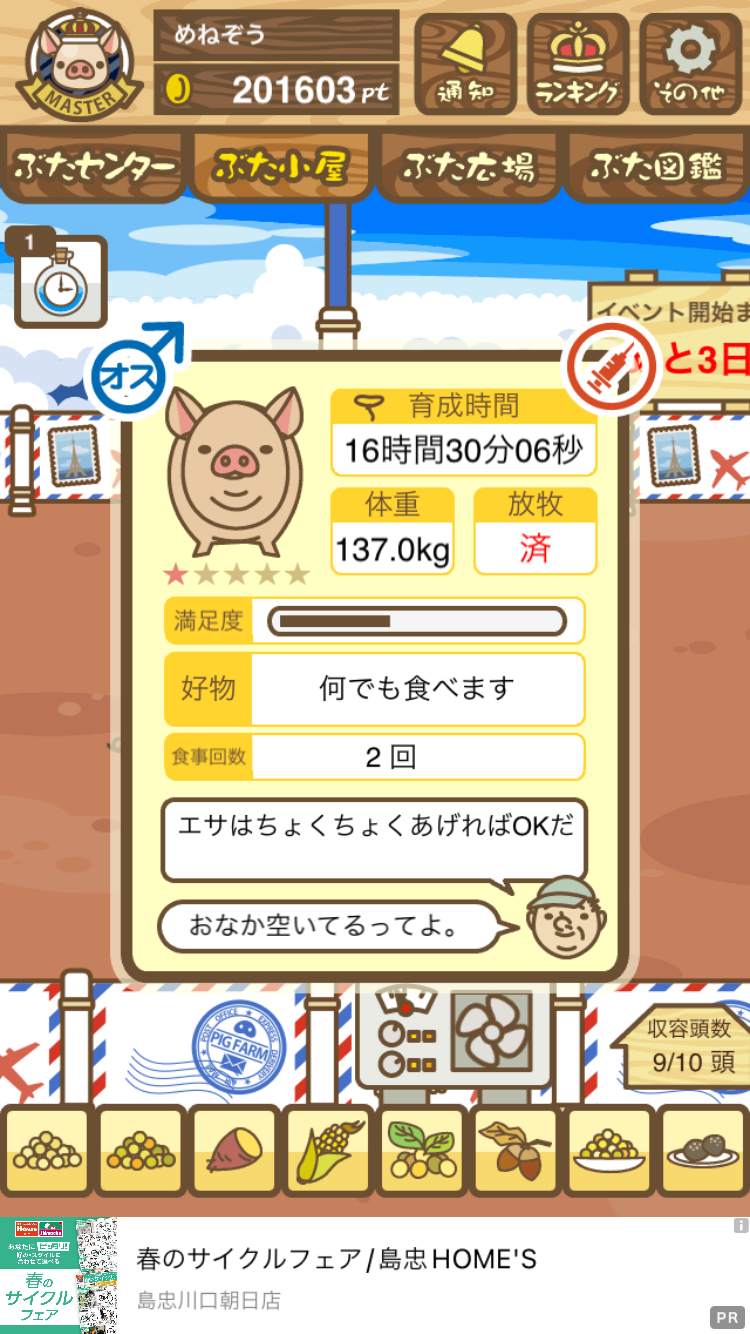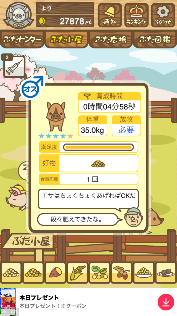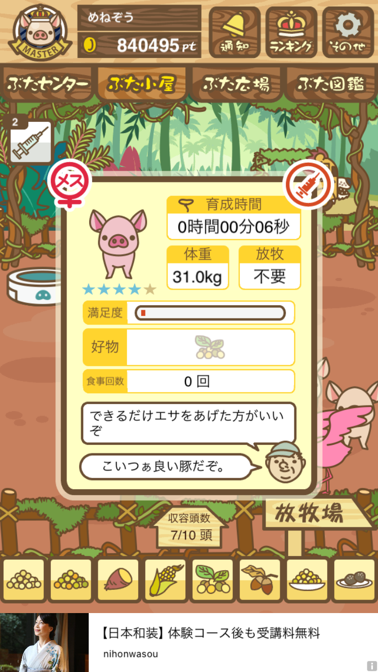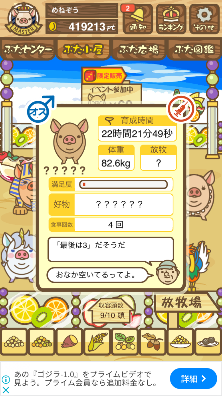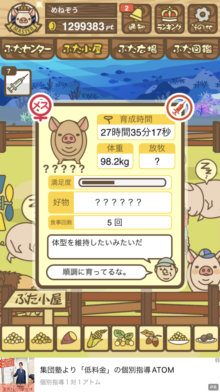 - また、エイブゥ....エサ雑穀16回、エサやりの度に放牧場行き来、16回エサやり後他の豚を放牧場へ....下の成功例の通り育成したつもりですが、何がダメだったんでしょう?掃除豚も排除しないといけないのでしょうか?
