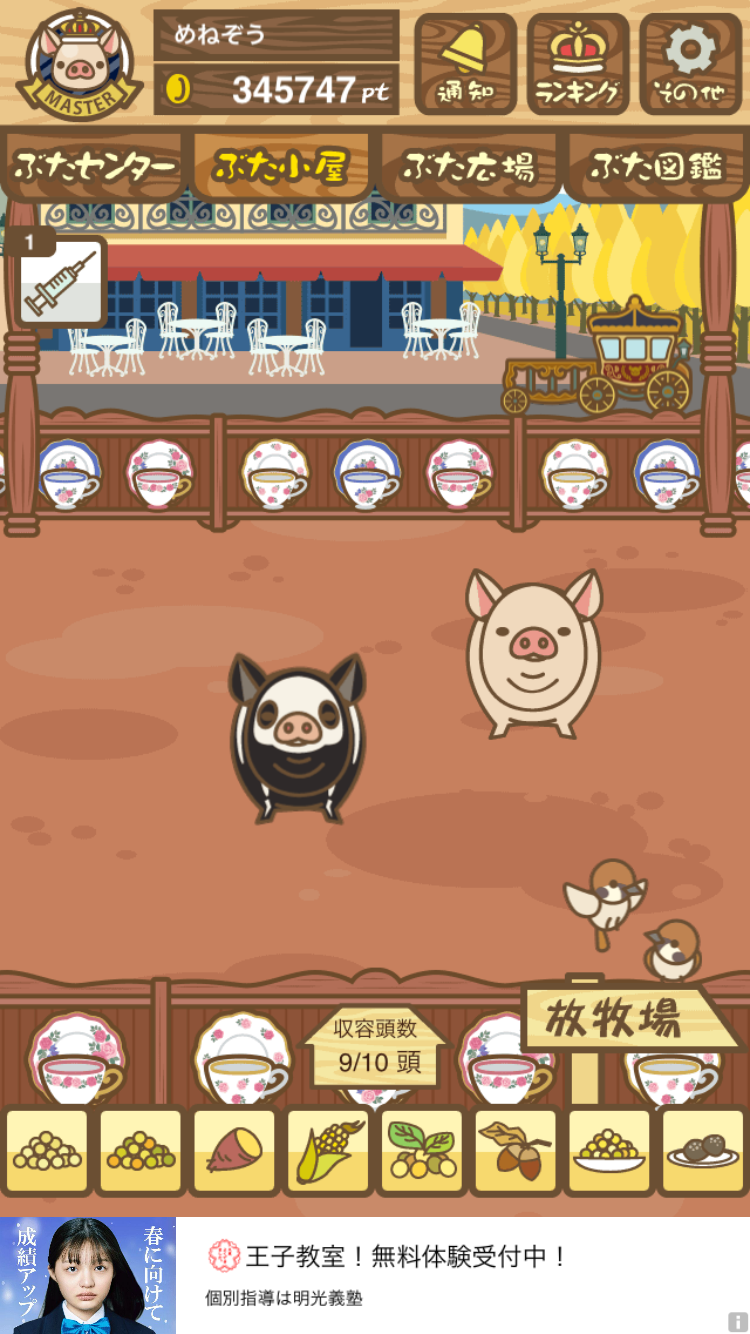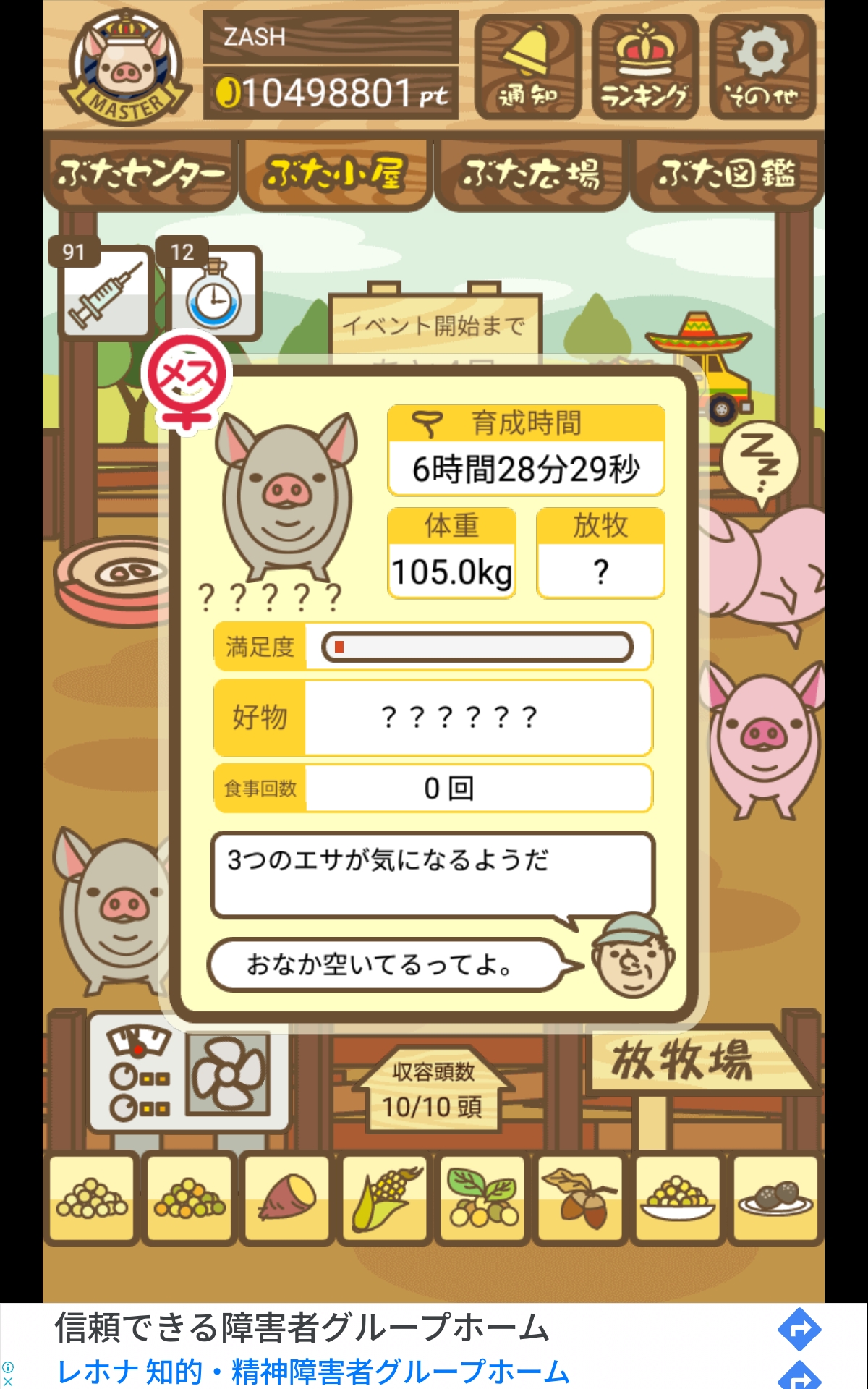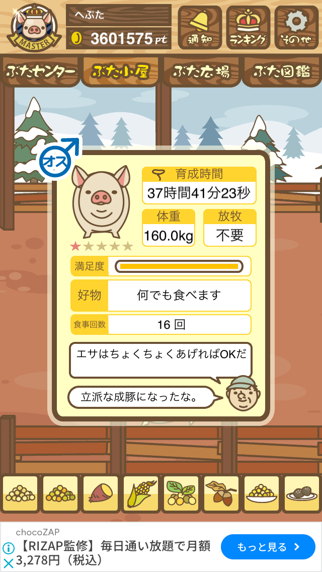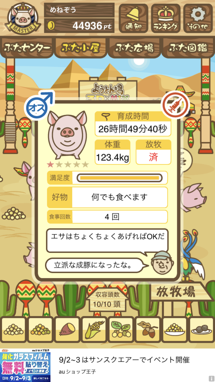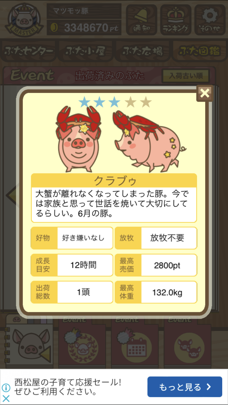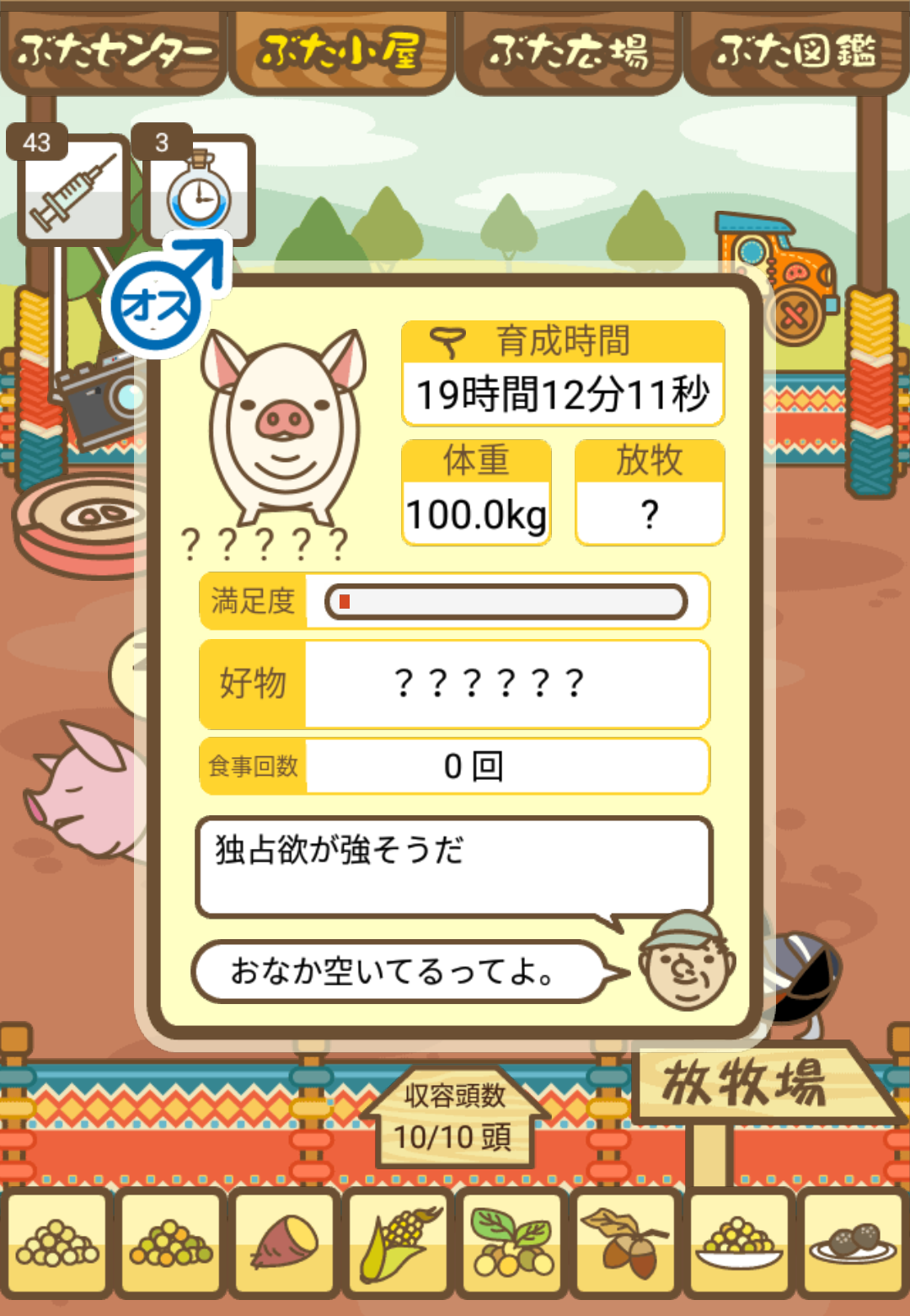 - また、エイブゥ....エサ雑穀16回、エサやりの度に放牧場行き来、16回エサやり後他の豚を放牧場へ....下の成功例の通り育成したつもりですが、何がダメだったんでしょう?掃除豚も排除しないといけないのでしょうか?