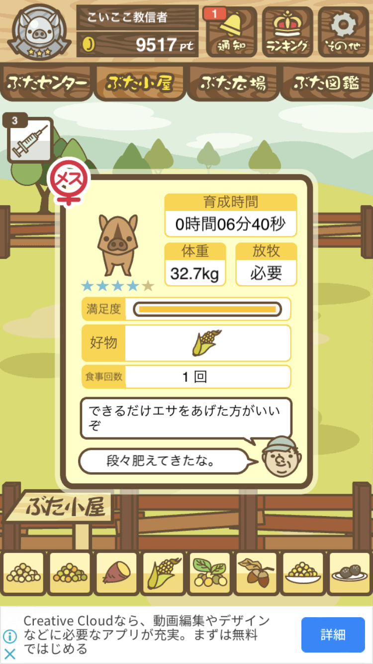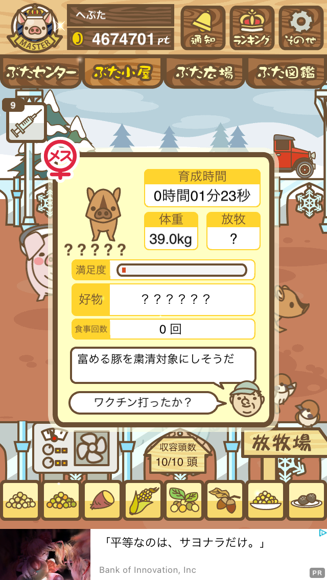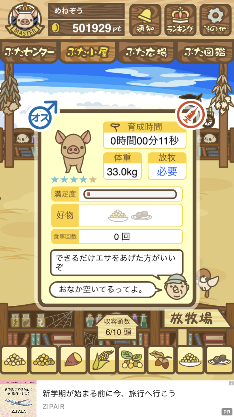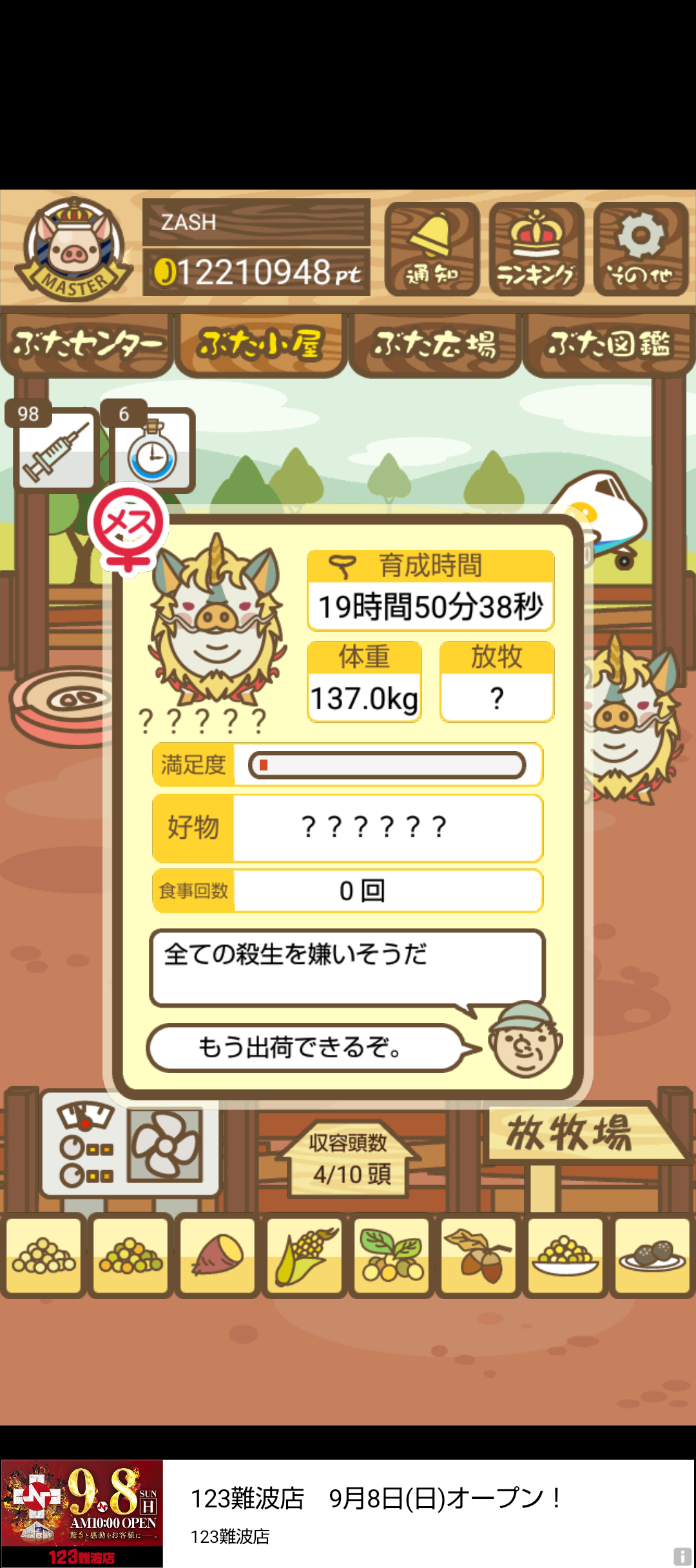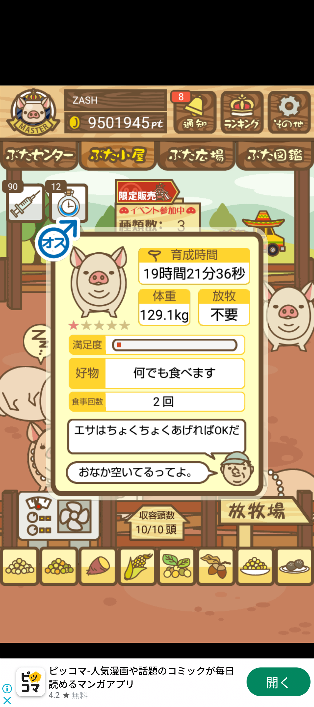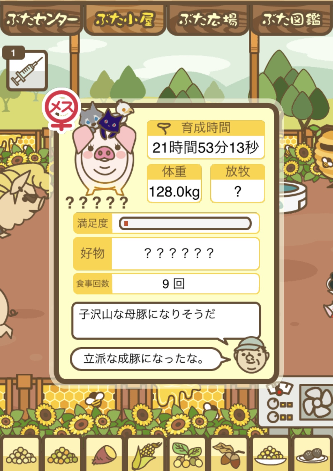 - また、エイブゥ....エサ雑穀16回、エサやりの度に放牧場行き来、16回エサやり後他の豚を放牧場へ....下の成功例の通り育成したつもりですが、何がダメだったんでしょう?掃除豚も排除しないといけないのでしょうか?