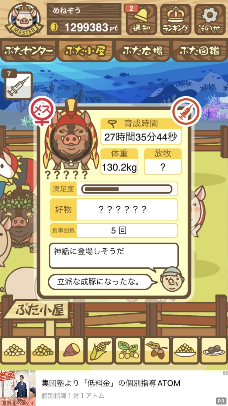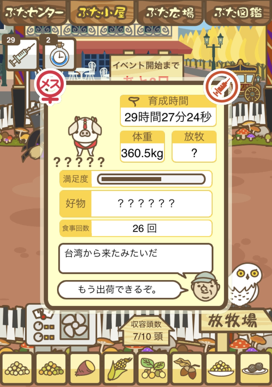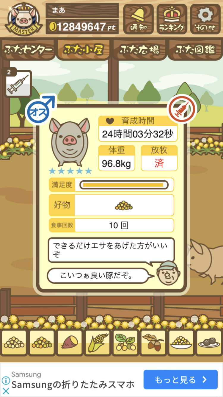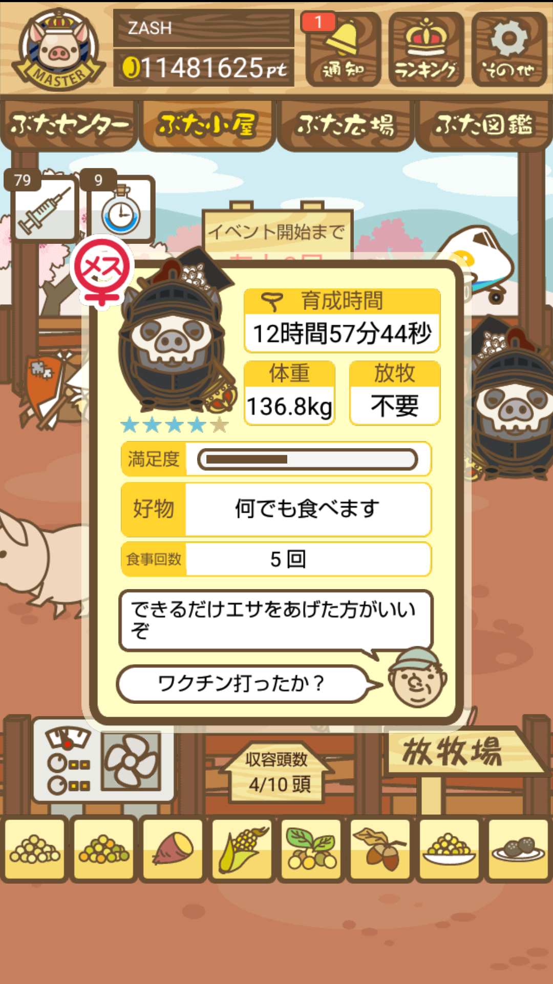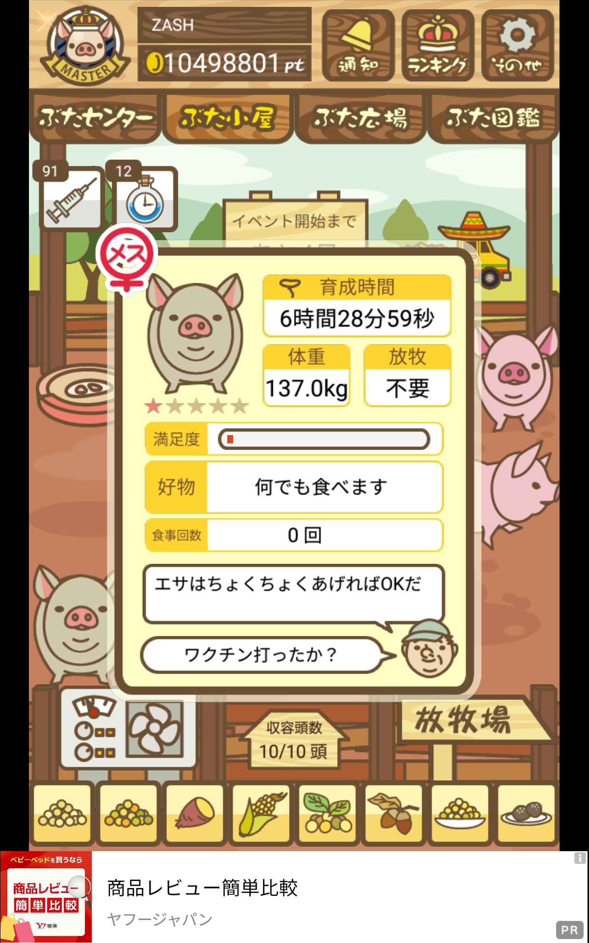 - また、エイブゥ....エサ雑穀16回、エサやりの度に放牧場行き来、16回エサやり後他の豚を放牧場へ....下の成功例の通り育成したつもりですが、何がダメだったんでしょう?掃除豚も排除しないといけないのでしょうか?