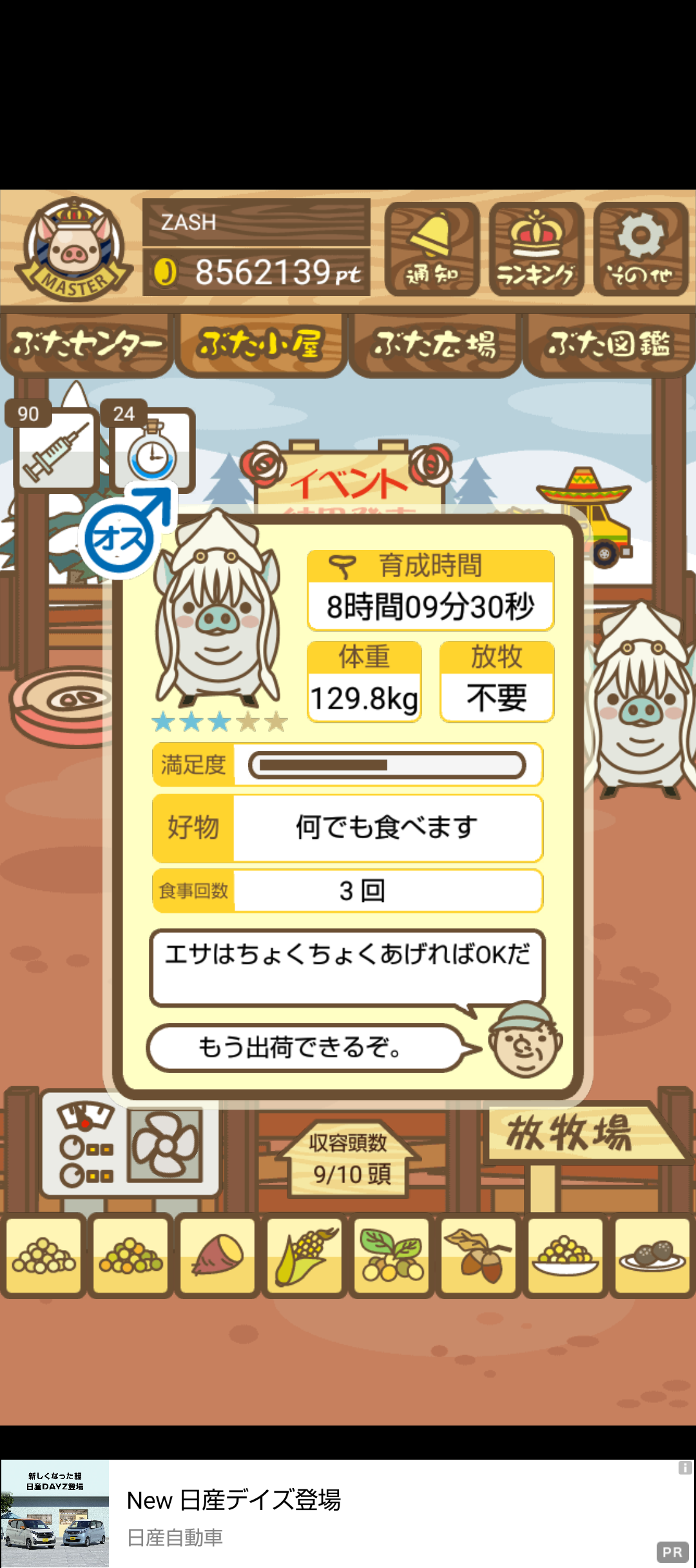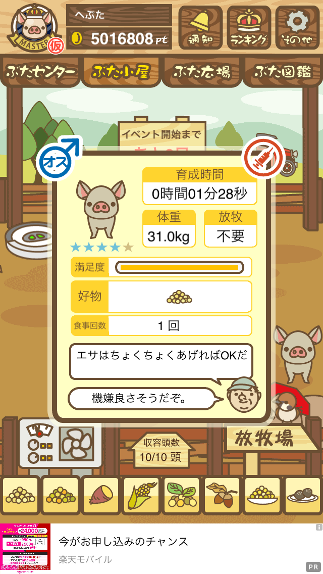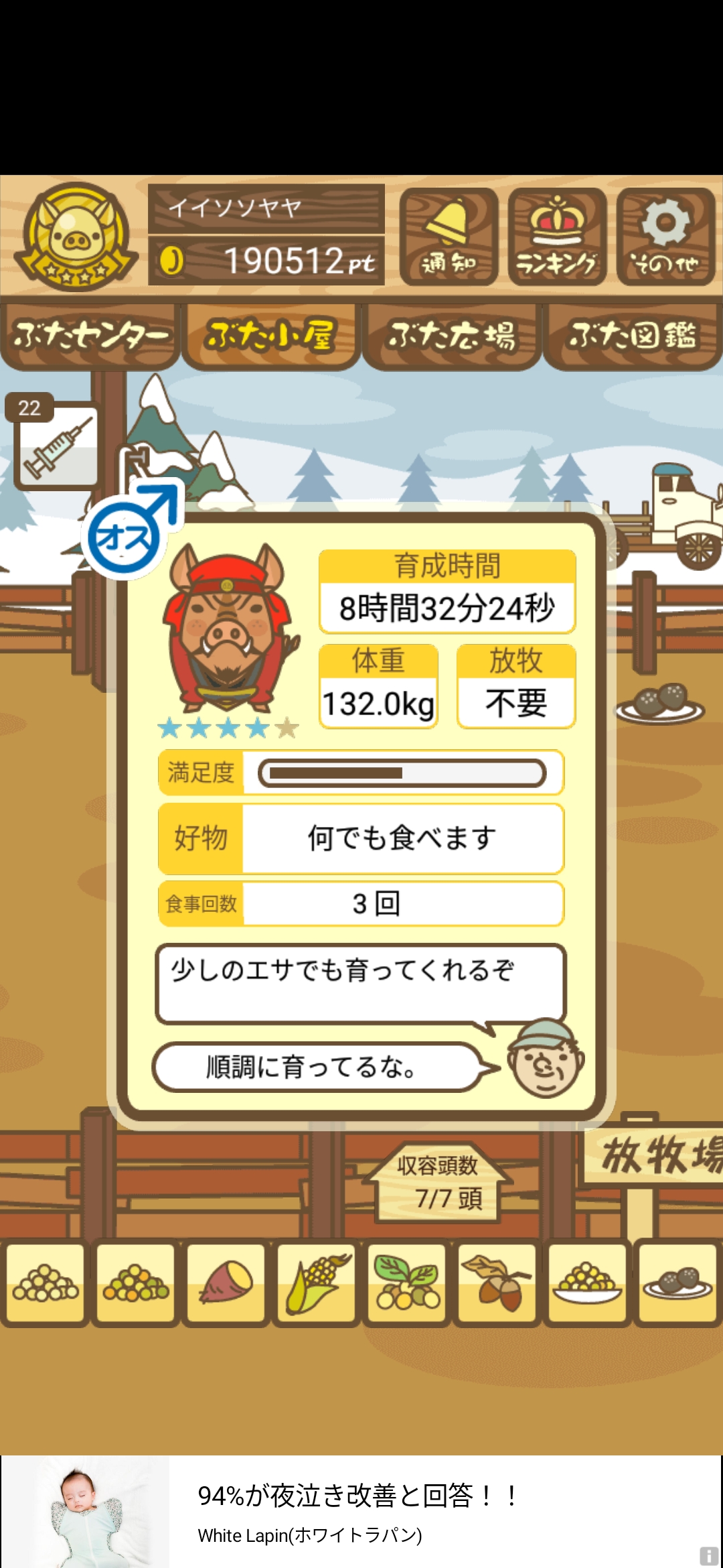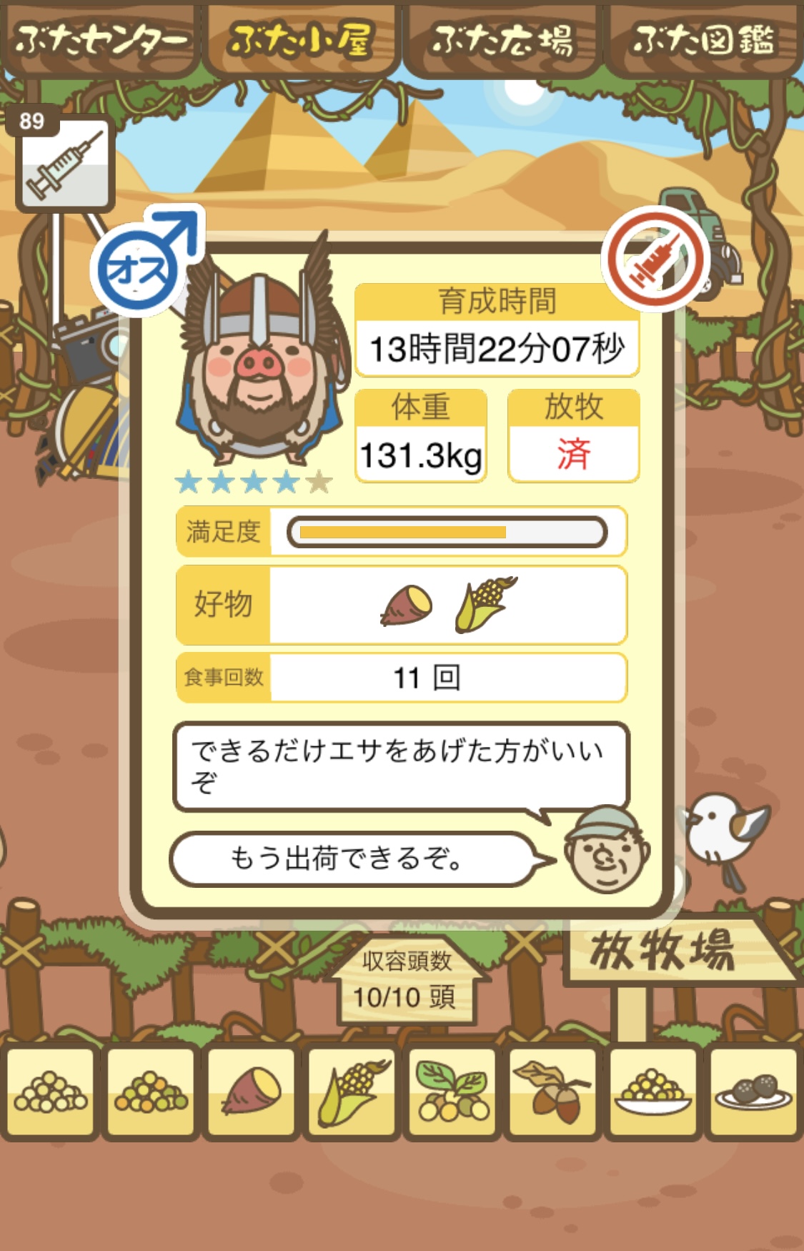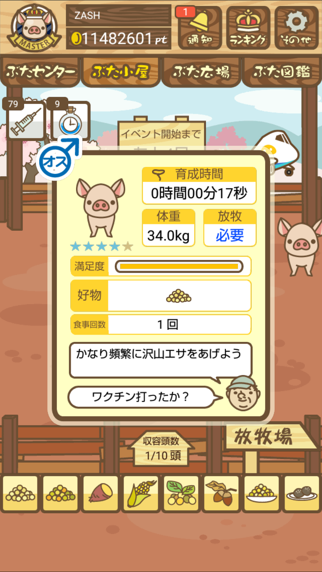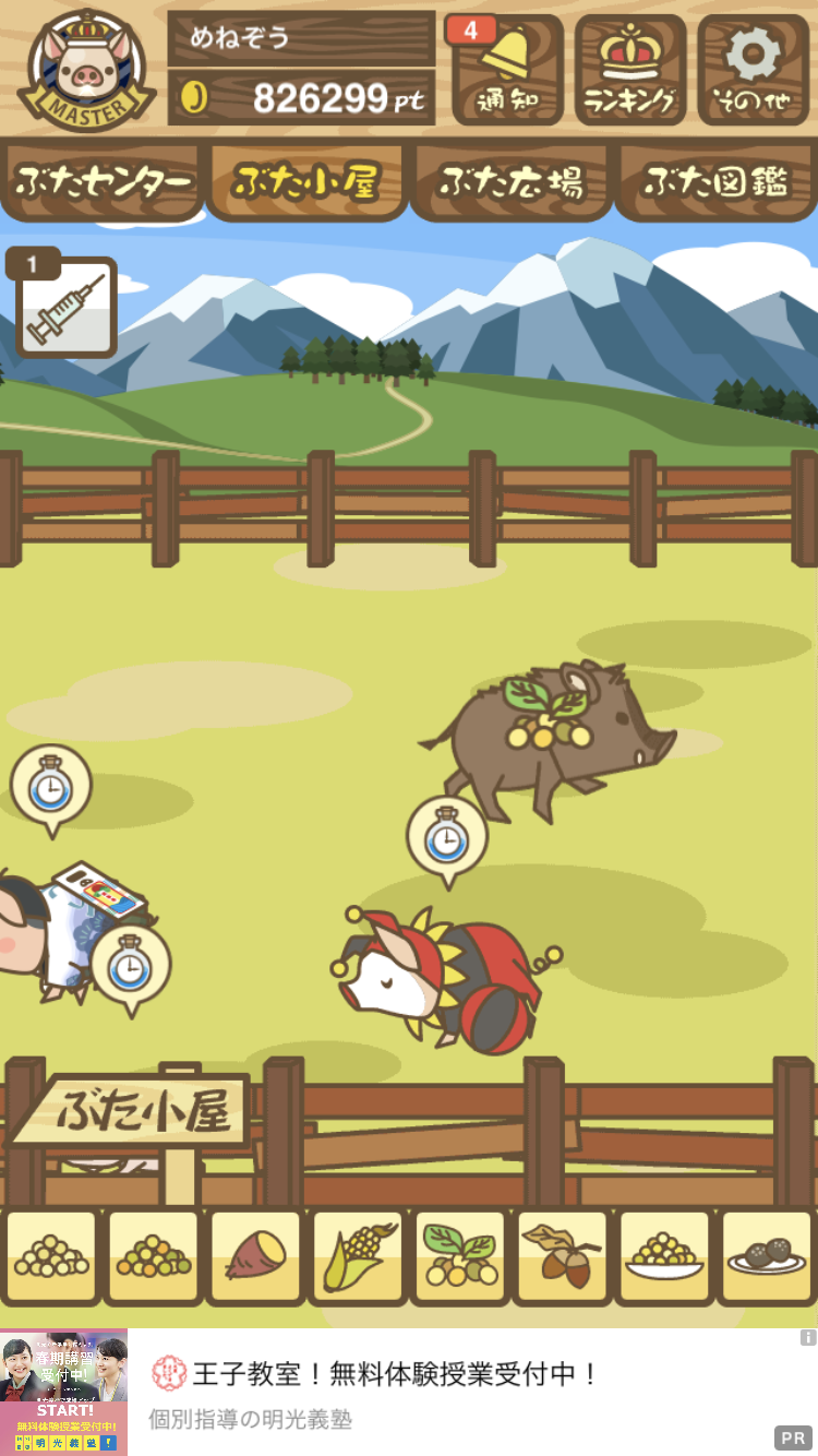 - また、エイブゥ....エサ雑穀16回、エサやりの度に放牧場行き来、16回エサやり後他の豚を放牧場へ....下の成功例の通り育成したつもりですが、何がダメだったんでしょう?掃除豚も排除しないといけないのでしょうか?