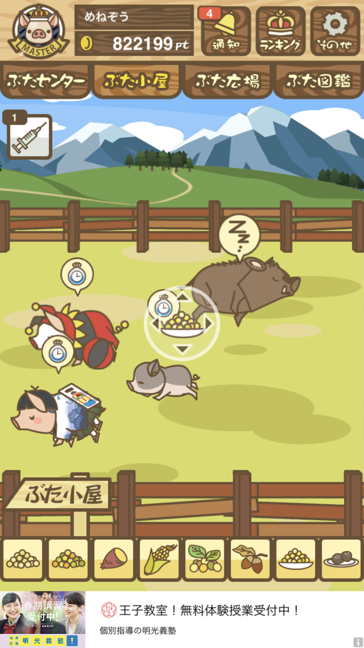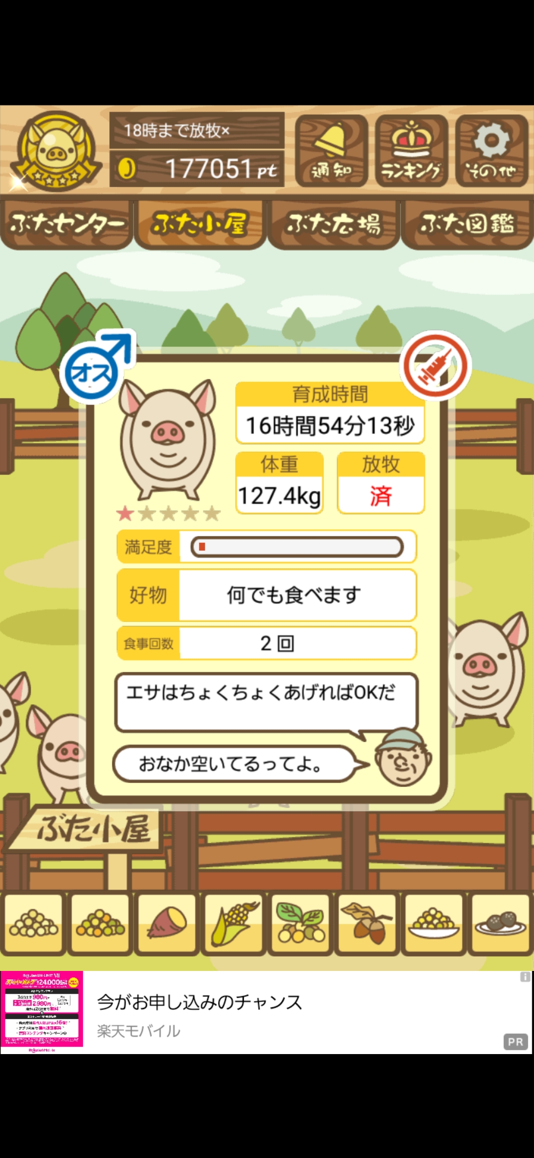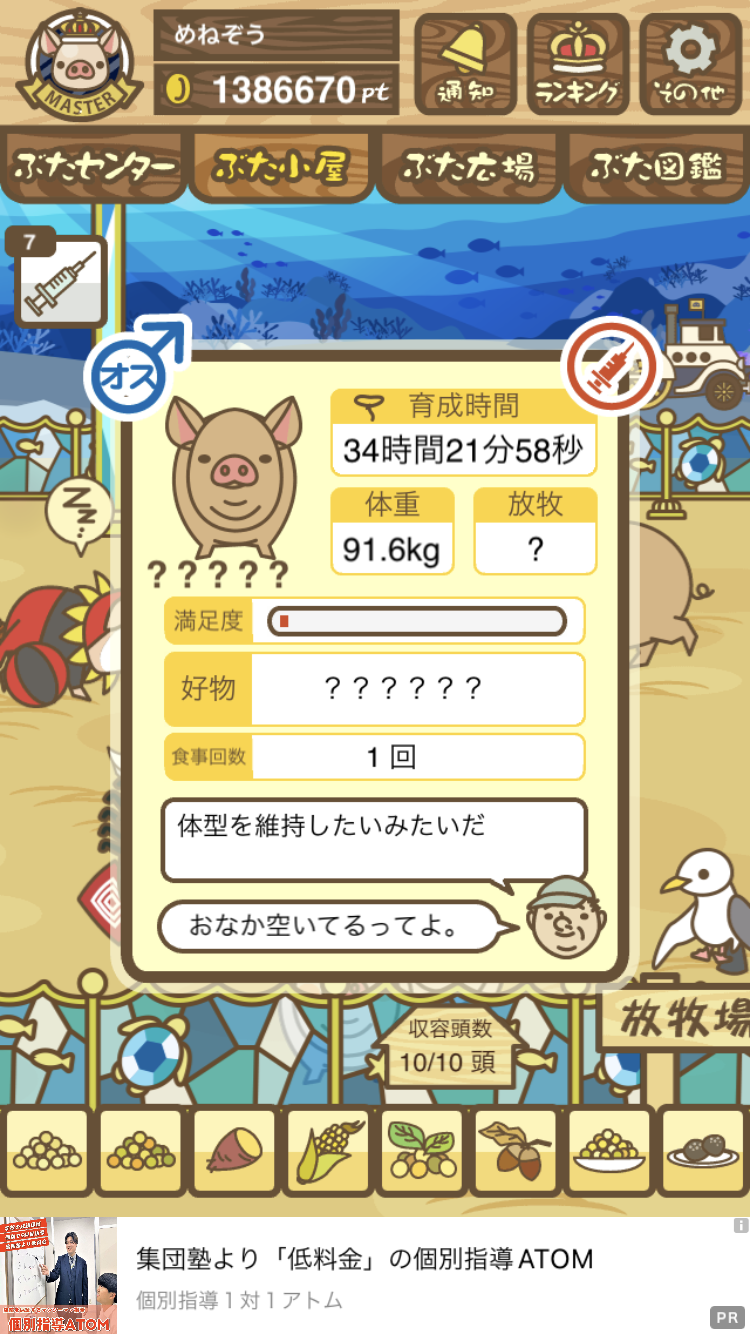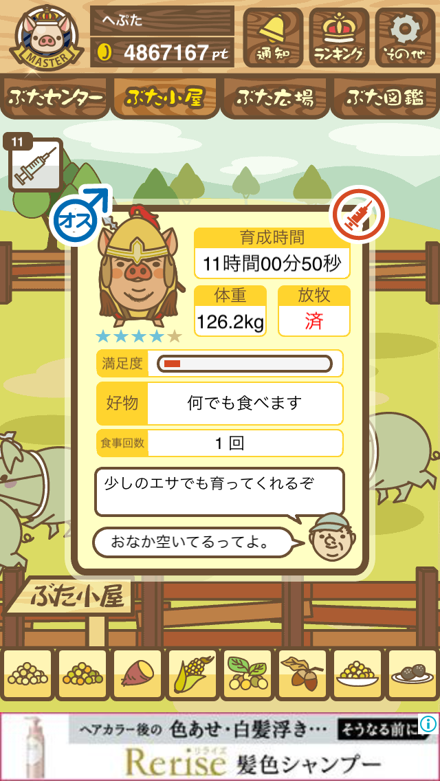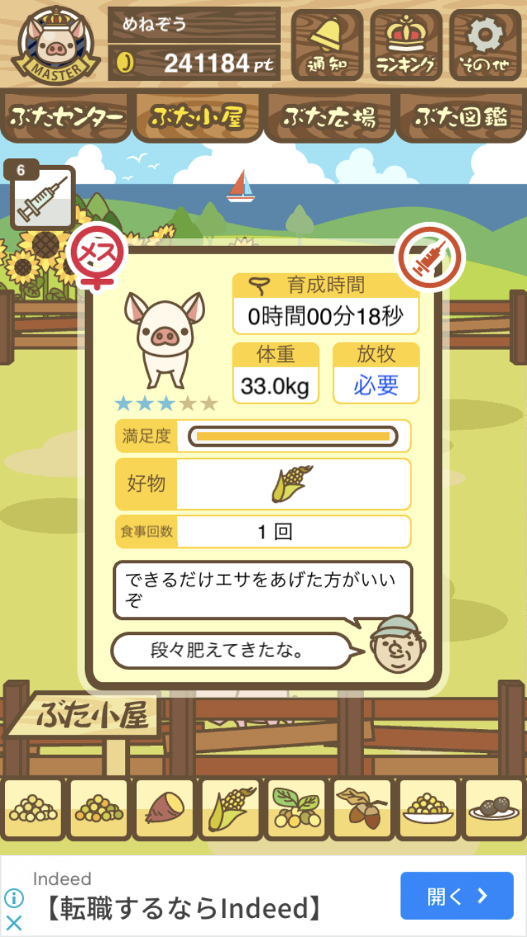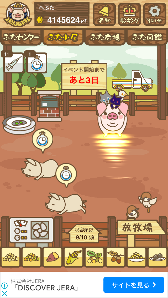 - また、エイブゥ....エサ雑穀16回、エサやりの度に放牧場行き来、16回エサやり後他の豚を放牧場へ....下の成功例の通り育成したつもりですが、何がダメだったんでしょう?掃除豚も排除しないといけないのでしょうか?