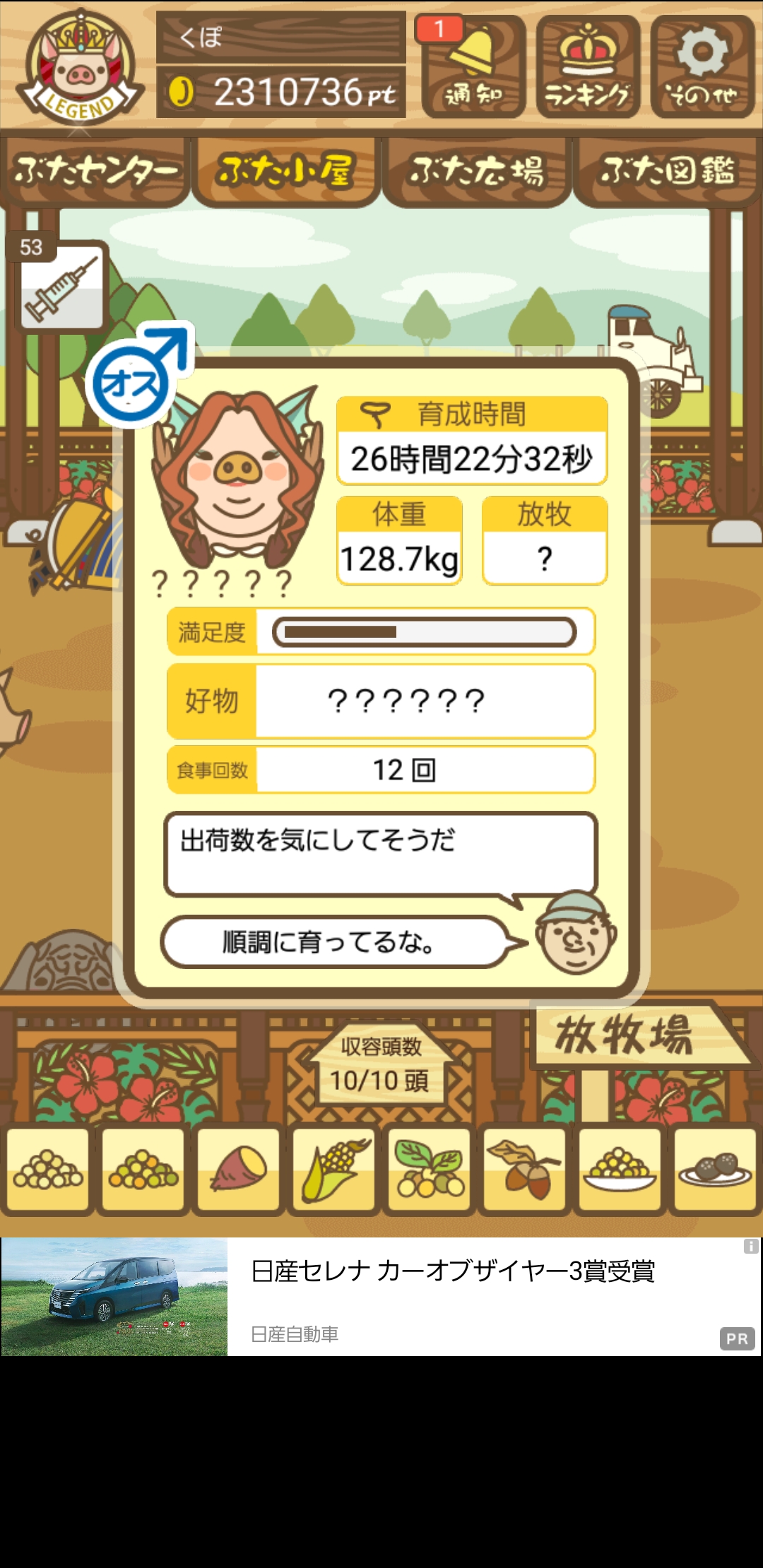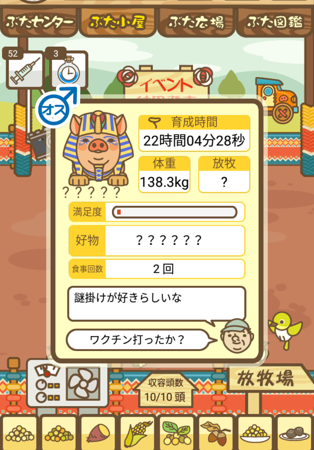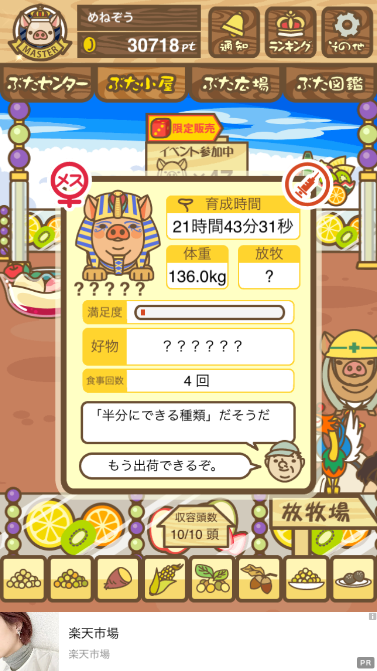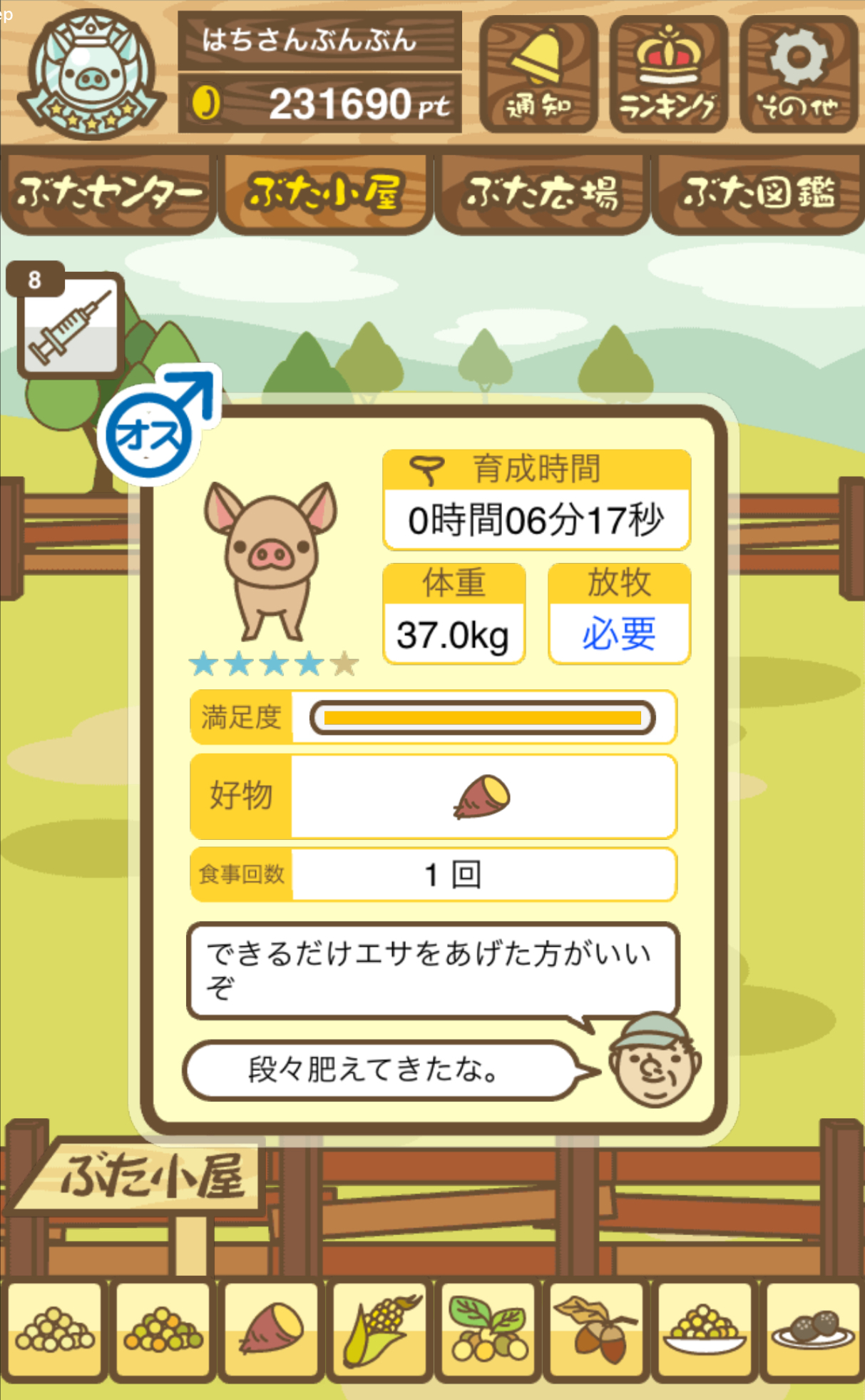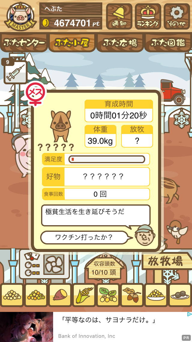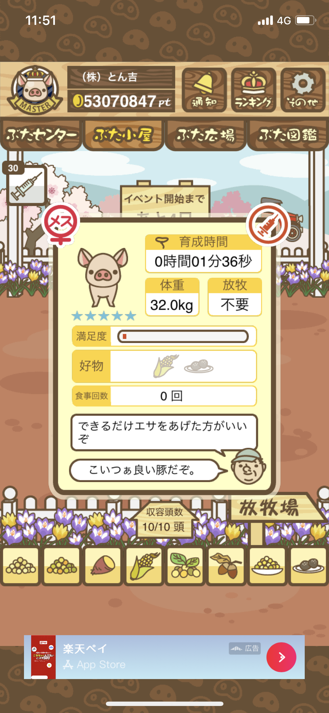 - また、エイブゥ....エサ雑穀16回、エサやりの度に放牧場行き来、16回エサやり後他の豚を放牧場へ....下の成功例の通り育成したつもりですが、何がダメだったんでしょう?掃除豚も排除しないといけないのでしょうか?