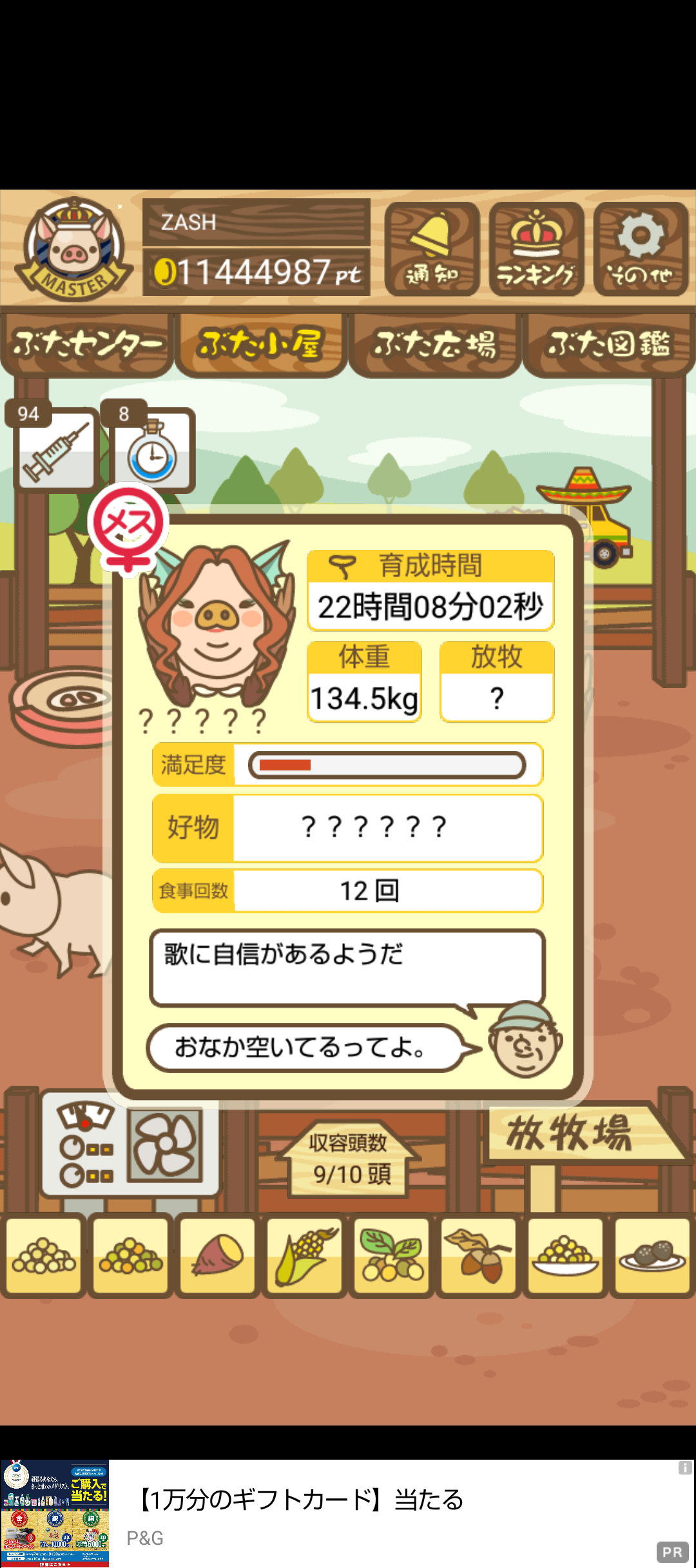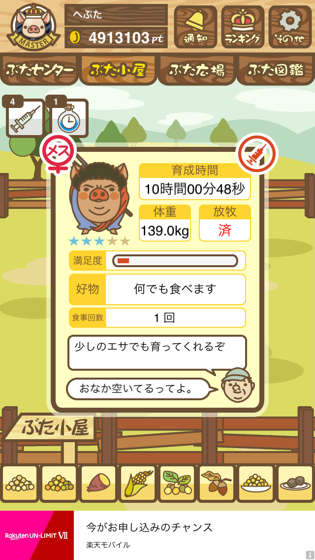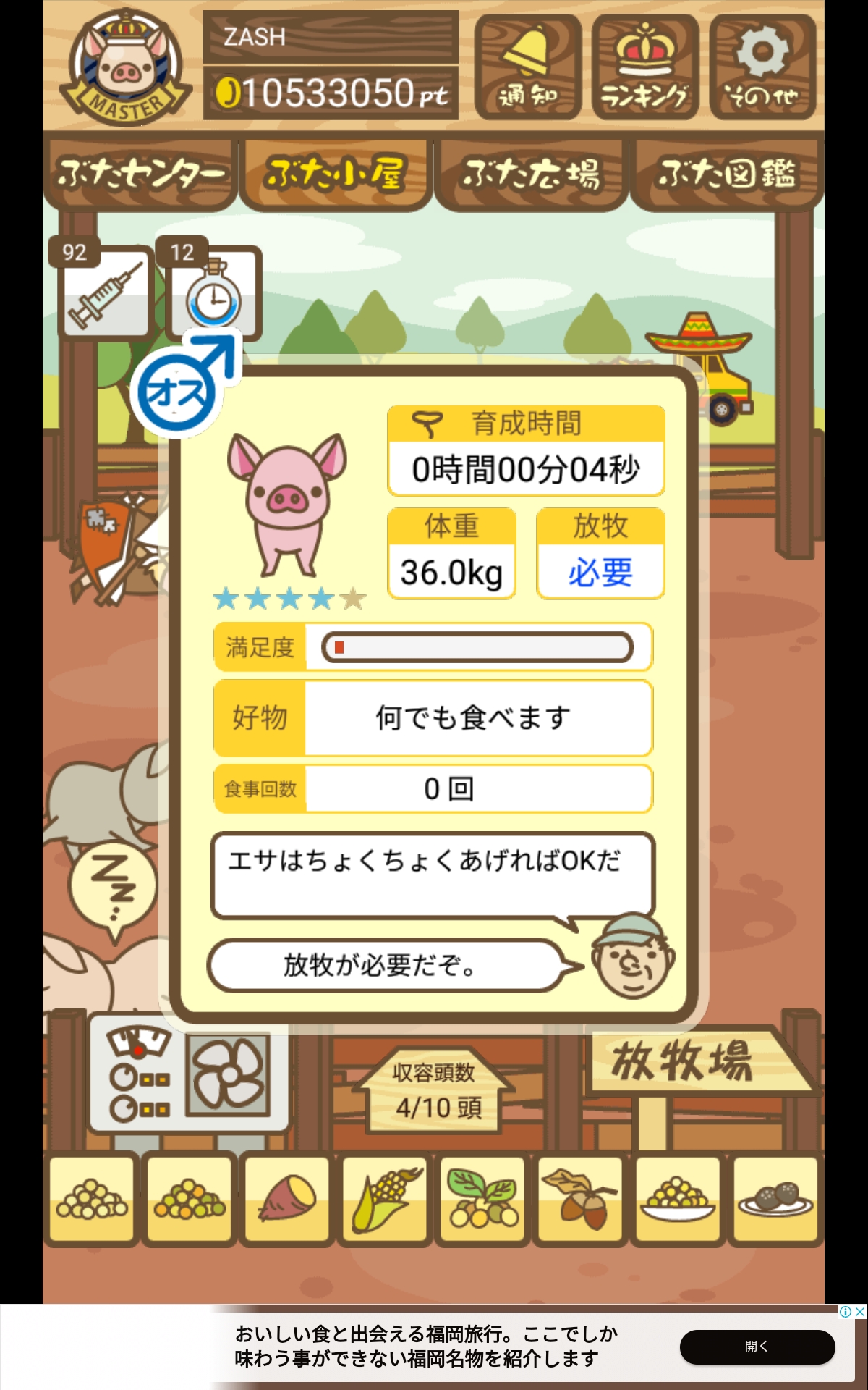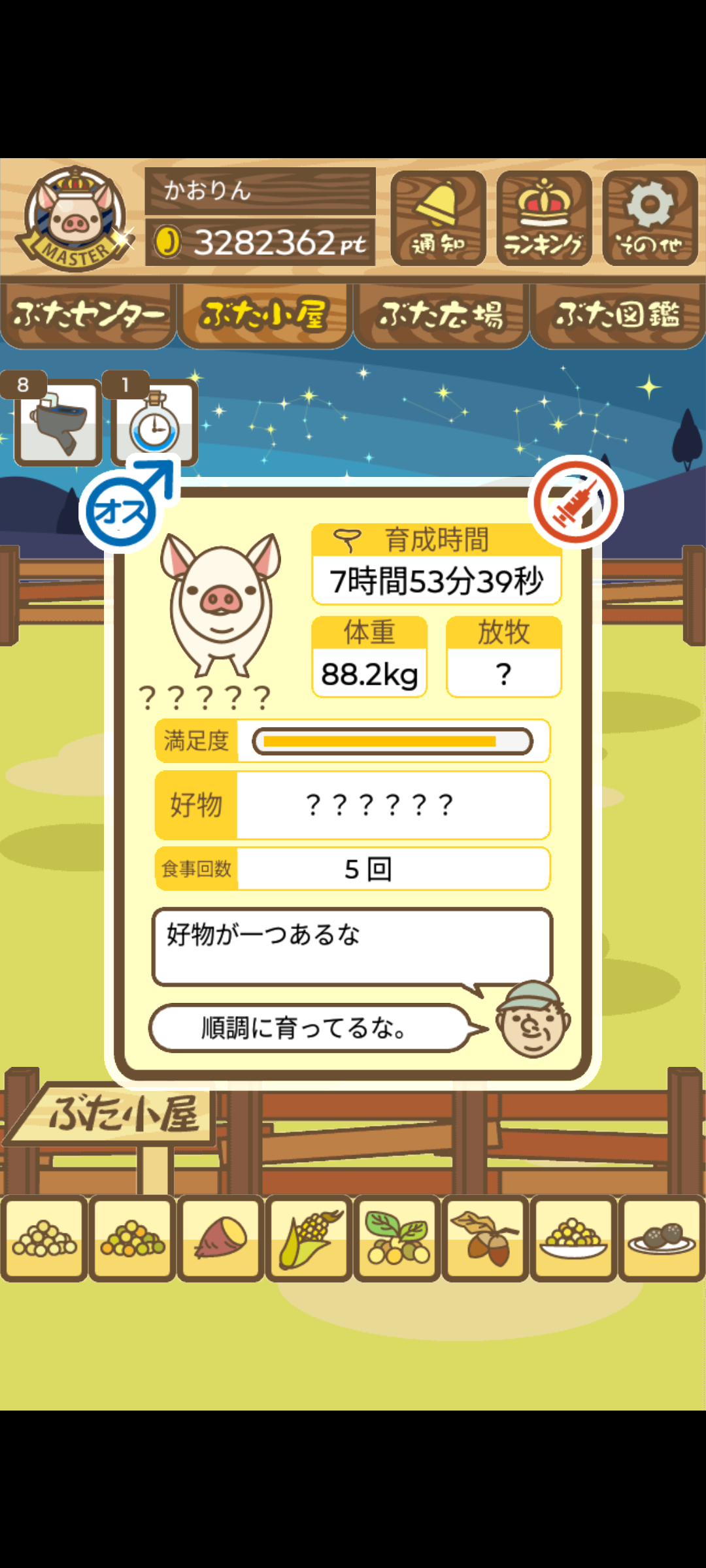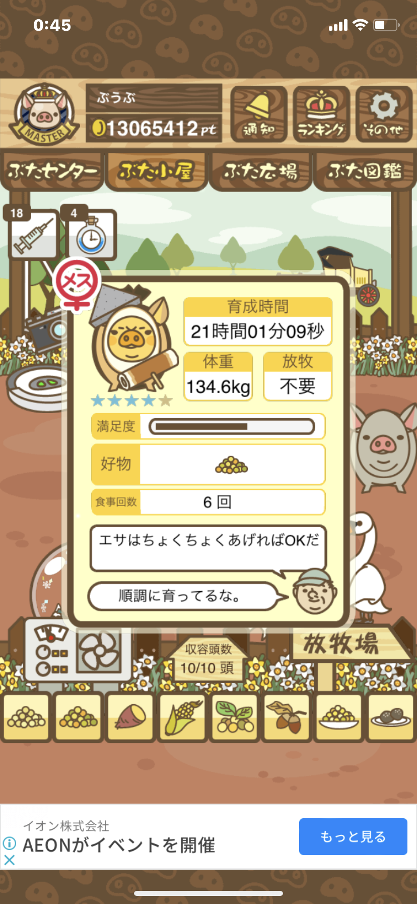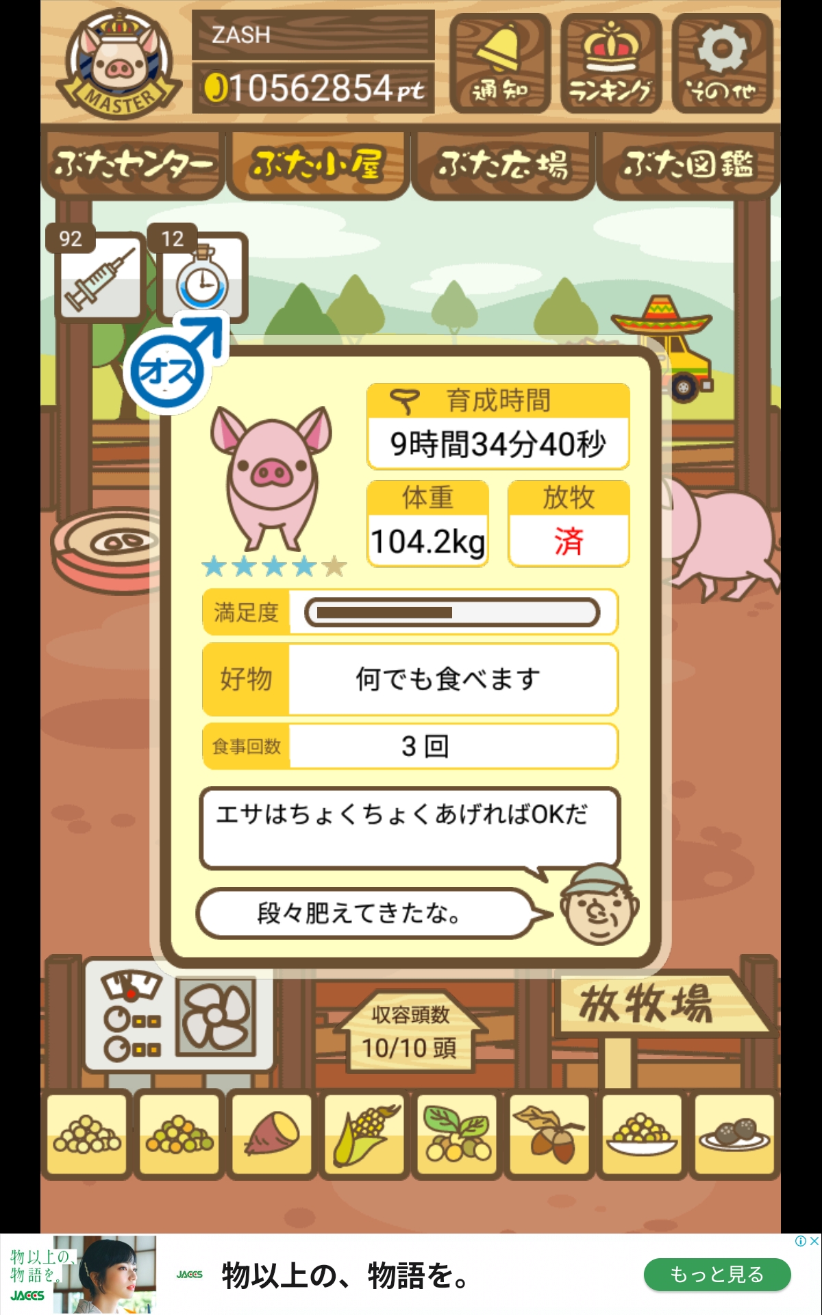 - また、エイブゥ....エサ雑穀16回、エサやりの度に放牧場行き来、16回エサやり後他の豚を放牧場へ....下の成功例の通り育成したつもりですが、何がダメだったんでしょう?掃除豚も排除しないといけないのでしょうか?