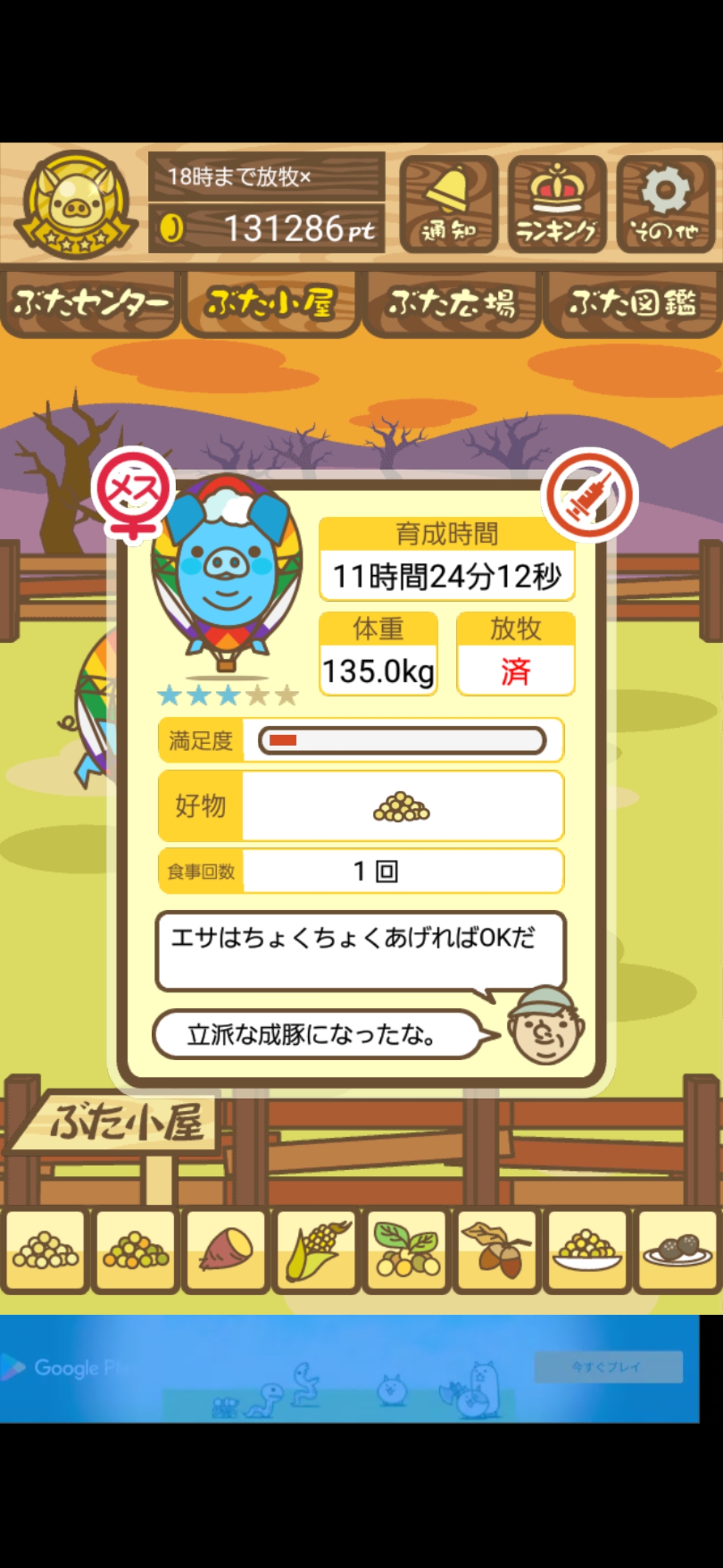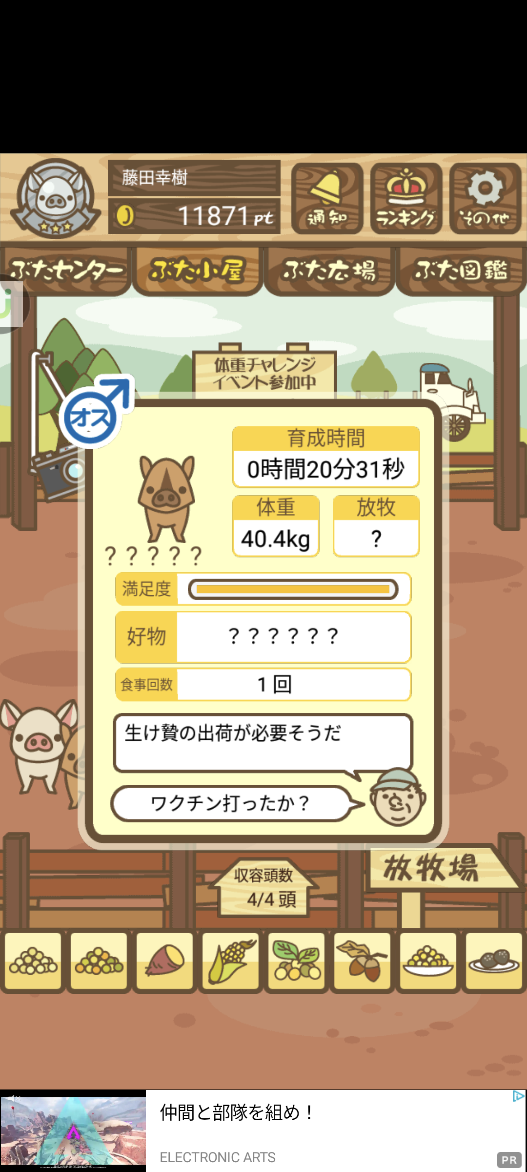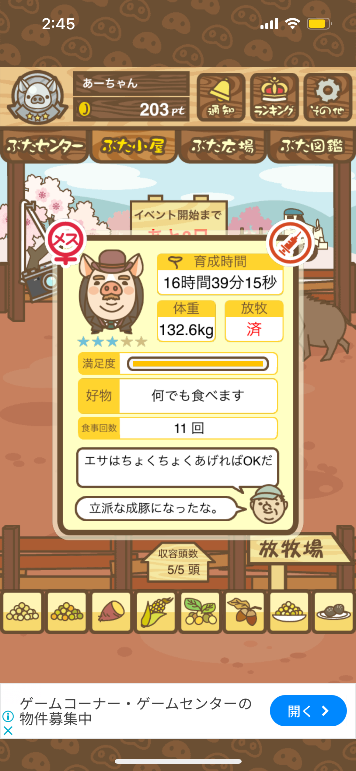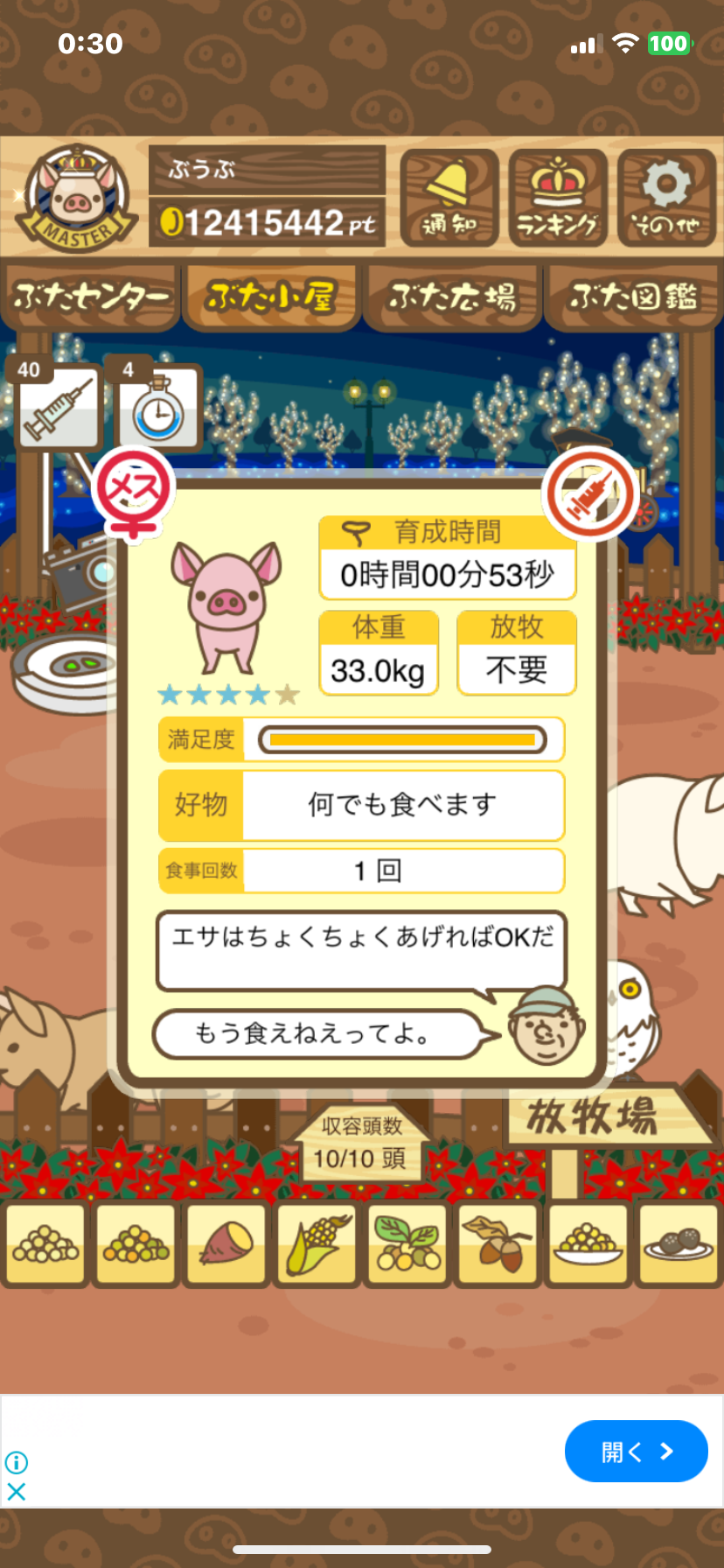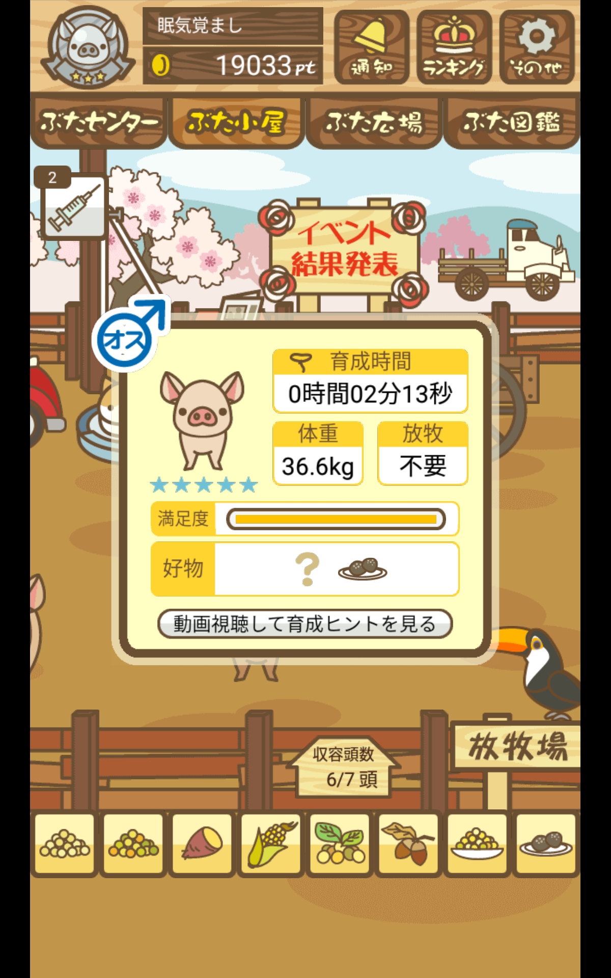 - また、エイブゥ....エサ雑穀16回、エサやりの度に放牧場行き来、16回エサやり後他の豚を放牧場へ....下の成功例の通り育成したつもりですが、何がダメだったんでしょう?掃除豚も排除しないといけないのでしょうか?