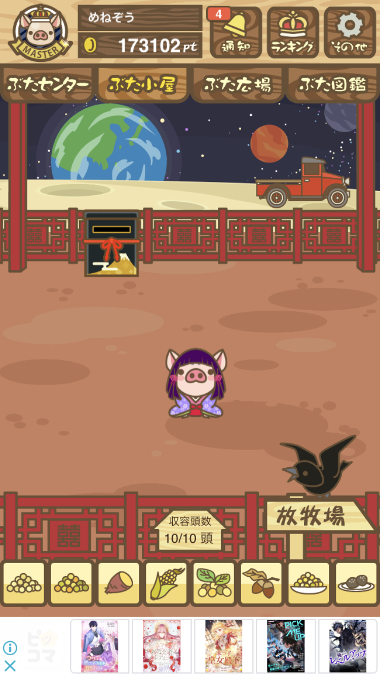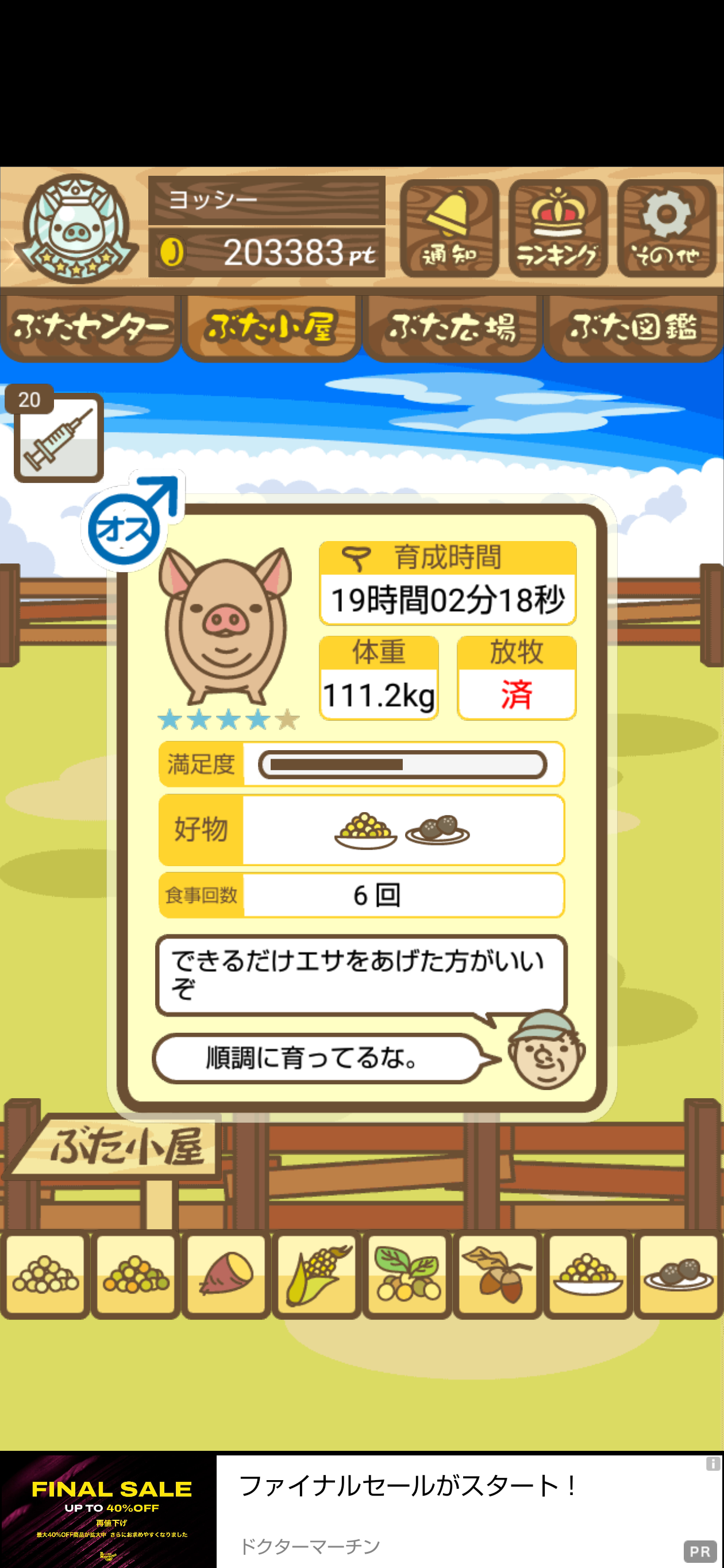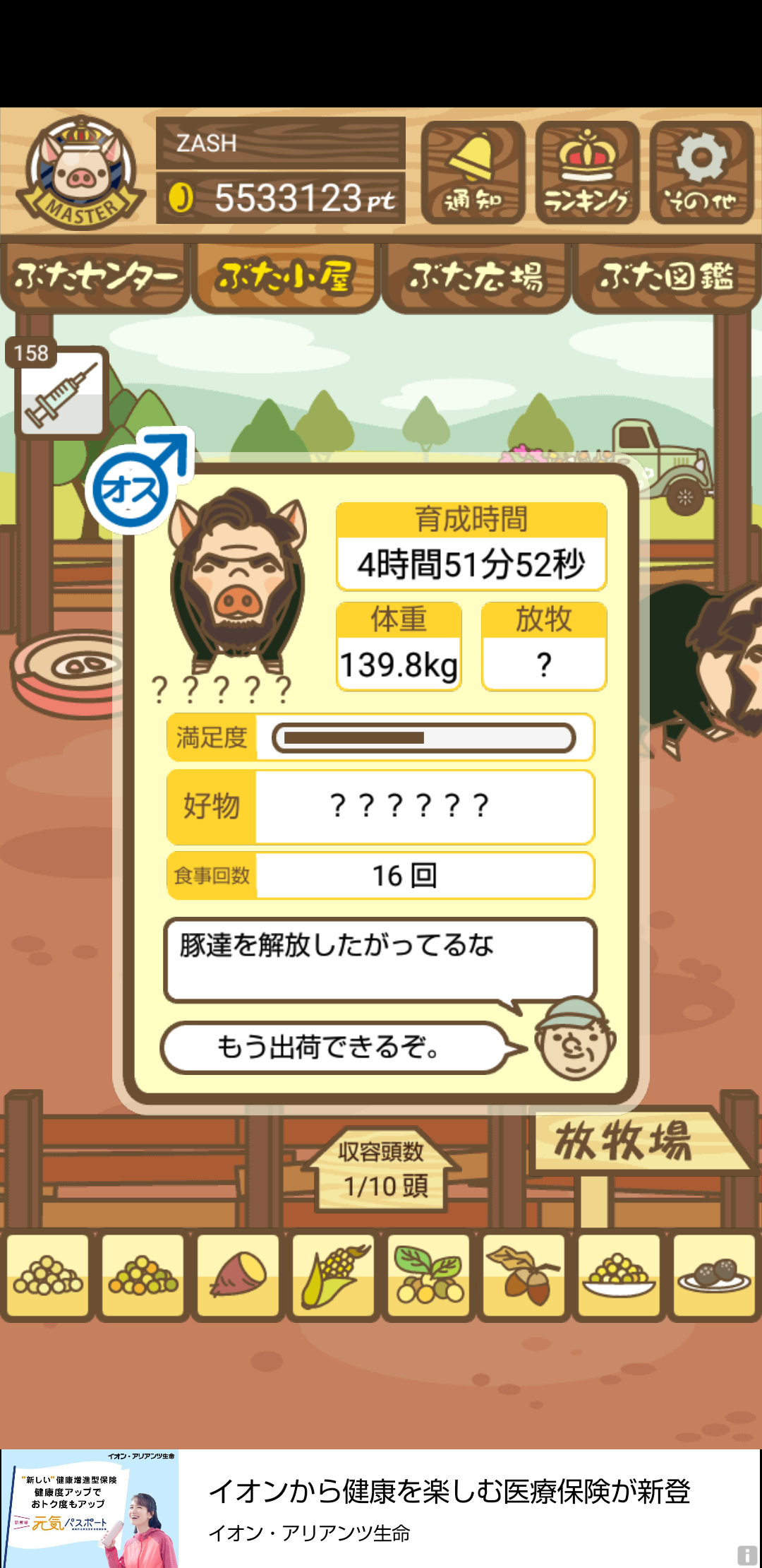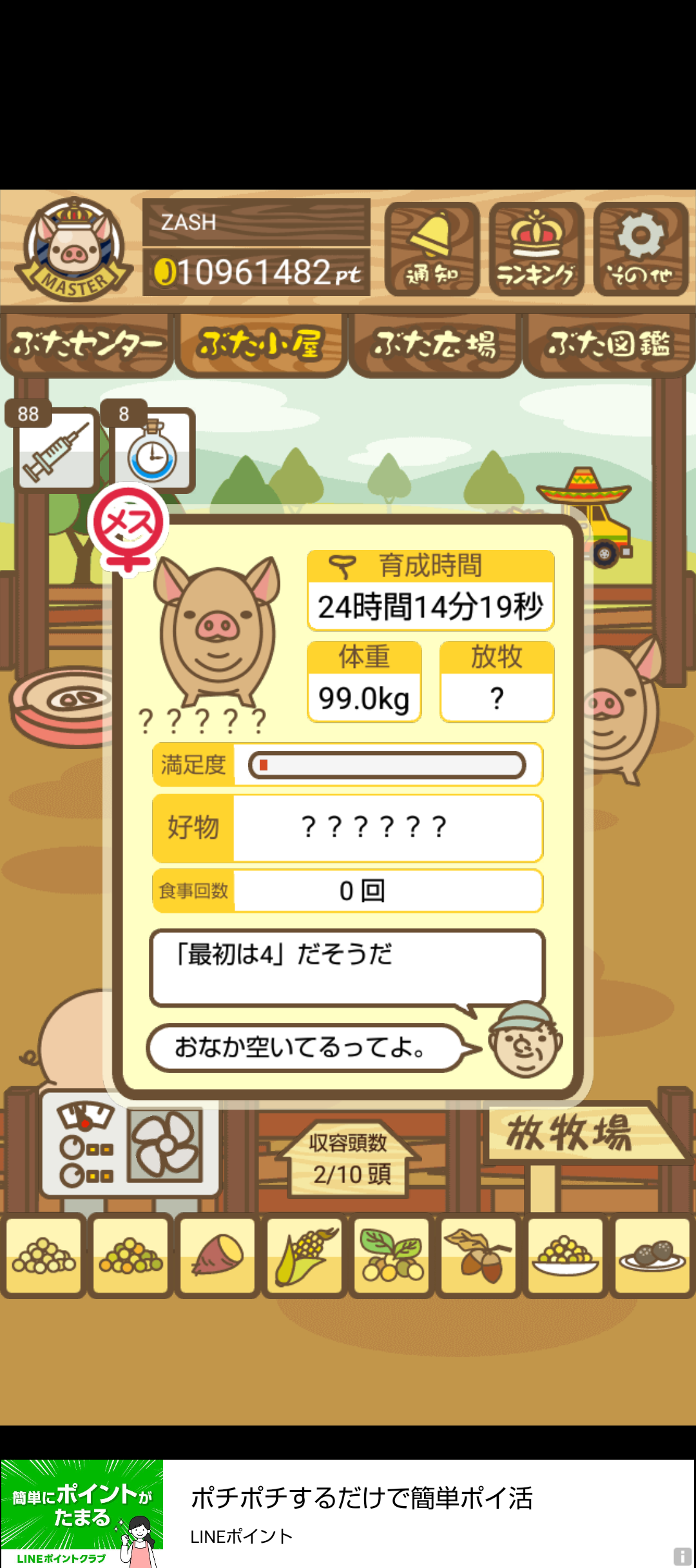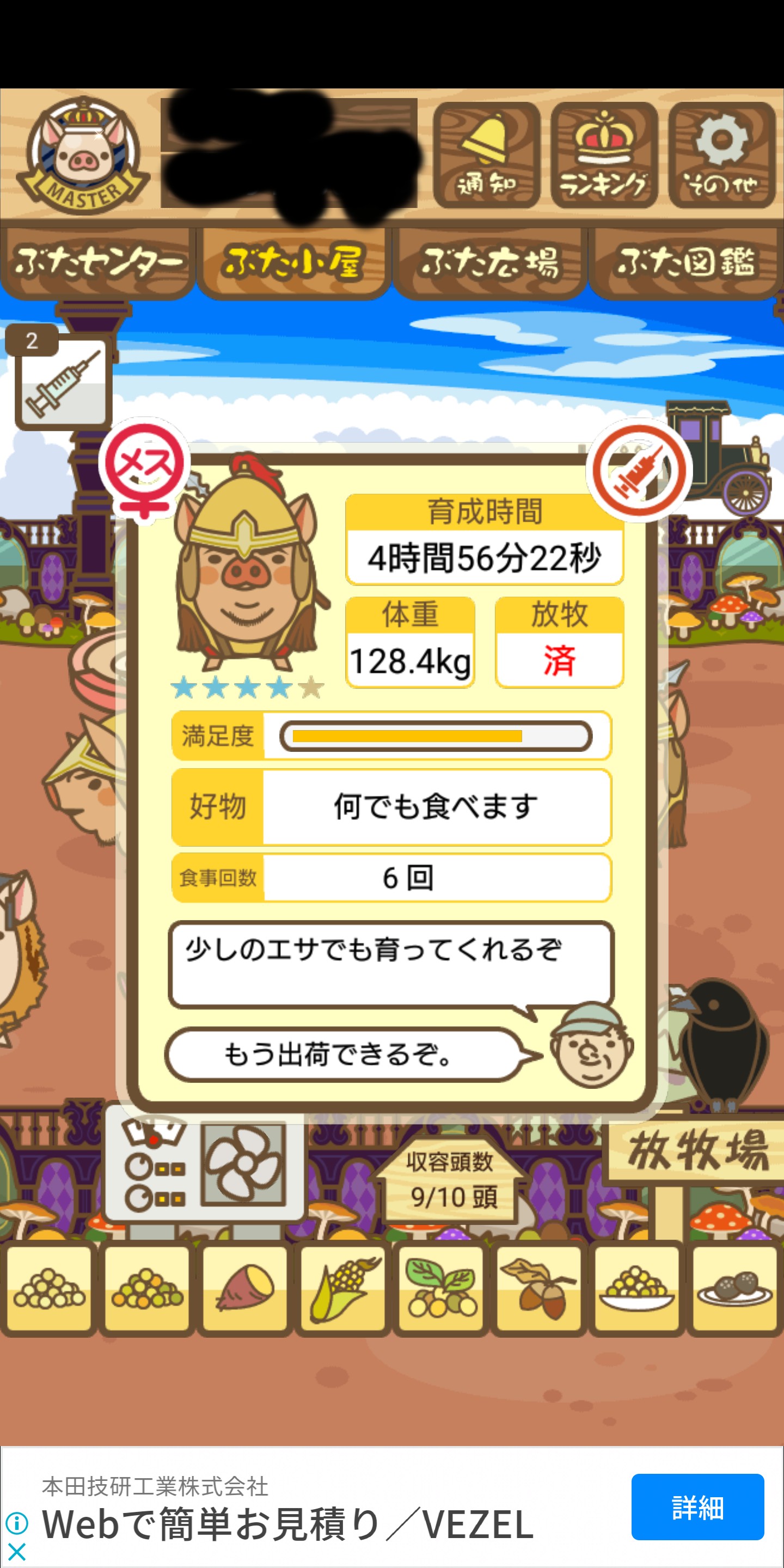 - また、エイブゥ....エサ雑穀16回、エサやりの度に放牧場行き来、16回エサやり後他の豚を放牧場へ....下の成功例の通り育成したつもりですが、何がダメだったんでしょう?掃除豚も排除しないといけないのでしょうか?