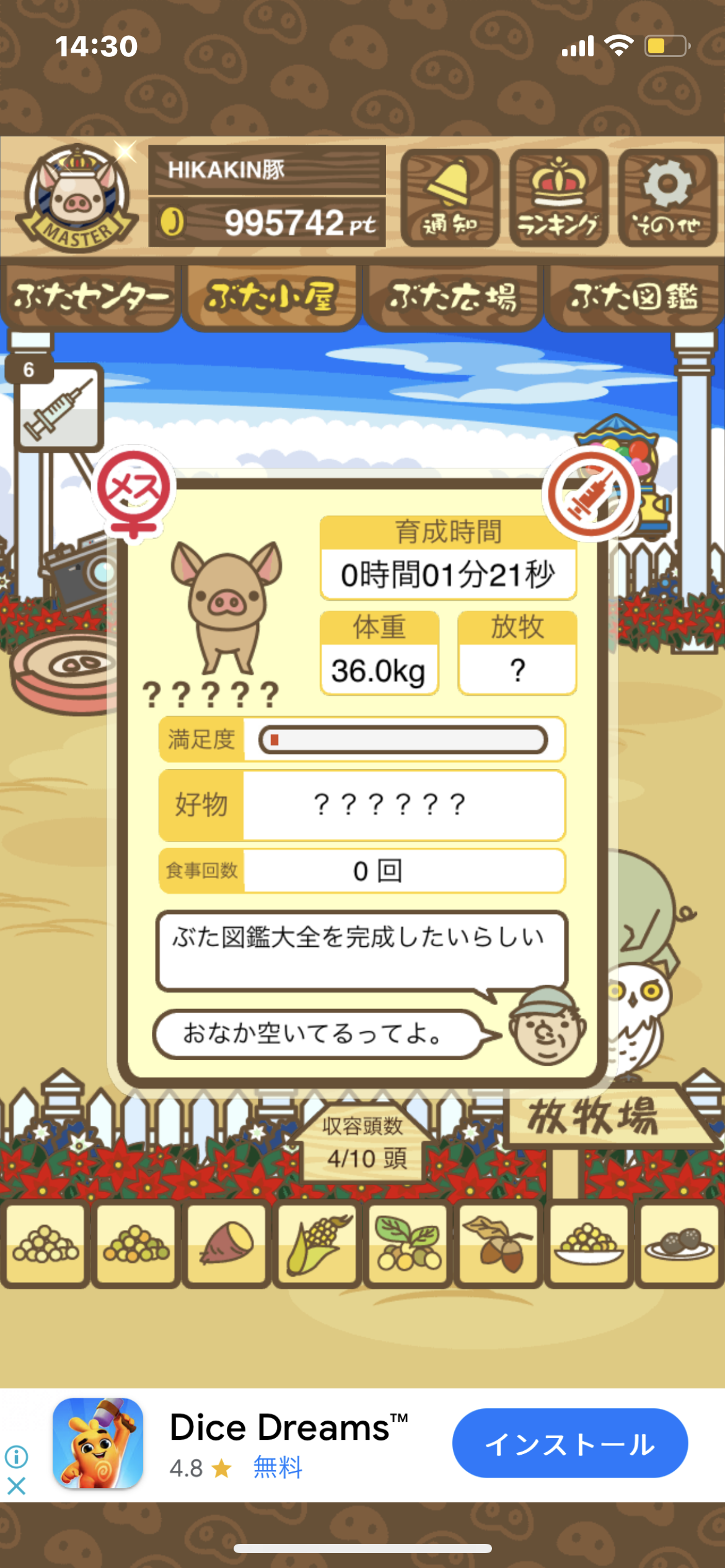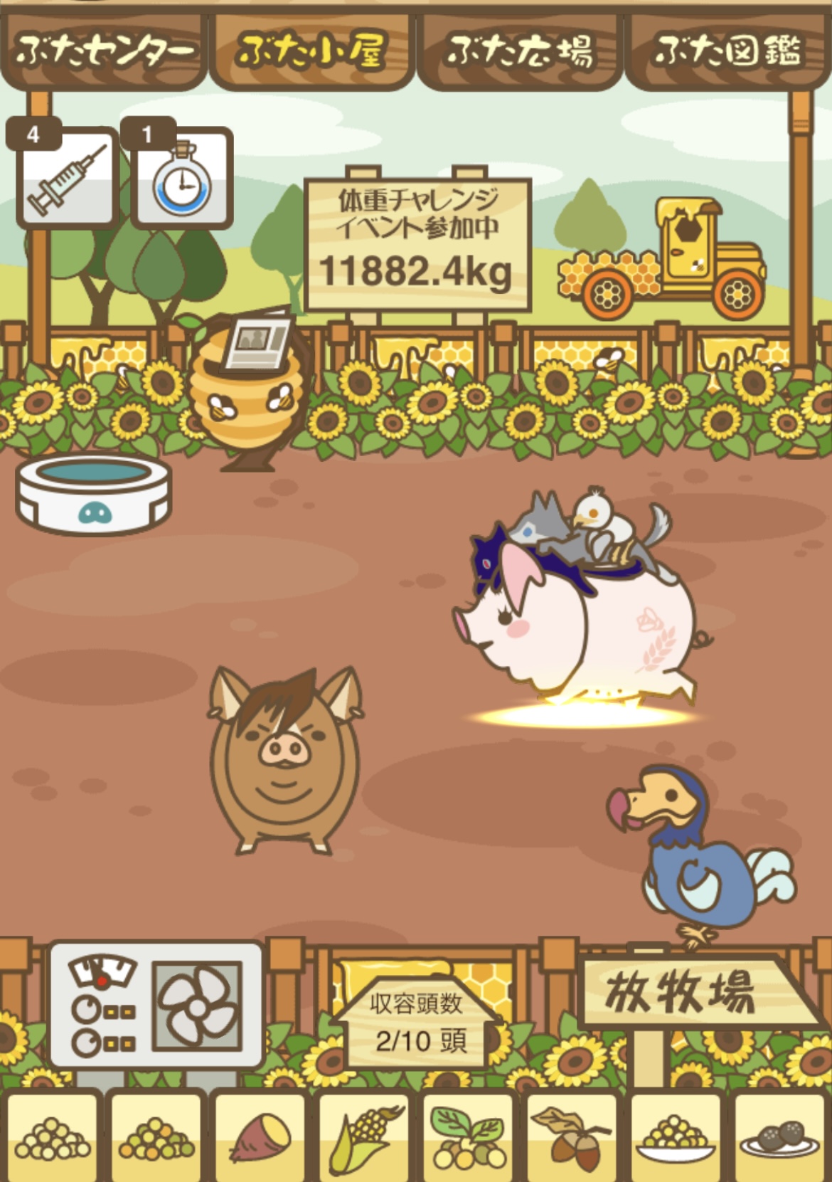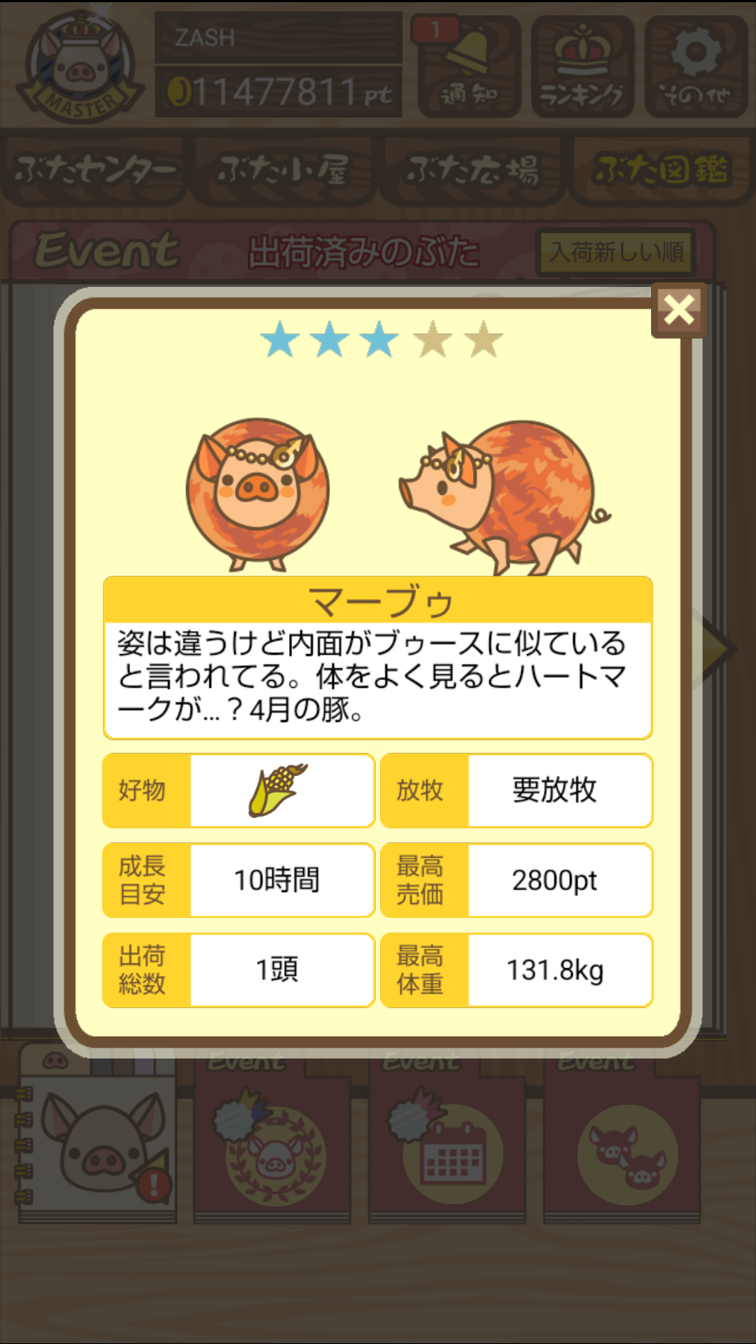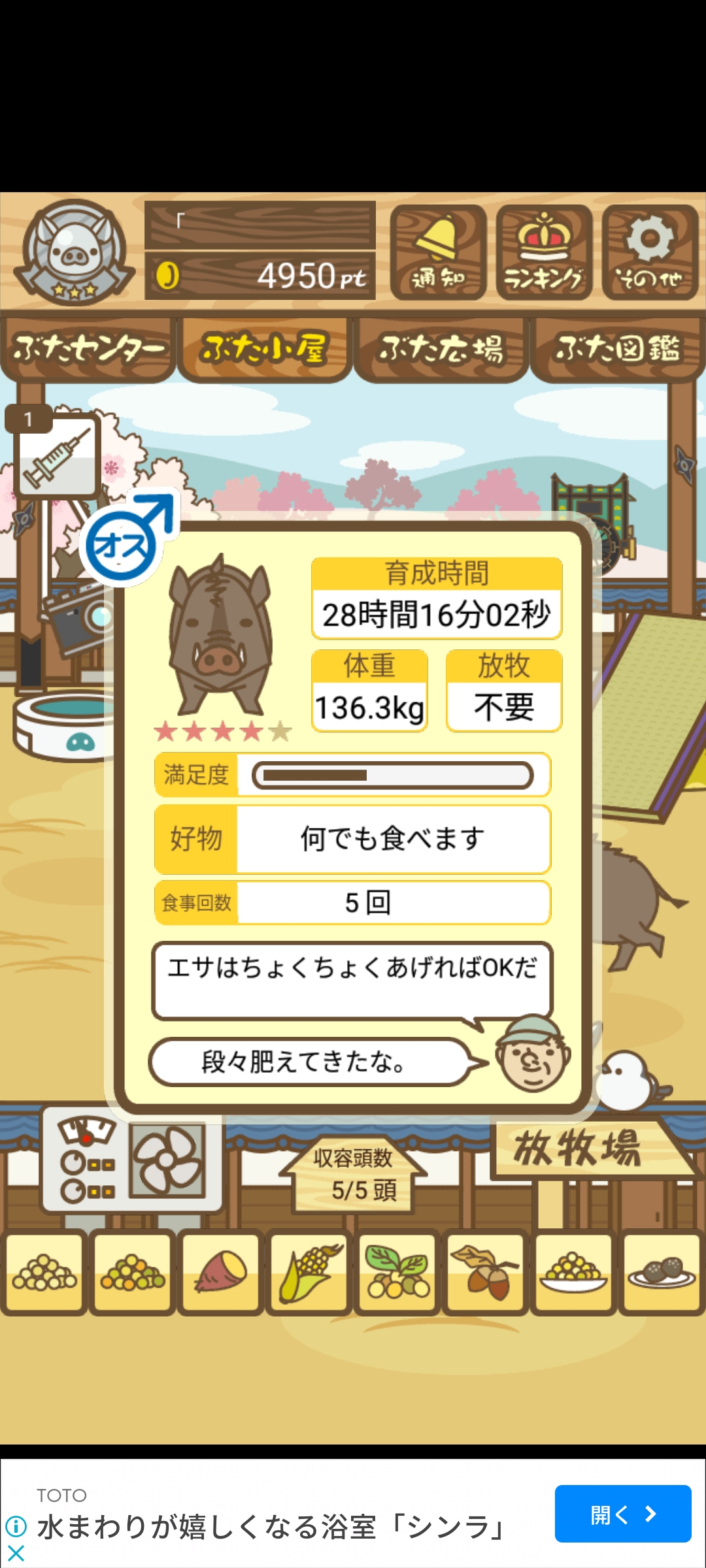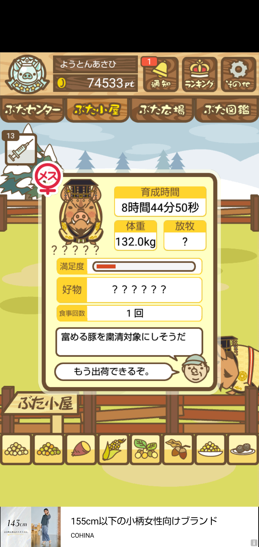 - また、エイブゥ....エサ雑穀16回、エサやりの度に放牧場行き来、16回エサやり後他の豚を放牧場へ....下の成功例の通り育成したつもりですが、何がダメだったんでしょう?掃除豚も排除しないといけないのでしょうか?