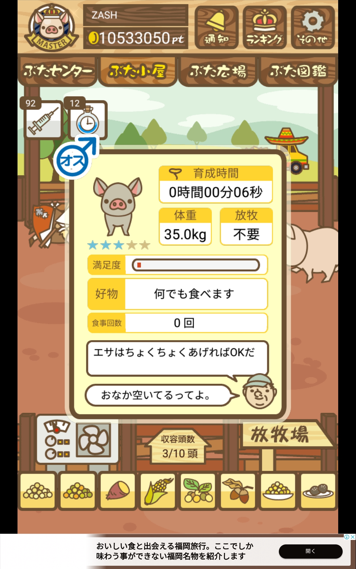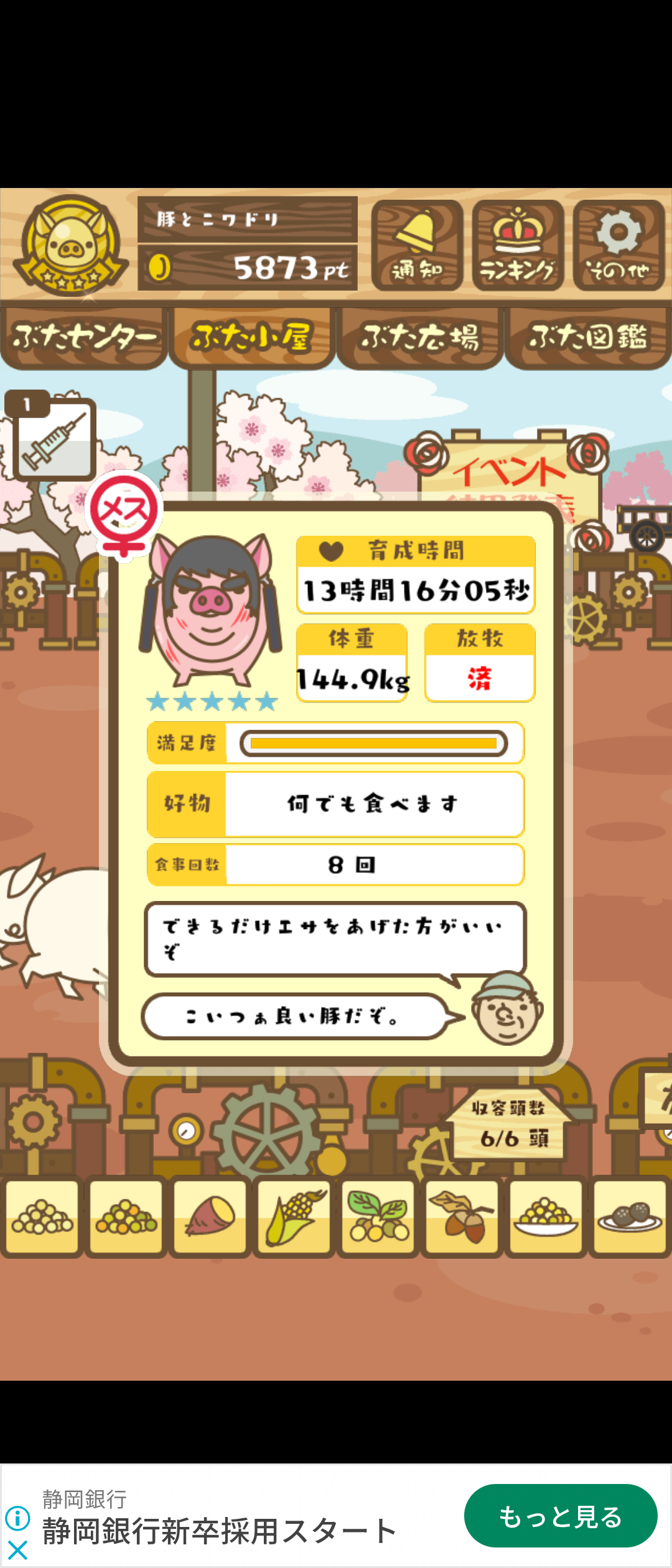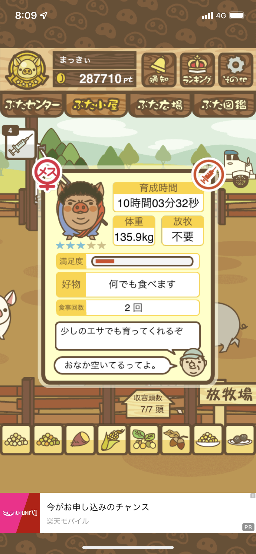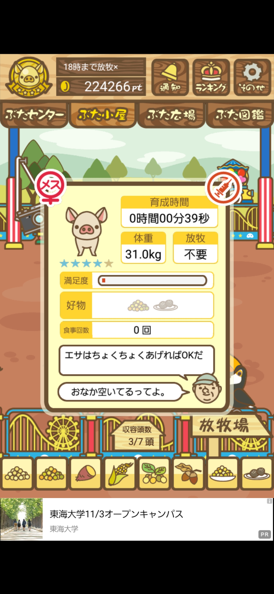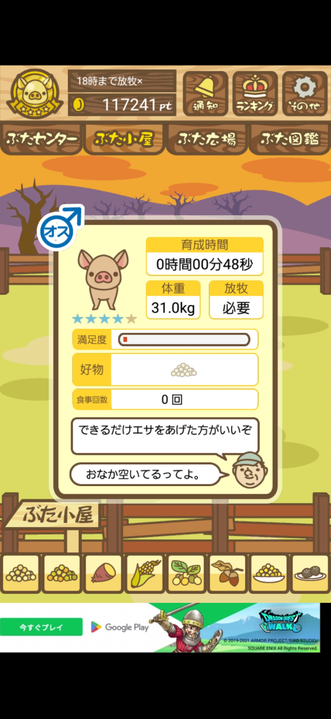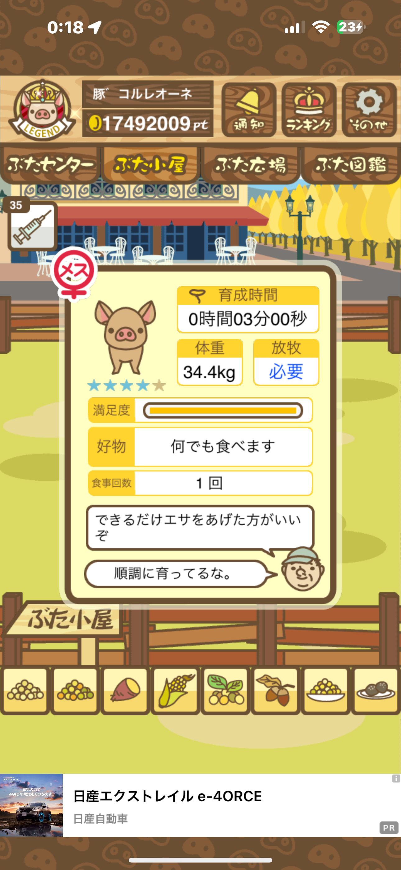 - また、エイブゥ....エサ雑穀16回、エサやりの度に放牧場行き来、16回エサやり後他の豚を放牧場へ....下の成功例の通り育成したつもりですが、何がダメだったんでしょう?掃除豚も排除しないといけないのでしょうか?